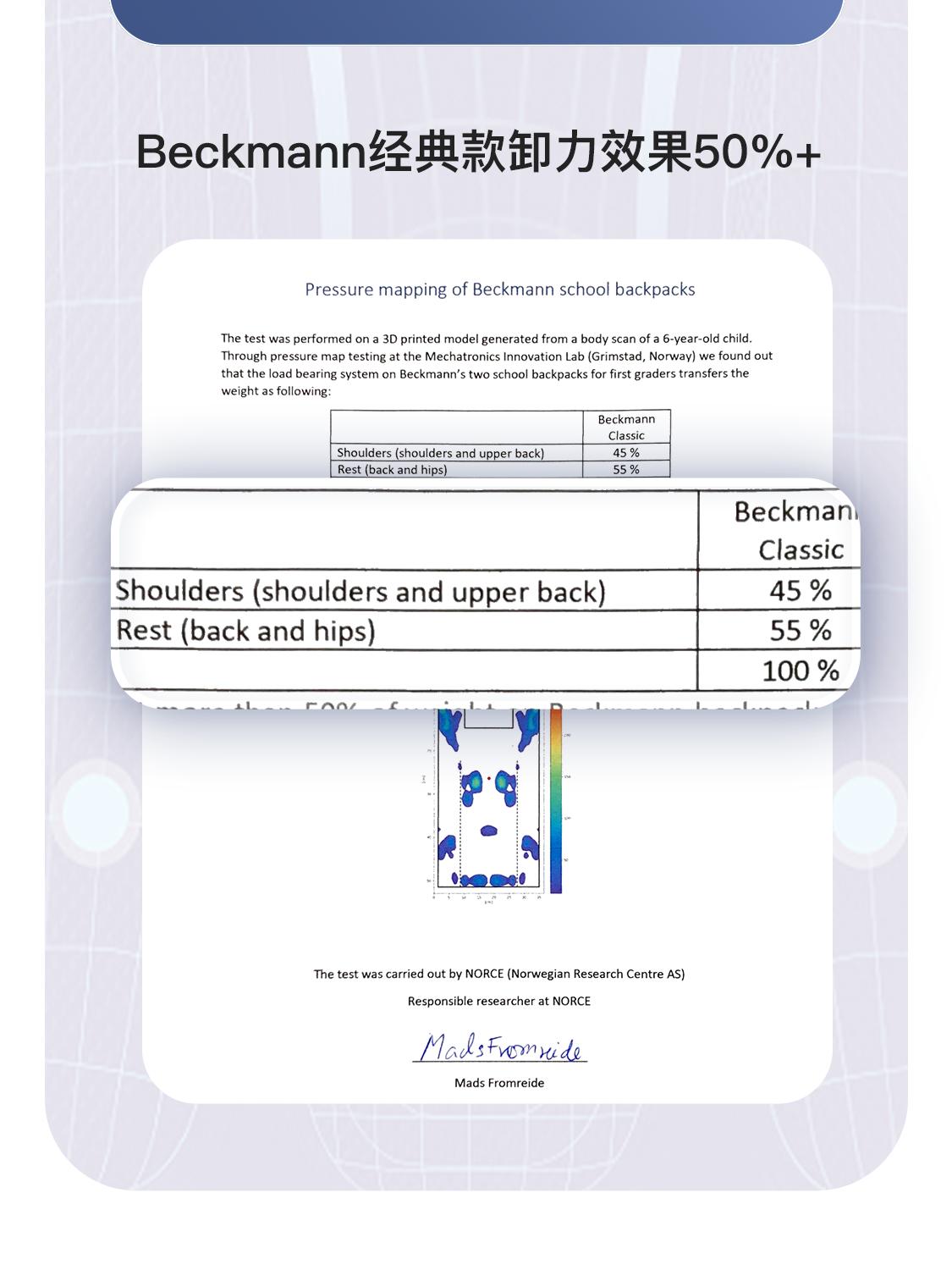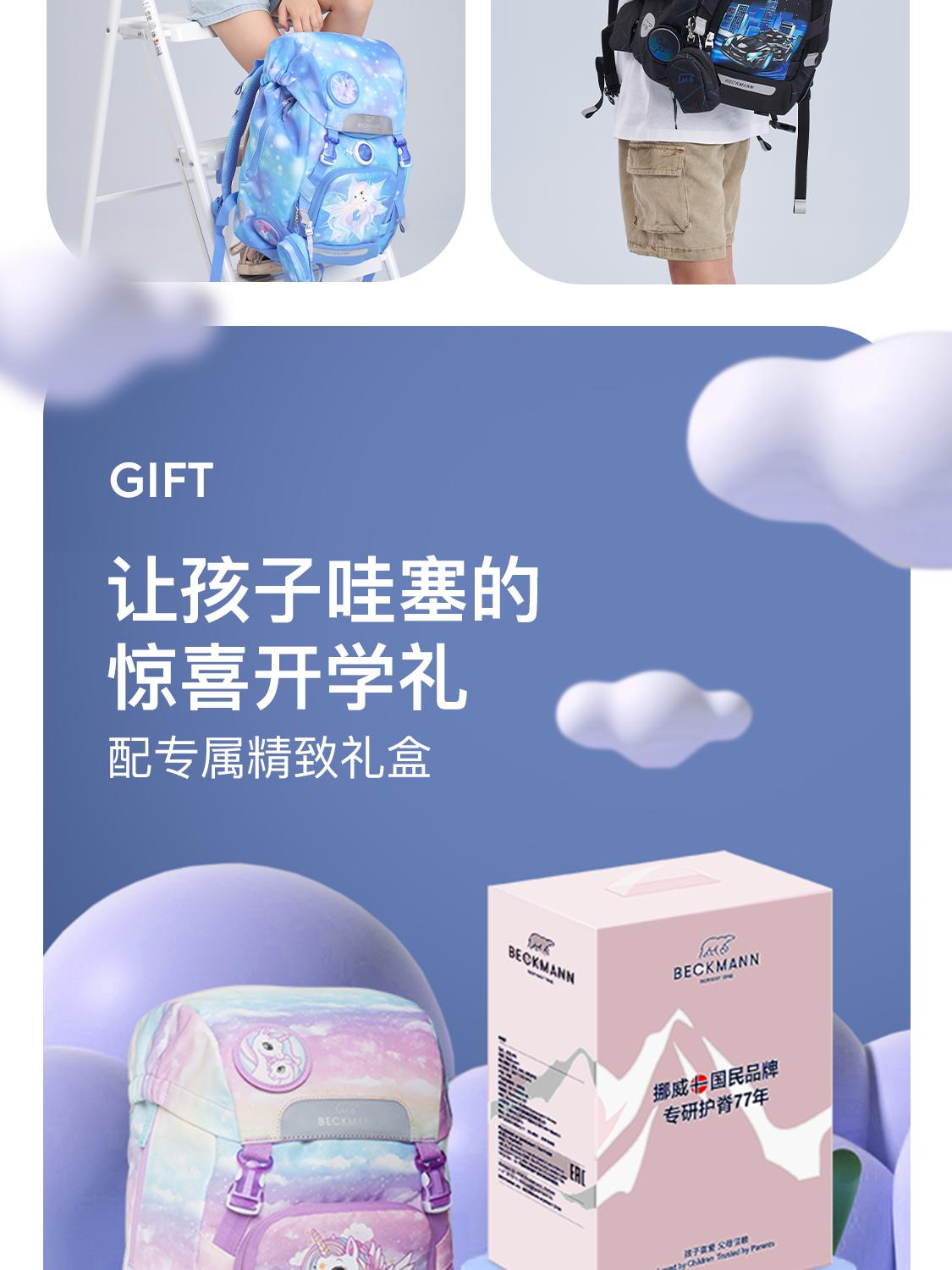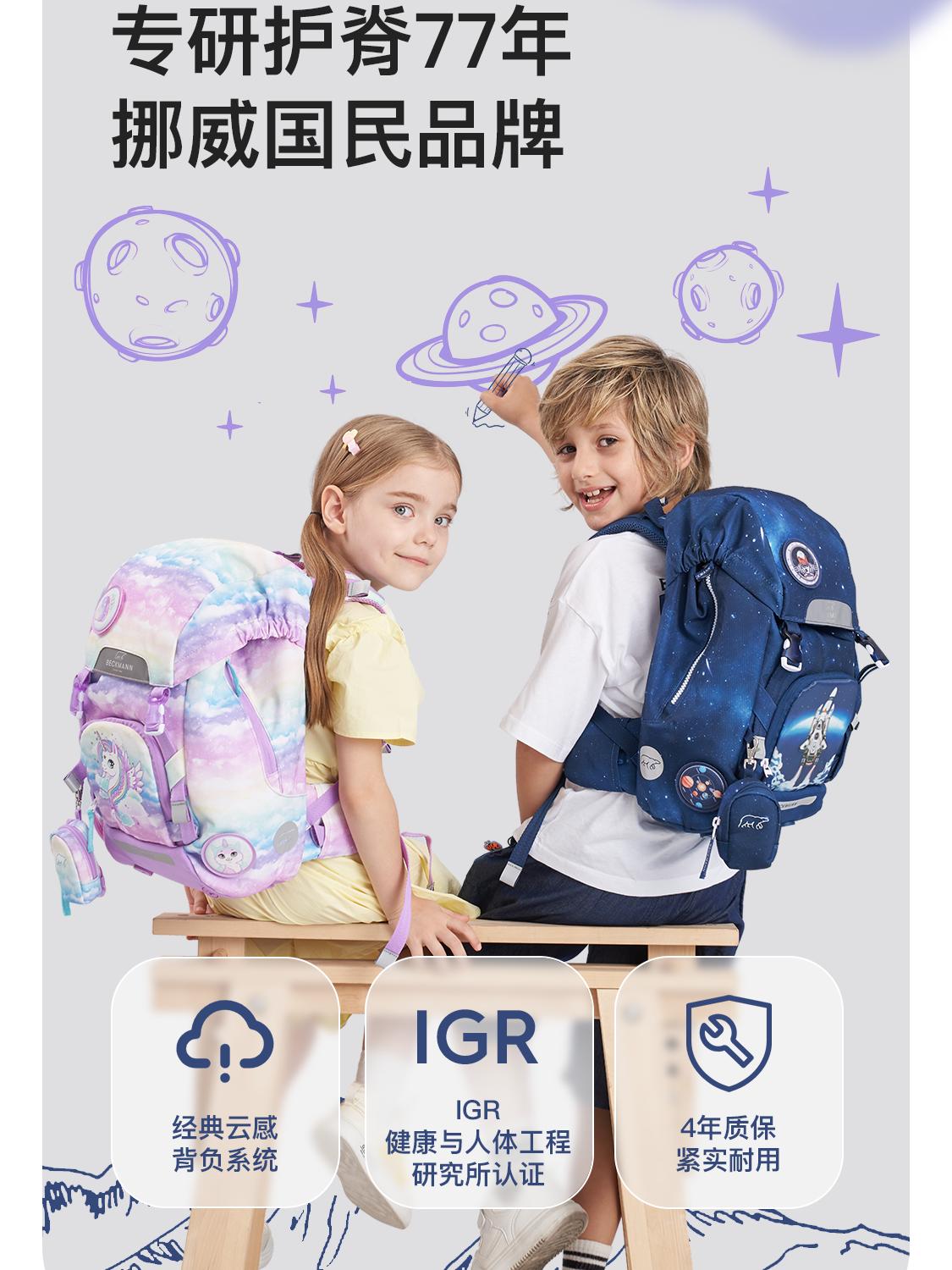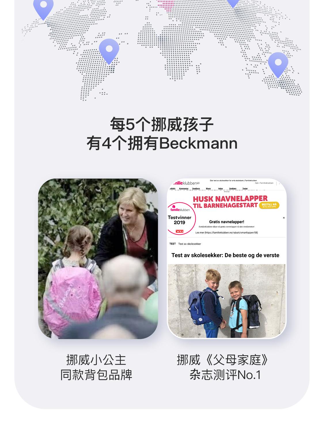 经典款22L挪威Beckmann贝克曼女男孩1-3-6年级学生减压儿童护脊双肩书包