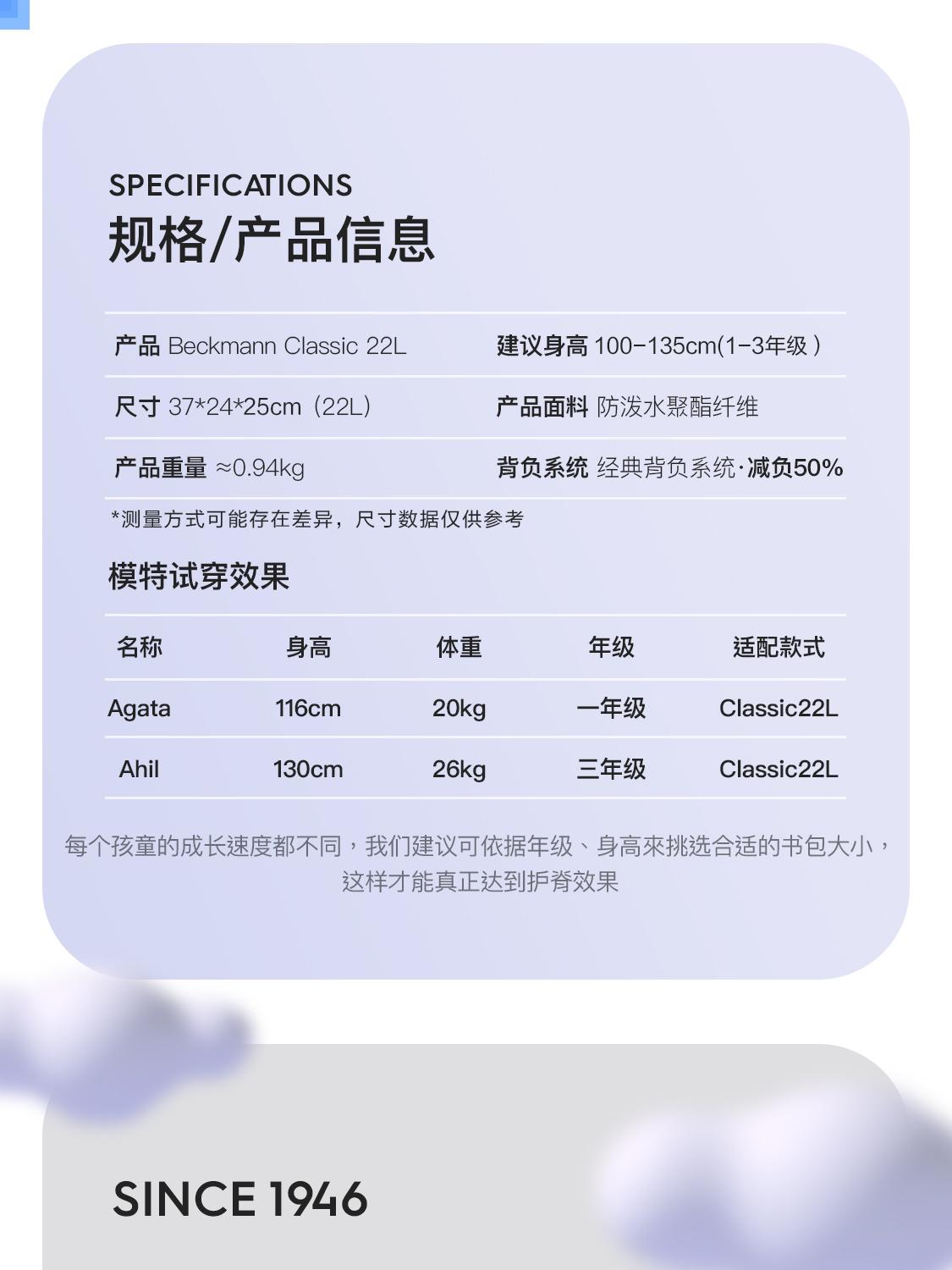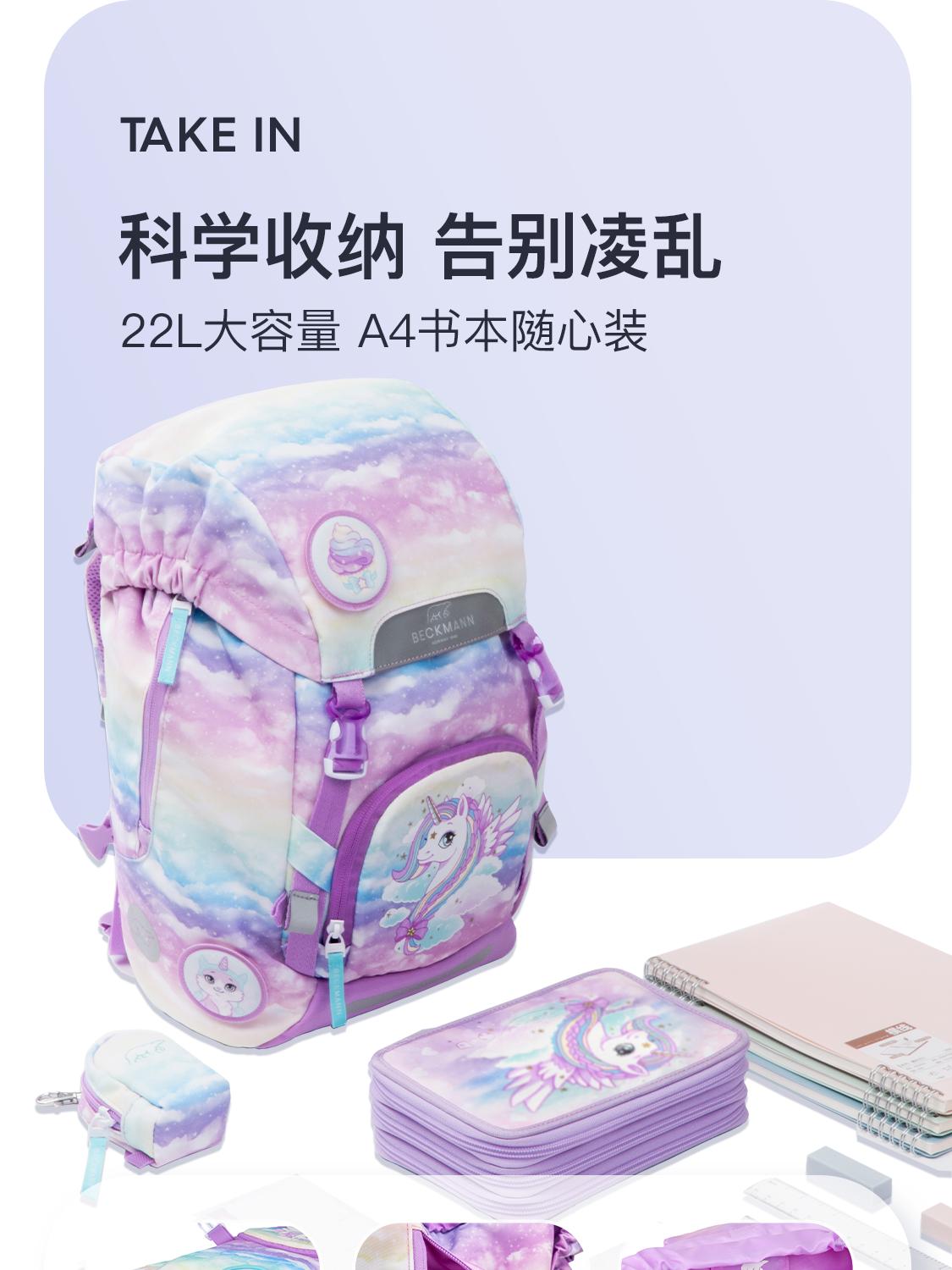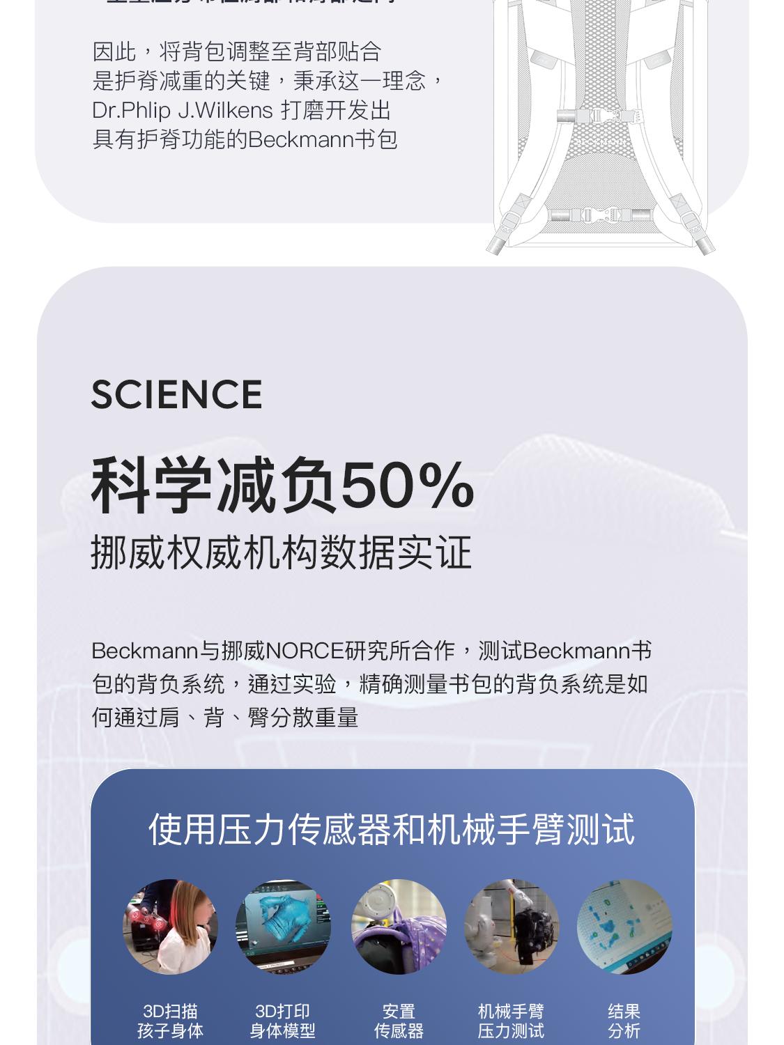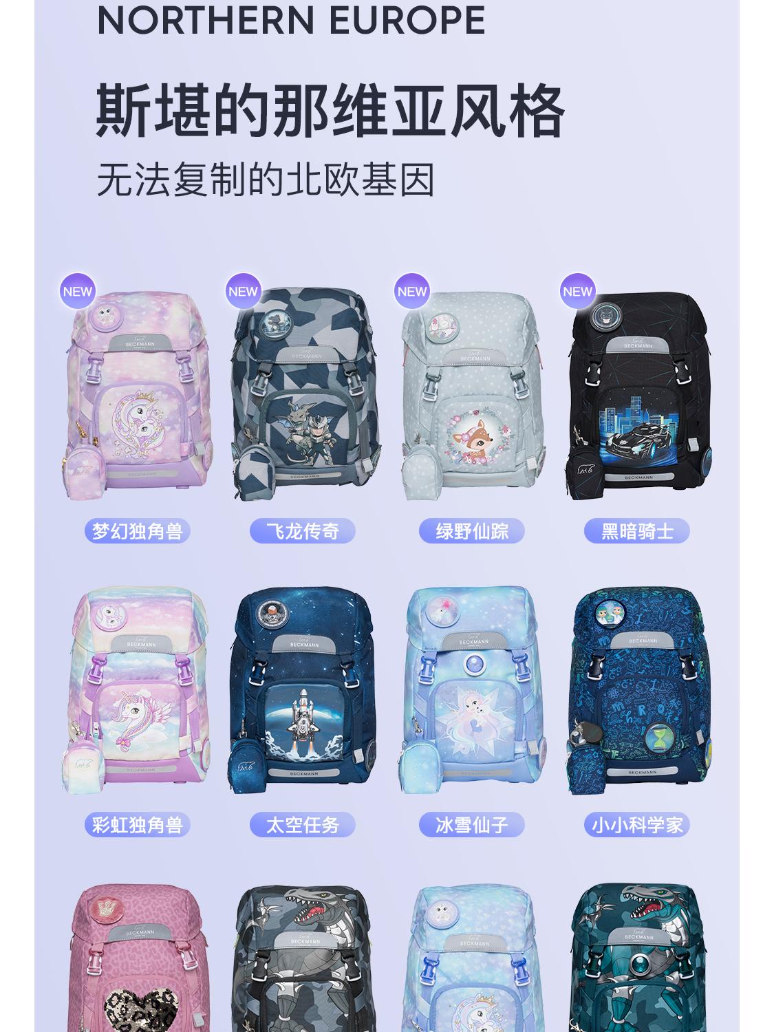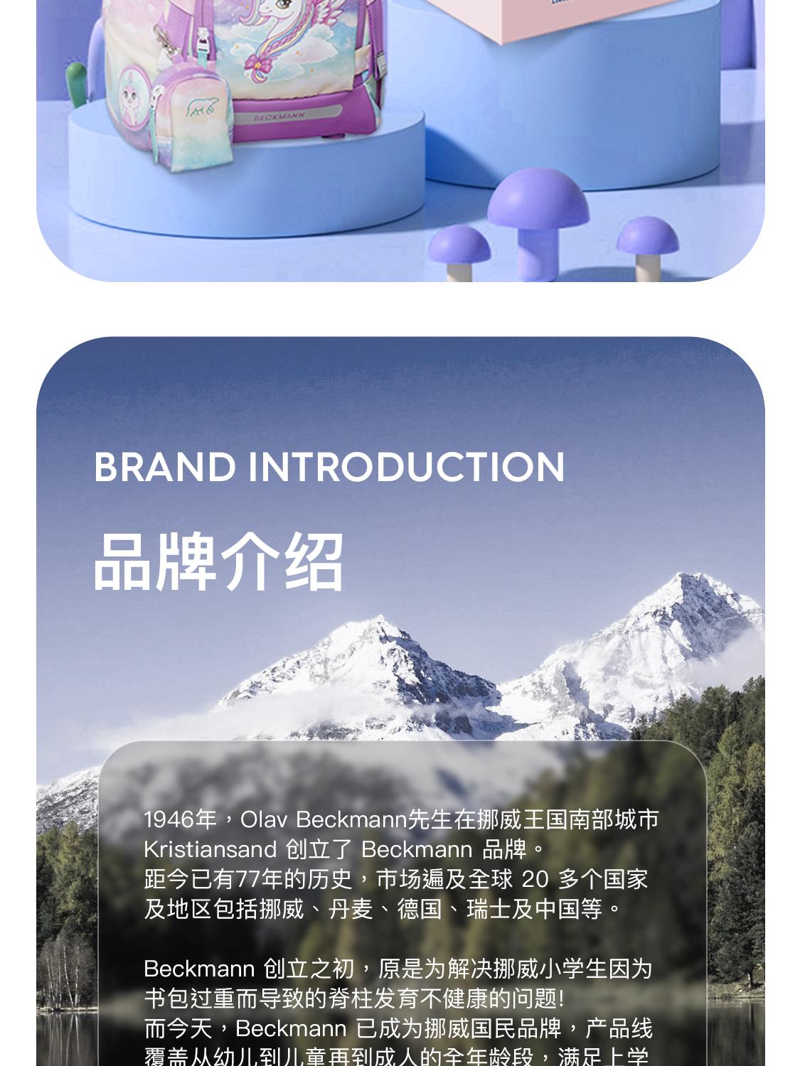 经典款22L挪威Beckmann贝克曼女男孩1-3-6年级学生减压儿童护脊双肩书包