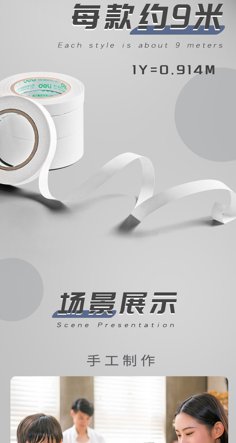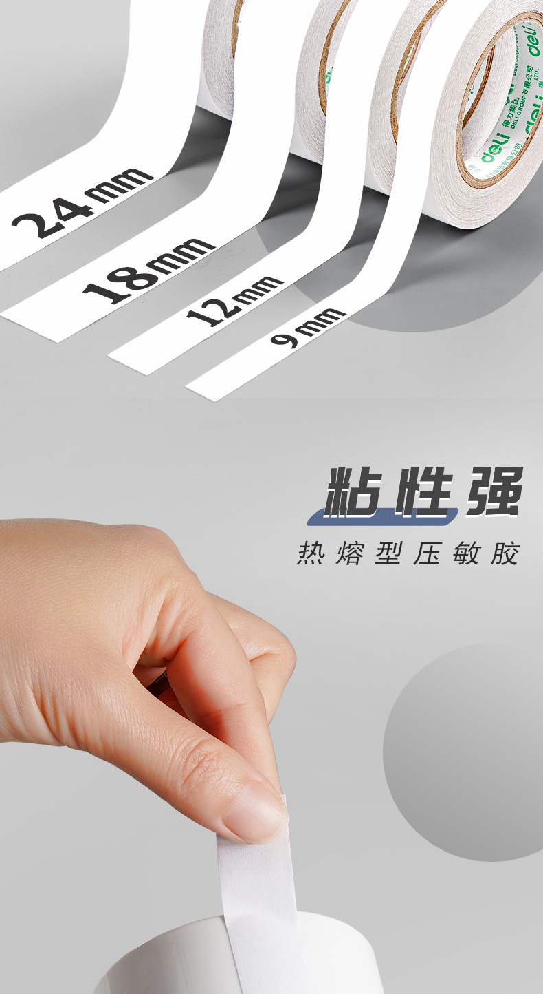 【得力系类!双面胶高粘度小卷芯】手撕即断,胶不露痕;高粘度技术,牢牢紧扣。多种规格,小巧方便;儿童学生皆可用!