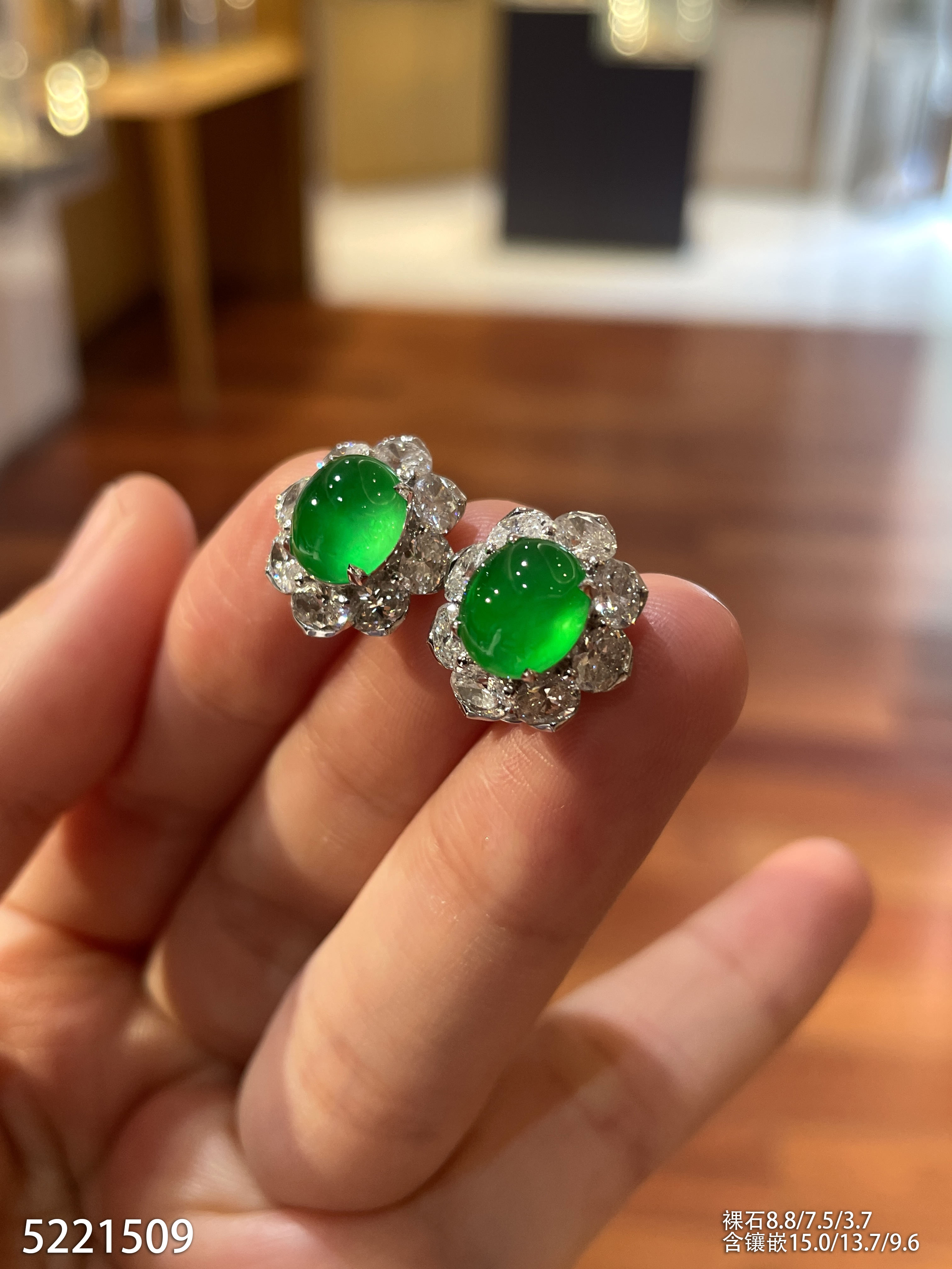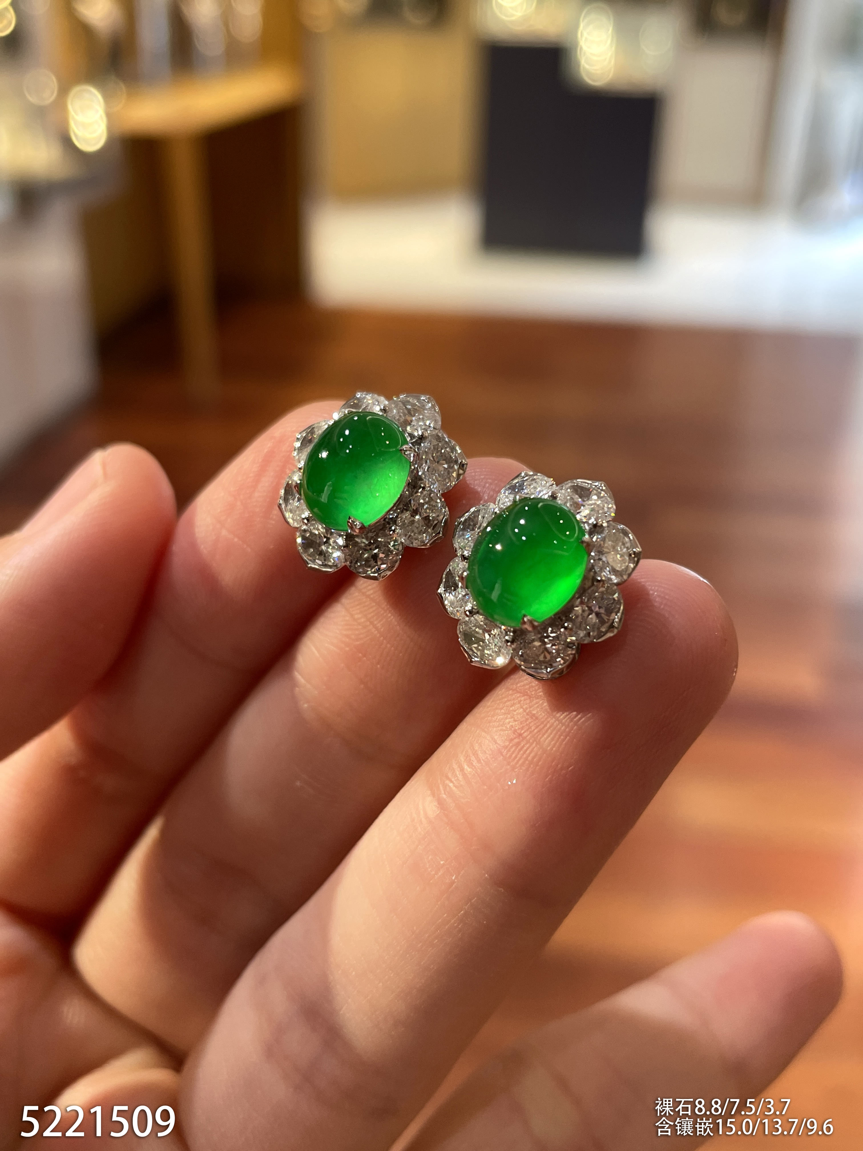 玻璃种黄阳色系蛋面耳钉【5221509】具体价格微信咨询