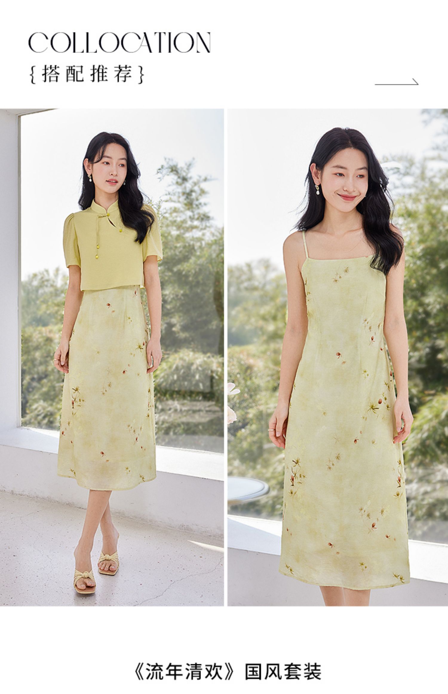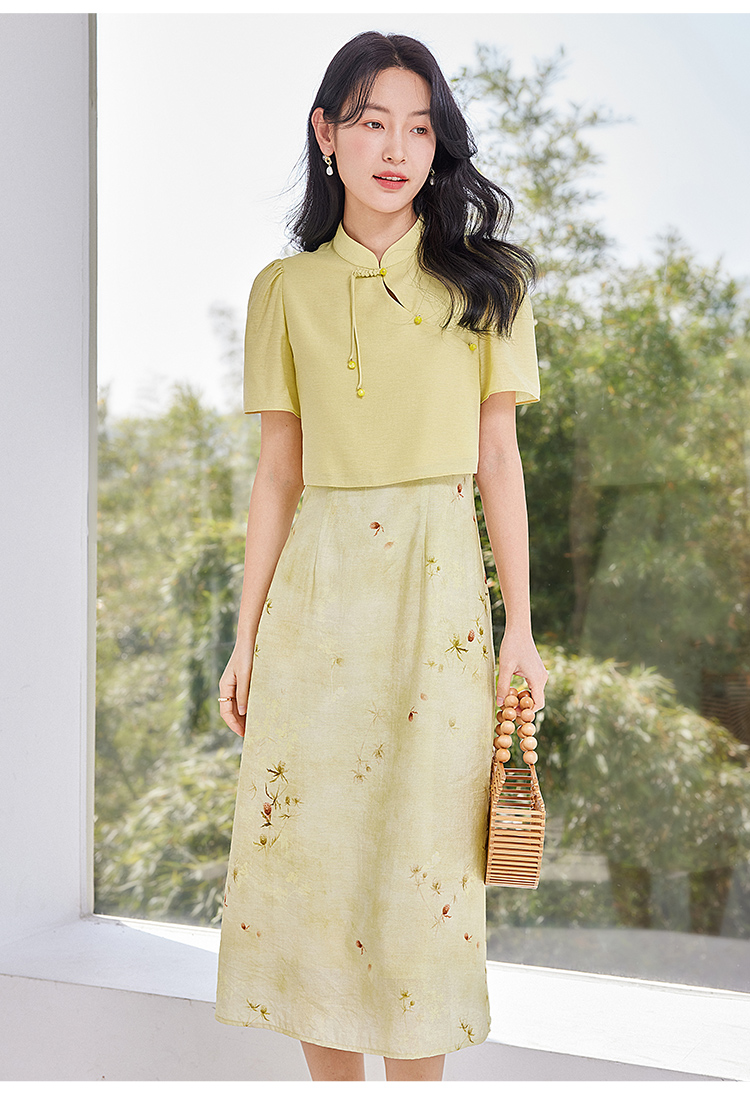 【专属特价】熙世界新中式复古国风连衣裙套装夏气质改良旗袍吊带裙子两件套
