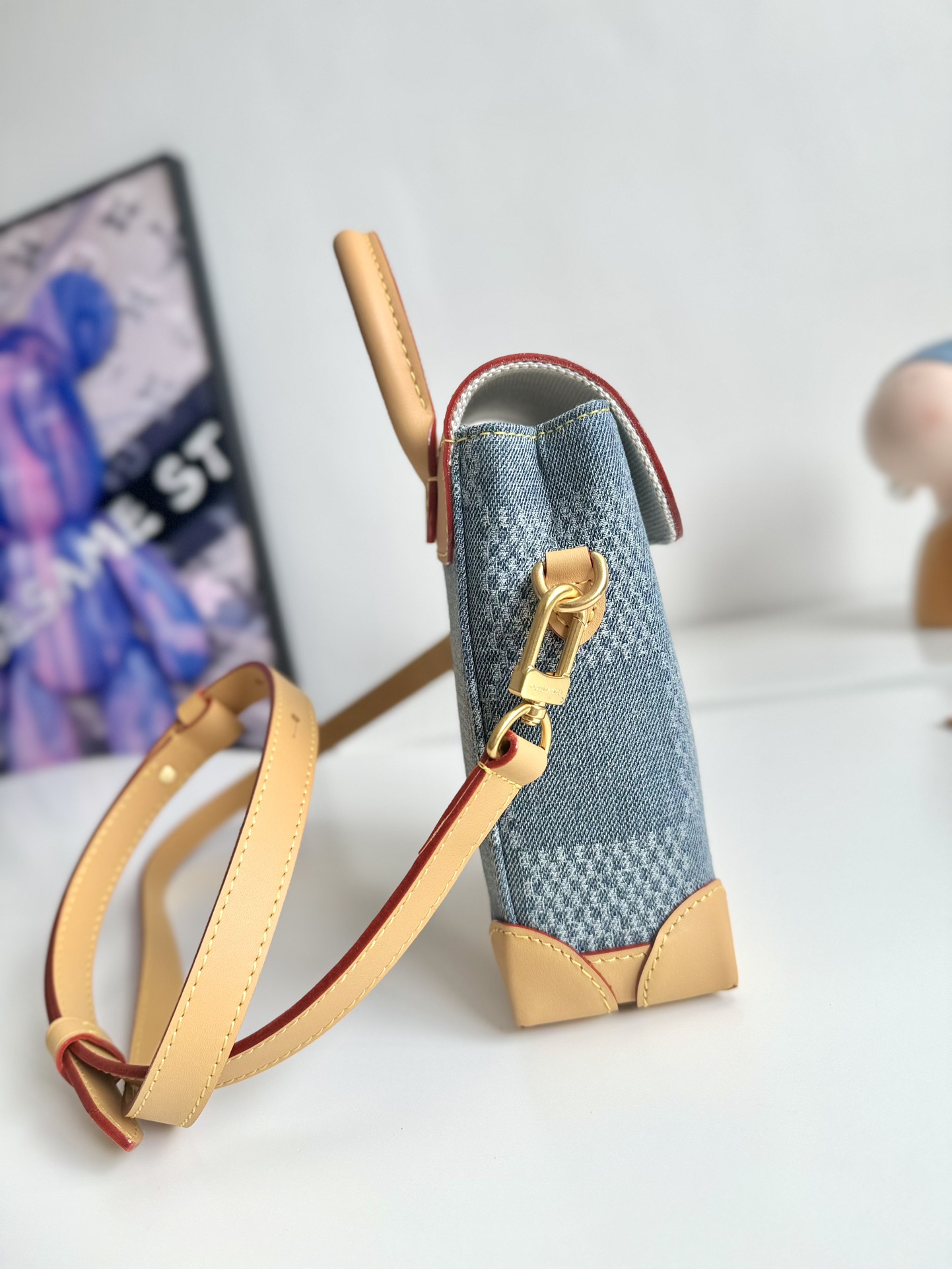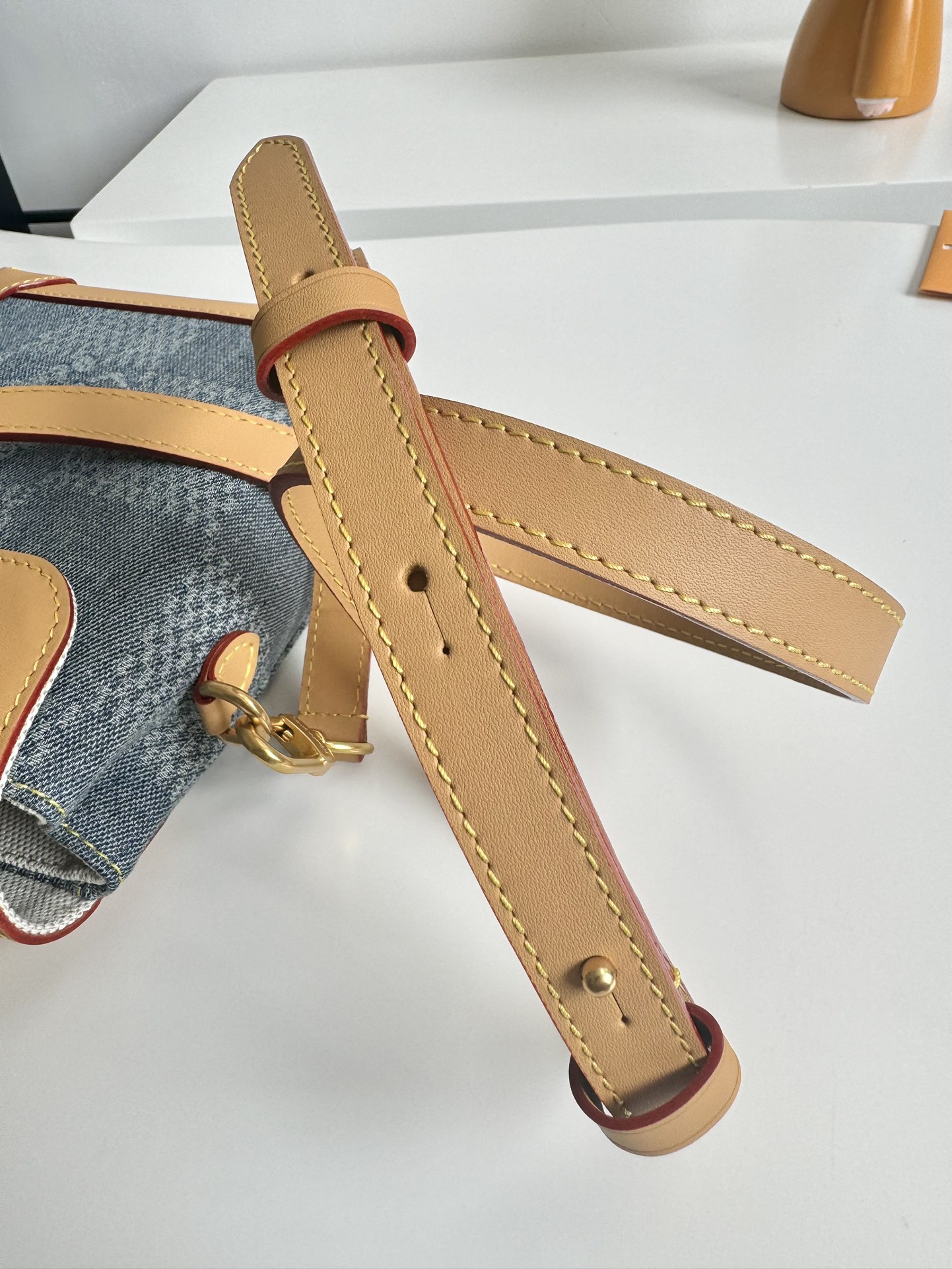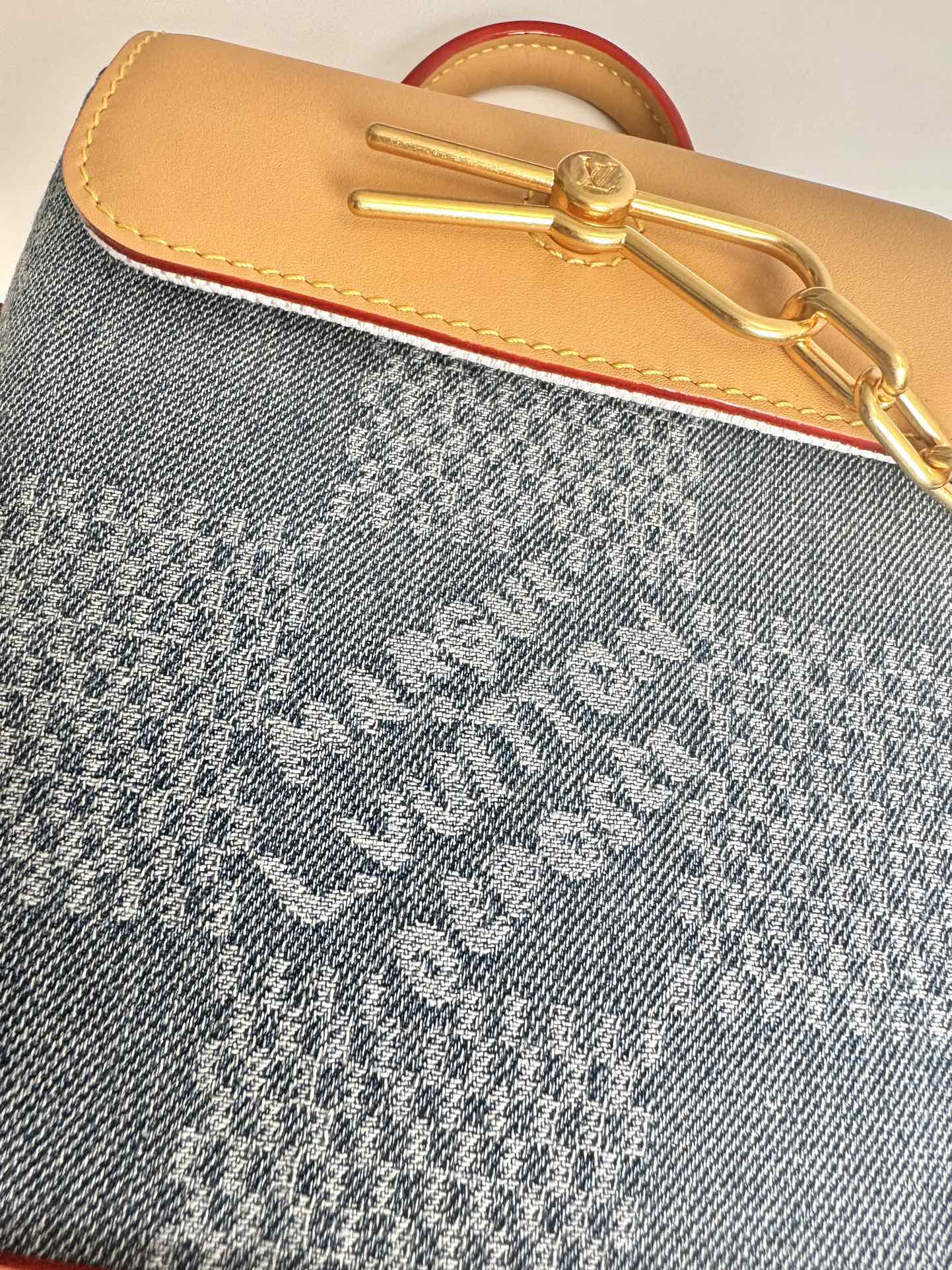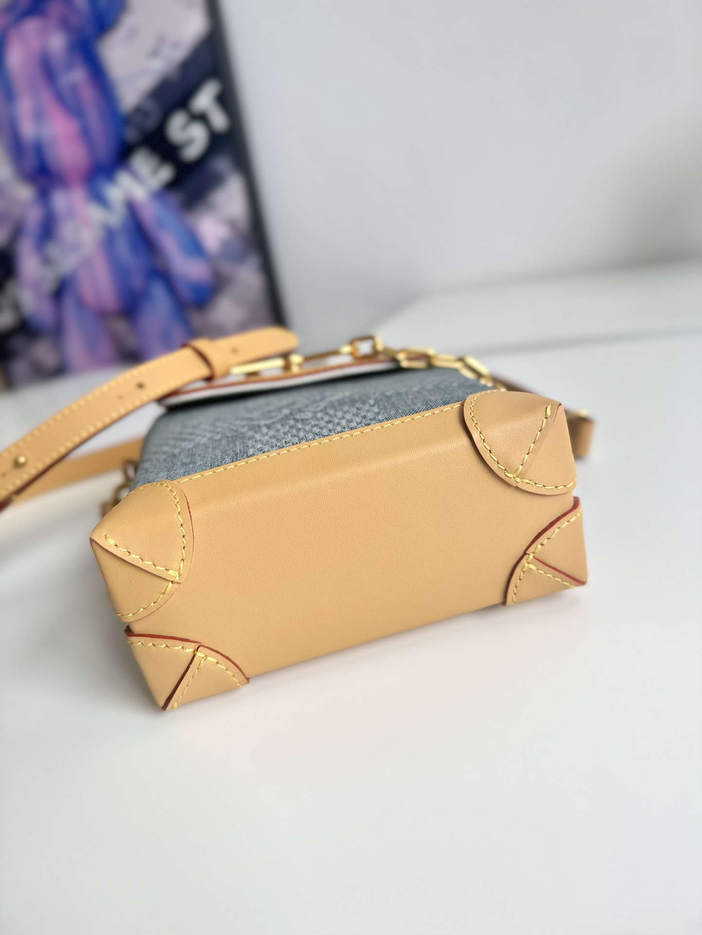 本款 Nano Steamer 手袋向 20 世纪初的 Steamer 手袋汲取灵感,以 Pharrell Williams 设计的柔软 Damier Denim 3D 棉质帆布塑造精巧都市包构型。牛皮革饰边、手柄和肩带完善雅致设计。