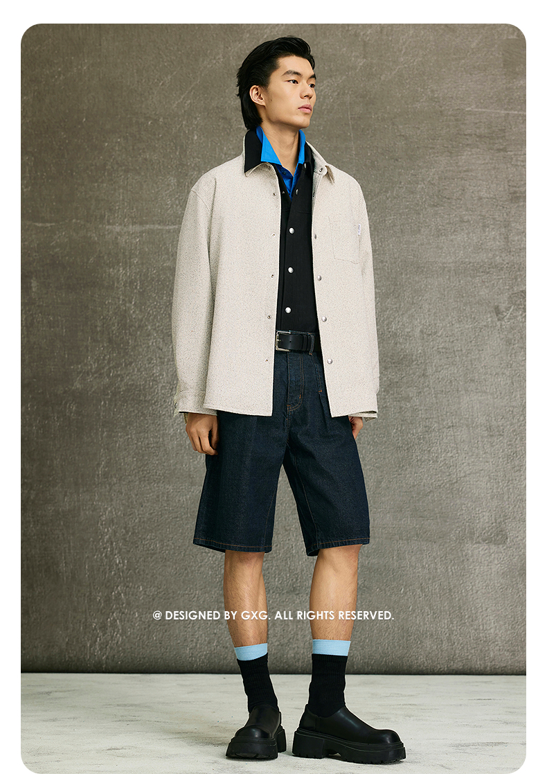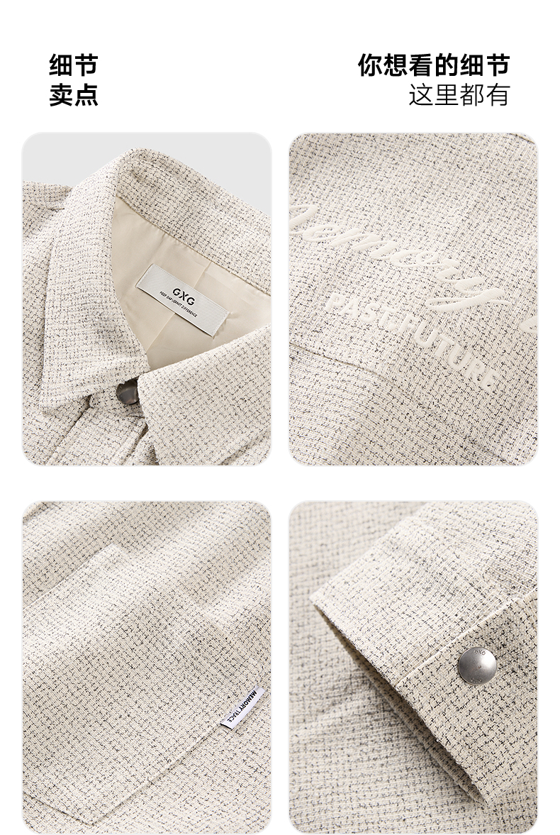 GXG男装 米白色小香风微肌理绣花翻领夹克25年春热卖G25X211021