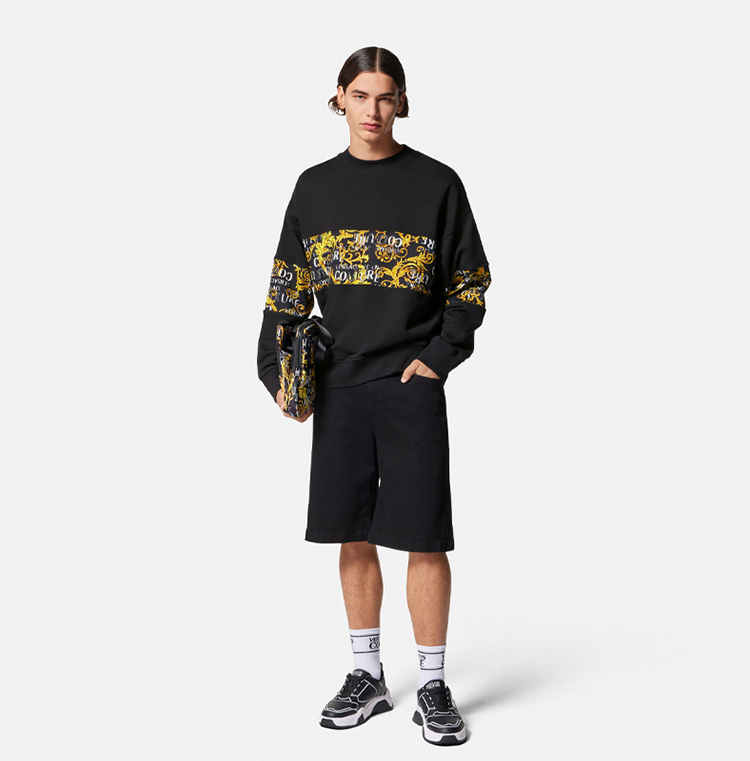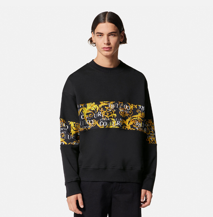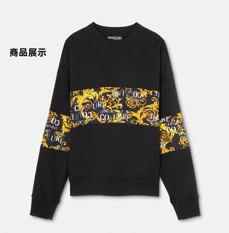 VERSACE JEANS COUTURE 范思哲 男士棉质徽标印花圆领长袖卫衣 黑色 74GAI309 FS063 G89