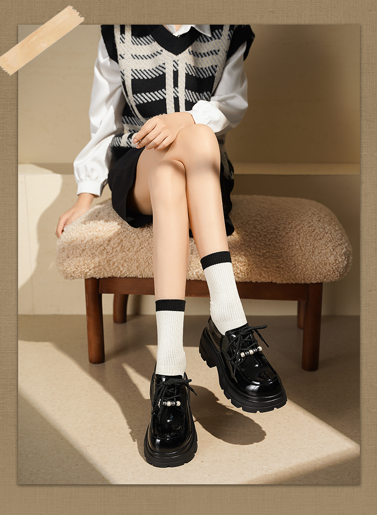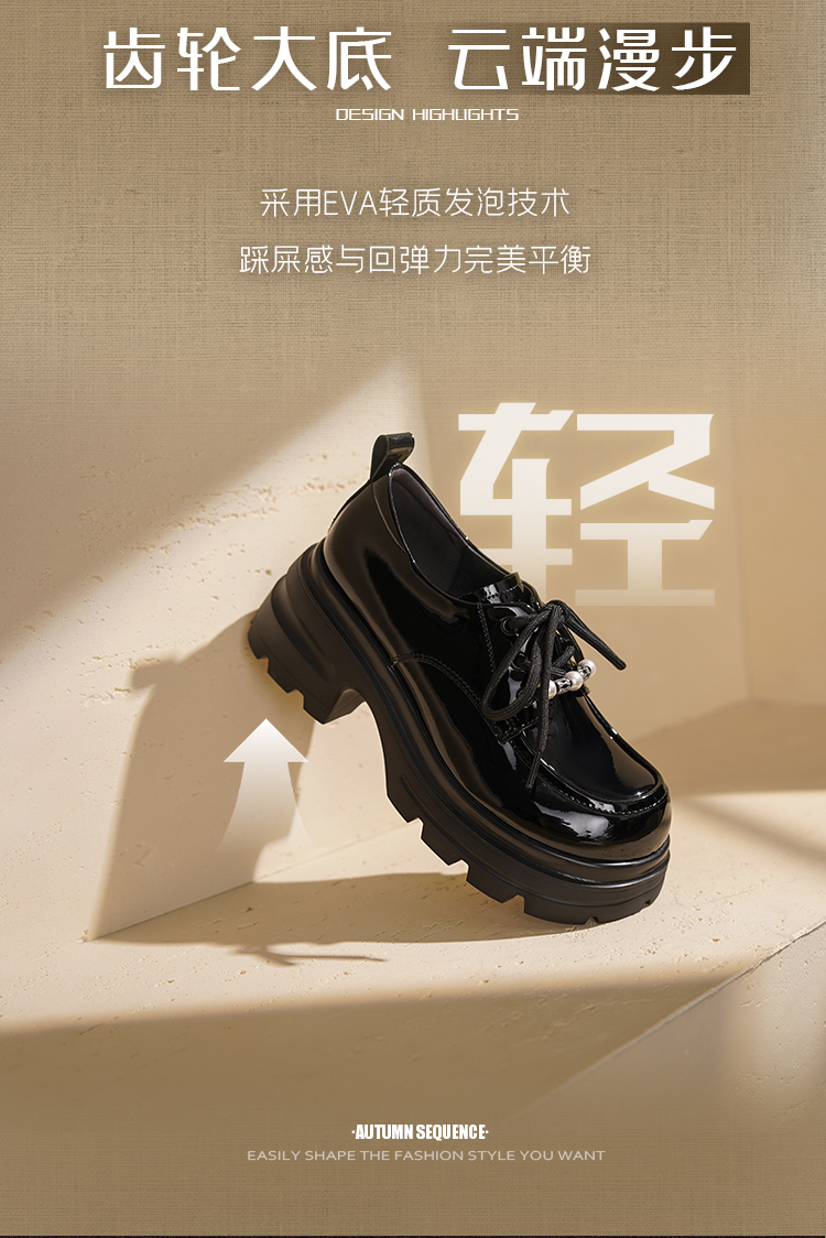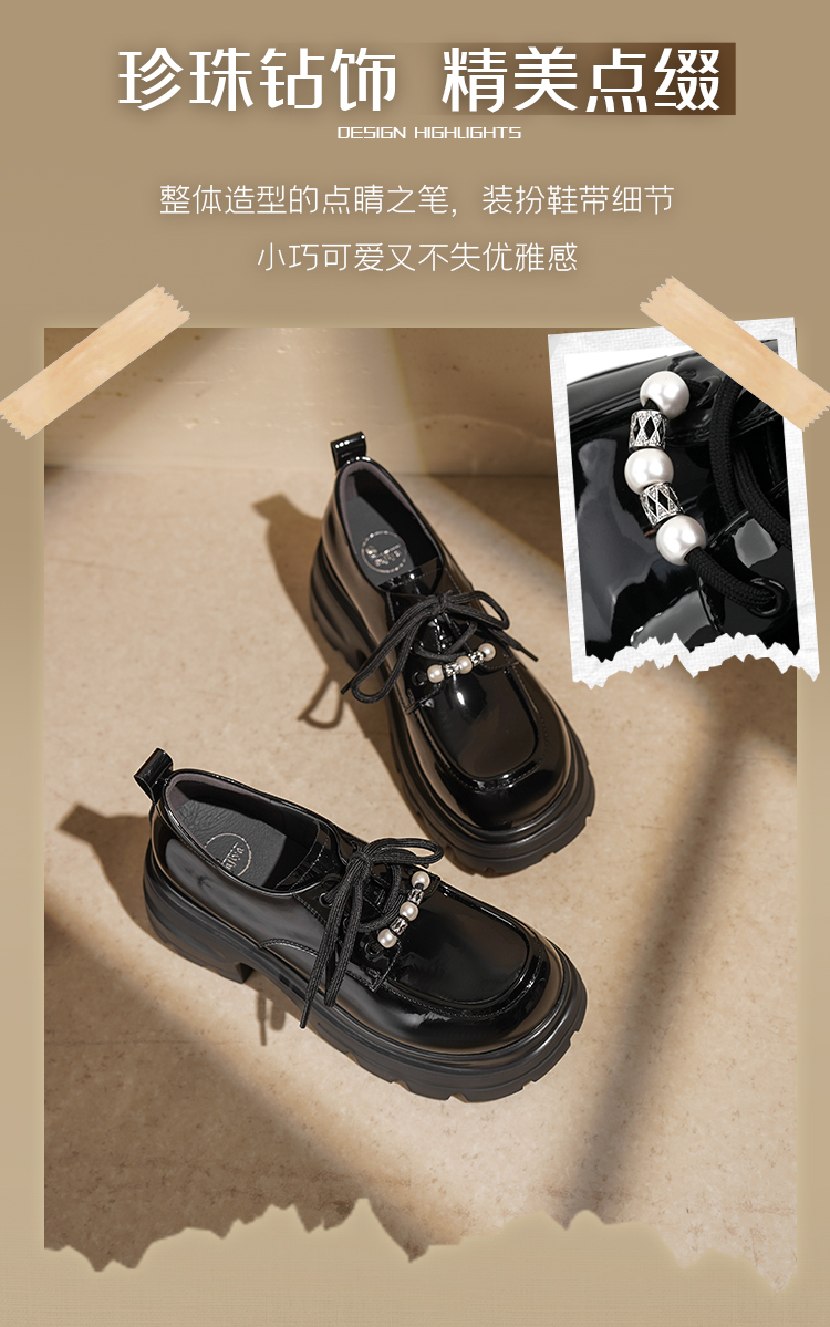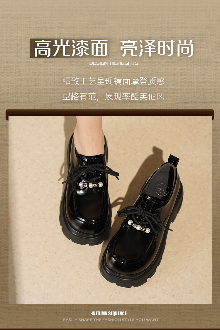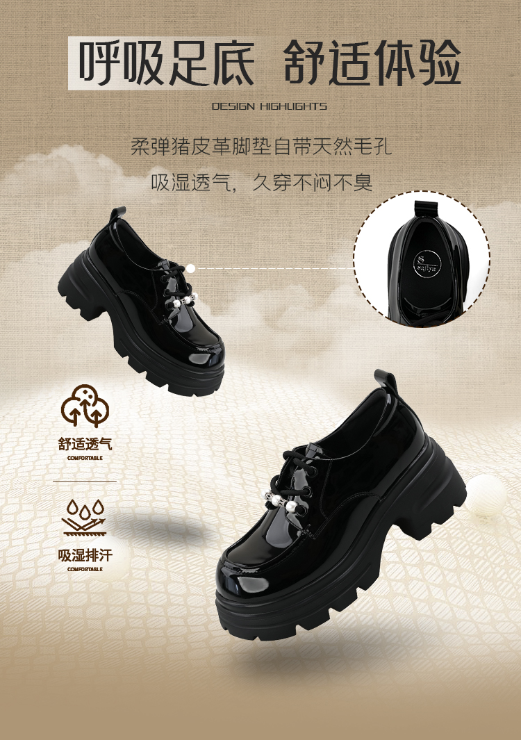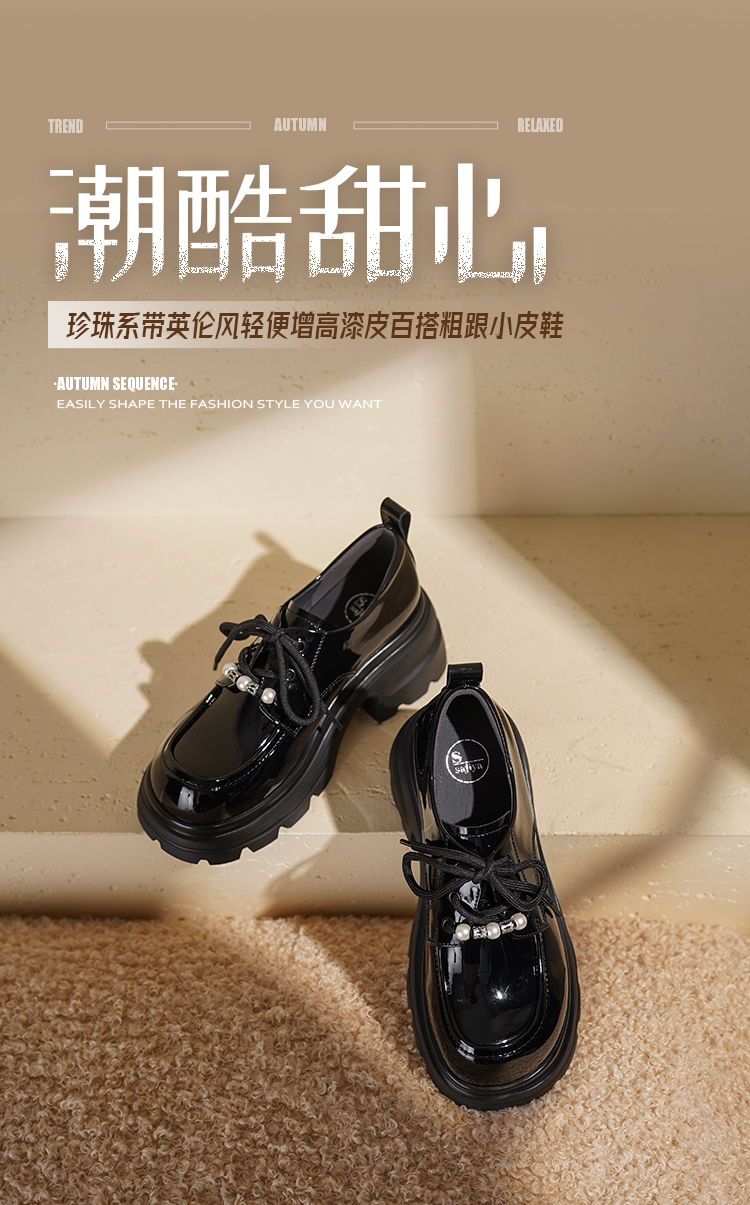 预售|Safiya/索菲娅2025珍珠系带英伦风轻便增高漆皮百搭粗跟小皮SFD3112171