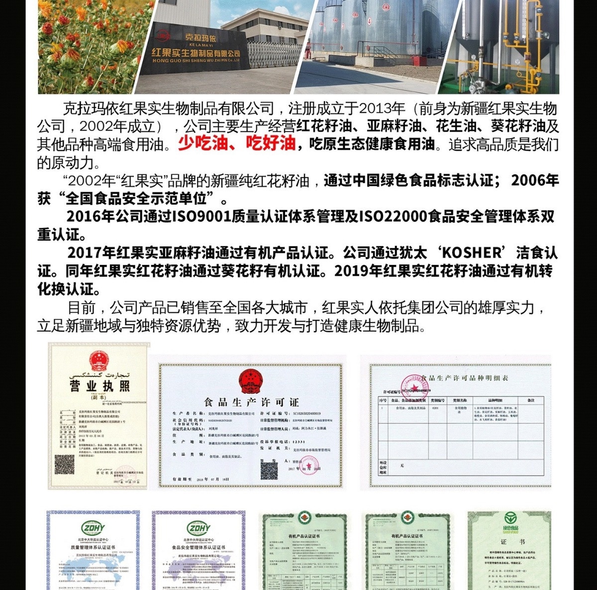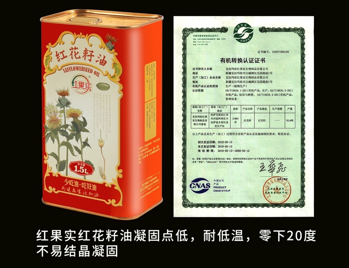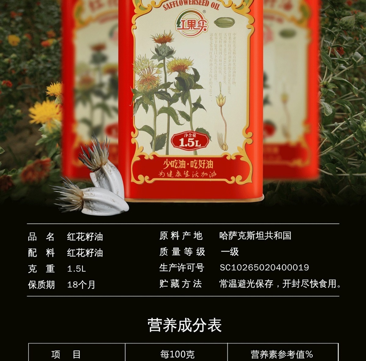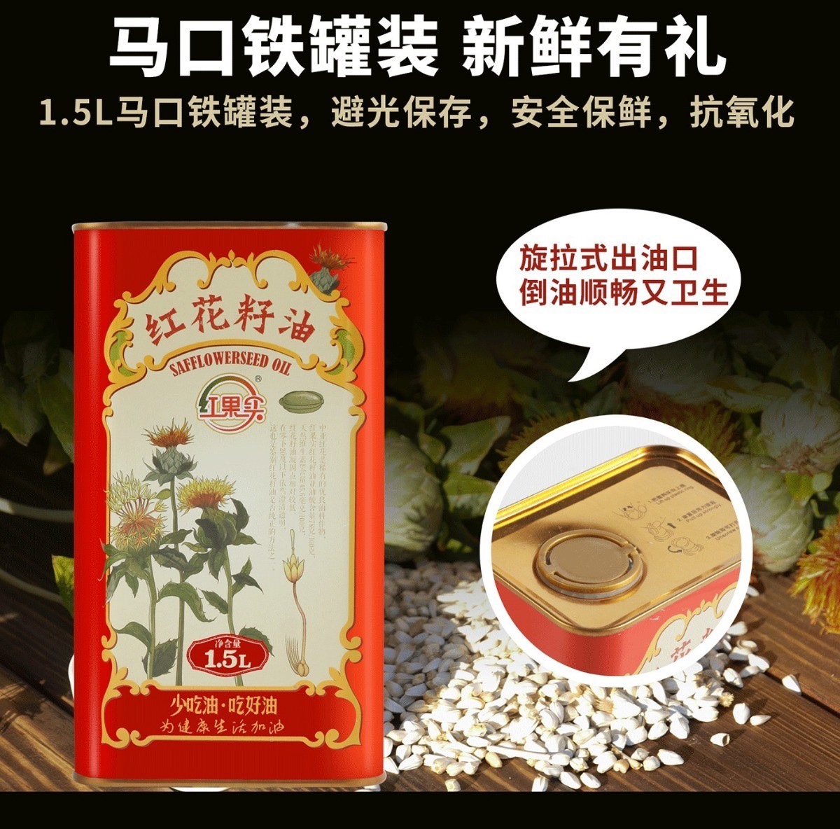 红果实有机红花籽油1.5L 物理压榨一级有机食用植物油