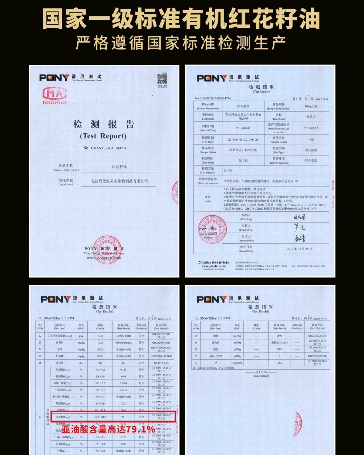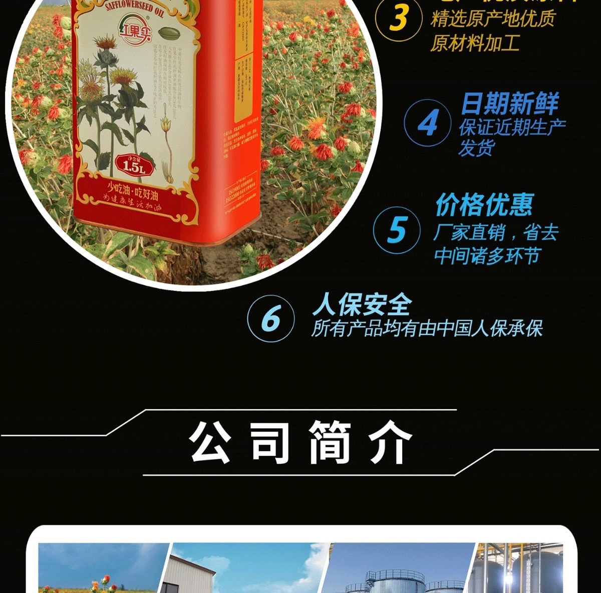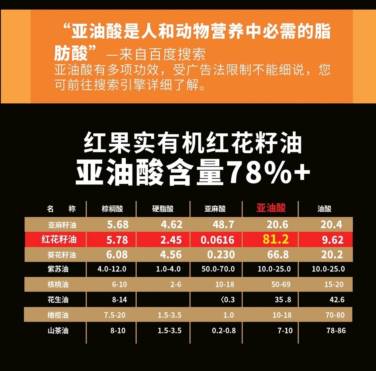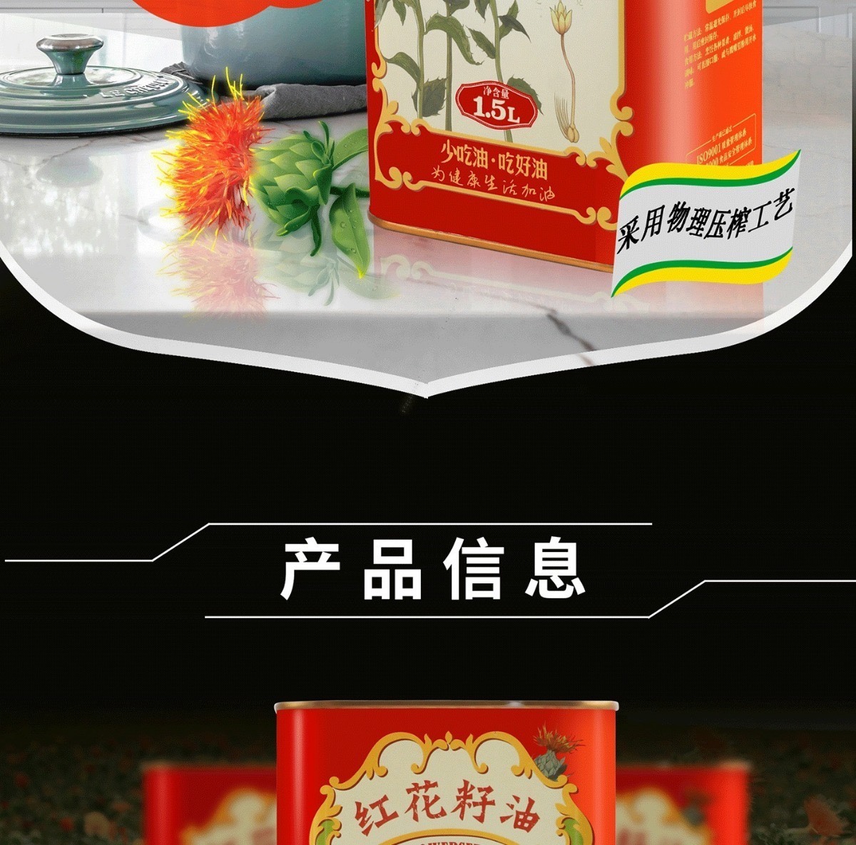 红果实有机红花籽油1.5L 物理压榨一级有机食用植物油