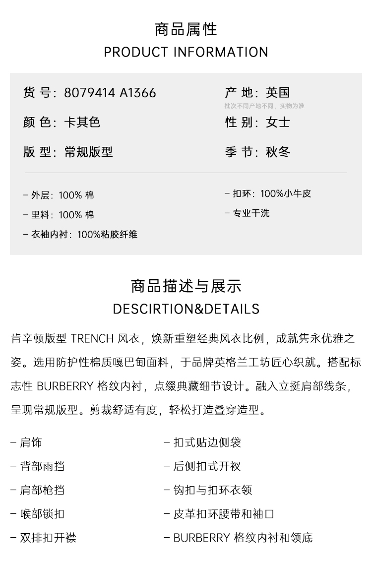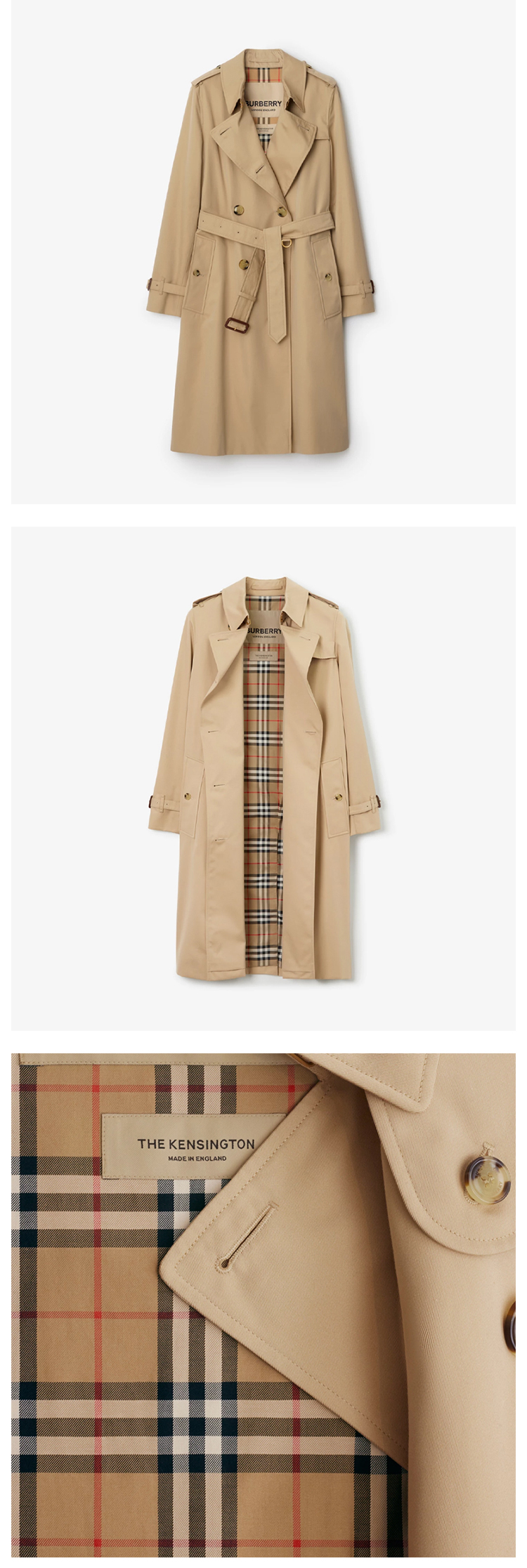 BURBERRY 巴宝莉 女士肯辛顿版型 – 长款 Heritage Trench 束腰风衣 米色 8079414 A1366