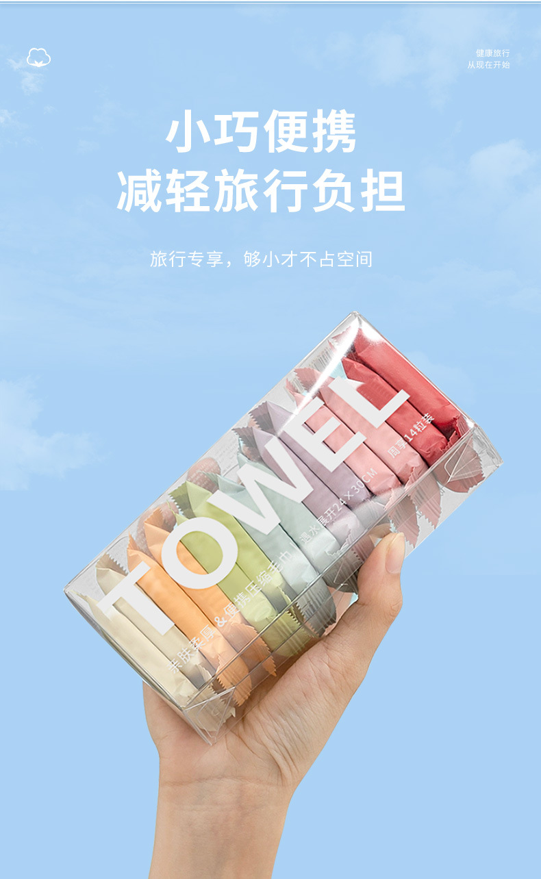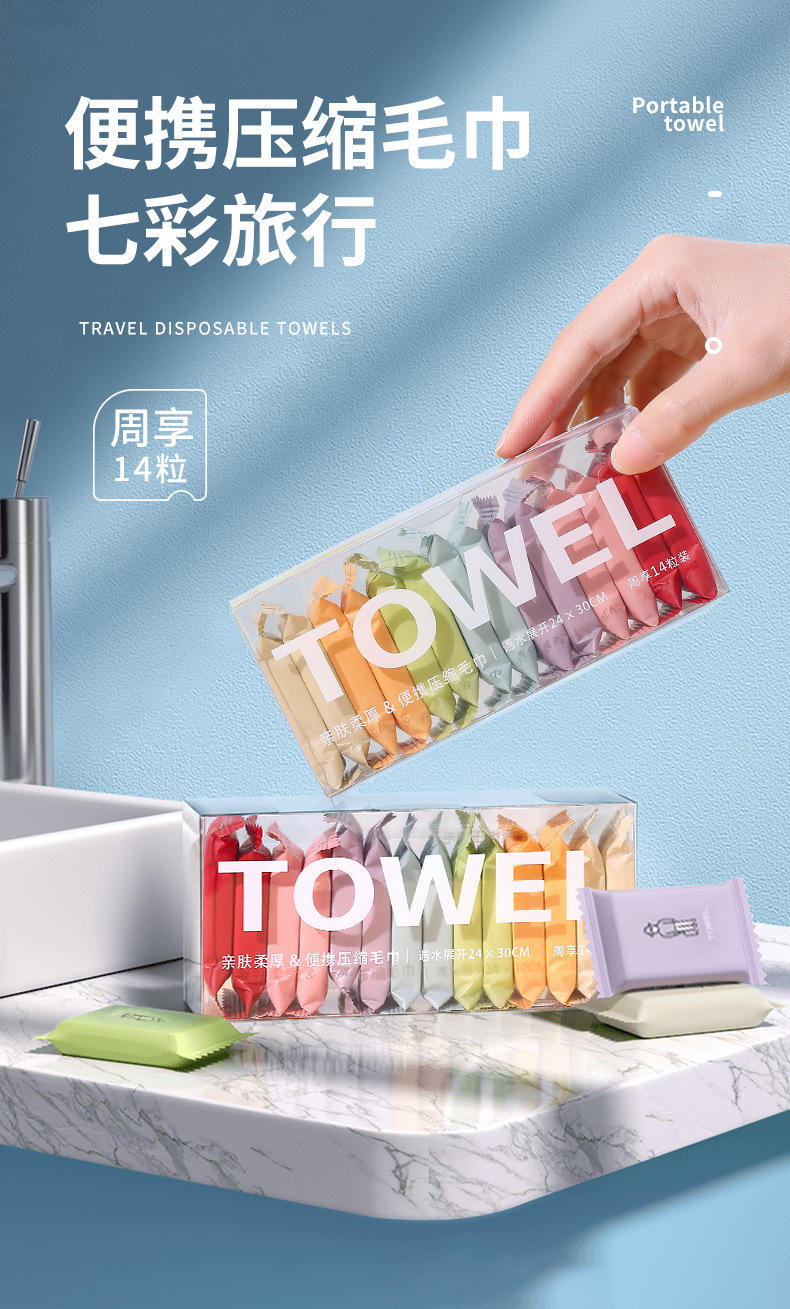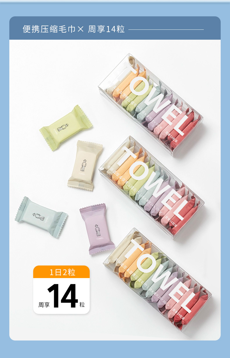 「9.9到手14粒!买2送1」压缩毛巾一次性洗脸巾盒装加厚纯棉洁面巾出差旅行便携式酒店毛巾居家布艺
