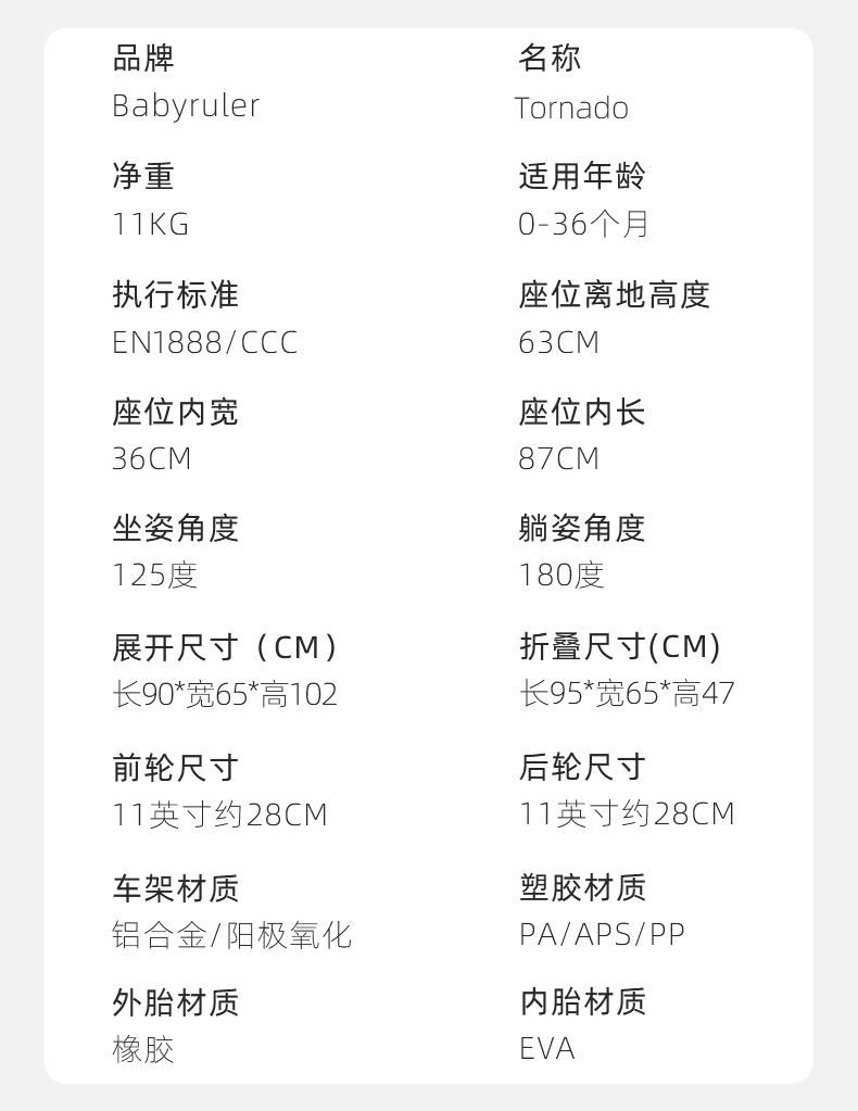 babyruler高景观婴儿车Tomado-T2/BBR-601178