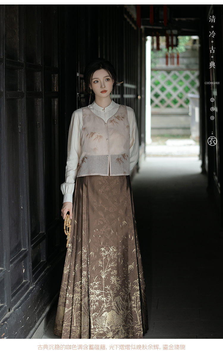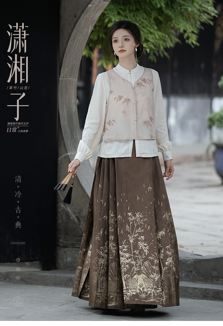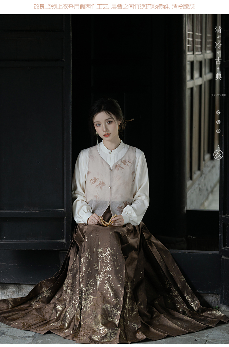 【重回汉唐潇湘子】正品原创改良竖领对襟马面裙套装明制汉服女装