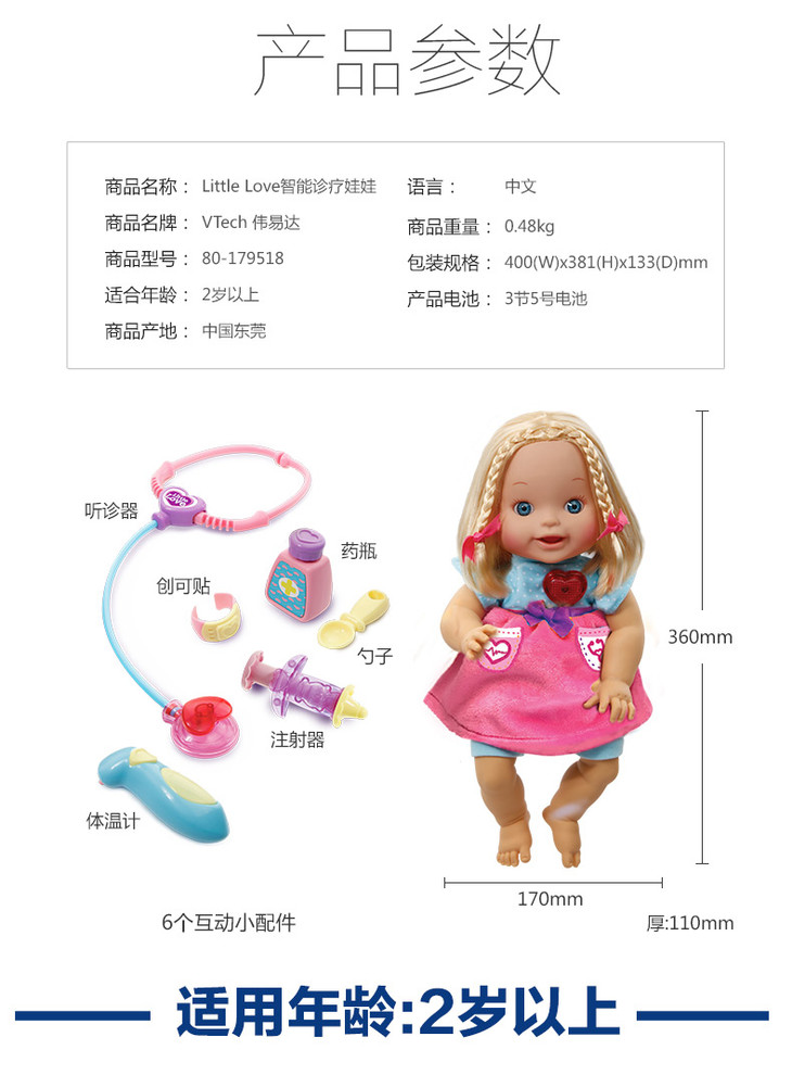伟易达littleLove智能诊疗娃娃会说话的洋娃娃儿童医生打针玩具