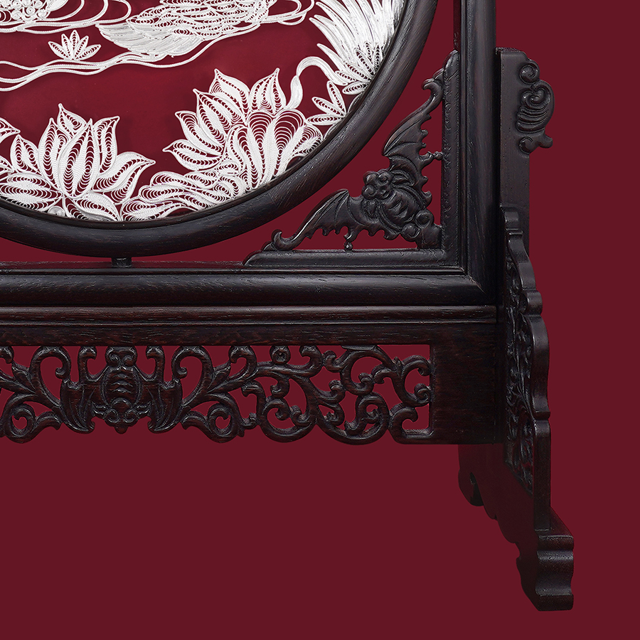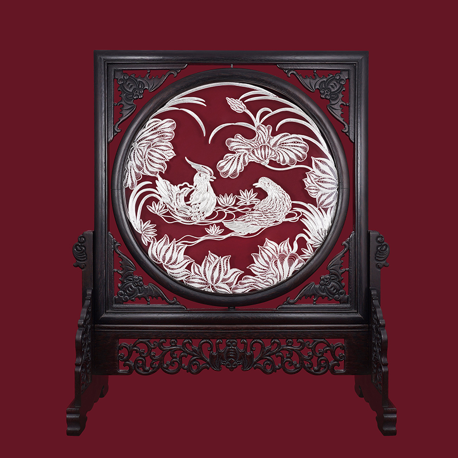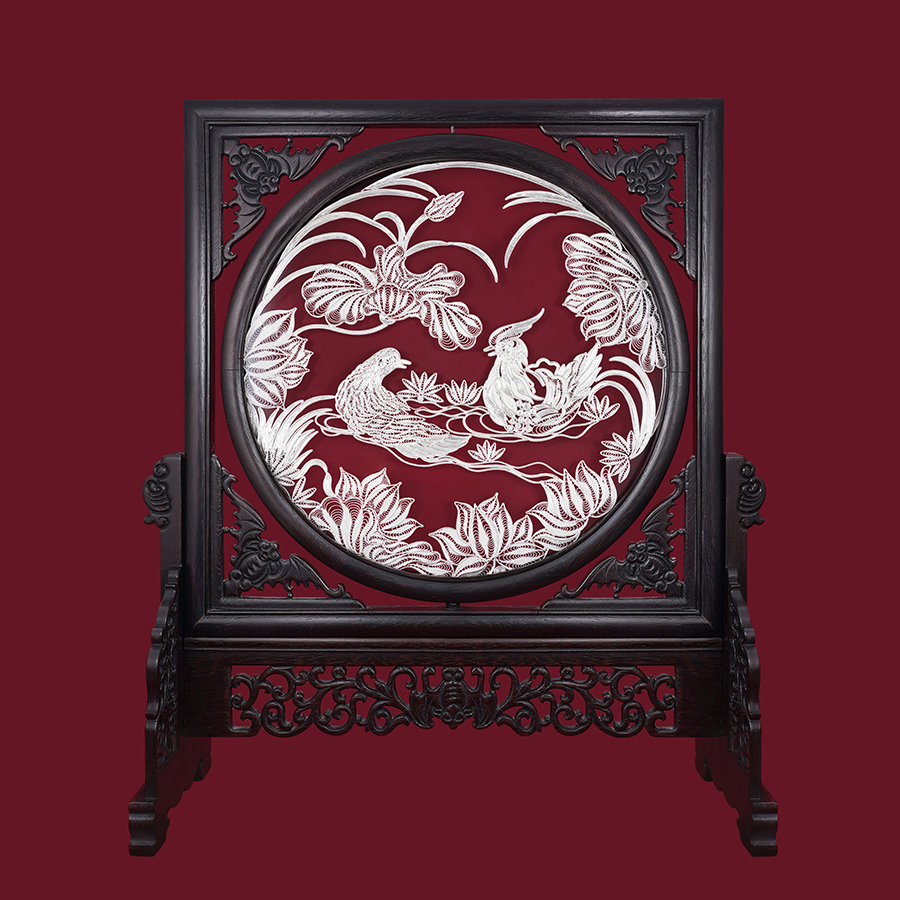 子佩集S999银手工银花丝【鸳鸯戏莲】双面旋转花丝台屏【YYXLHATP】大师工坊原创设计2508