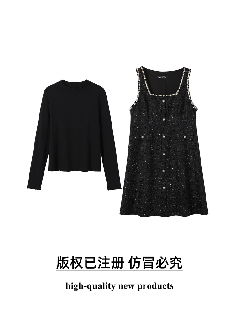 奢姿大码女装2025秋季胖妹妹时尚亮钻装饰气质减龄吊带裙两件套装9953970272AB