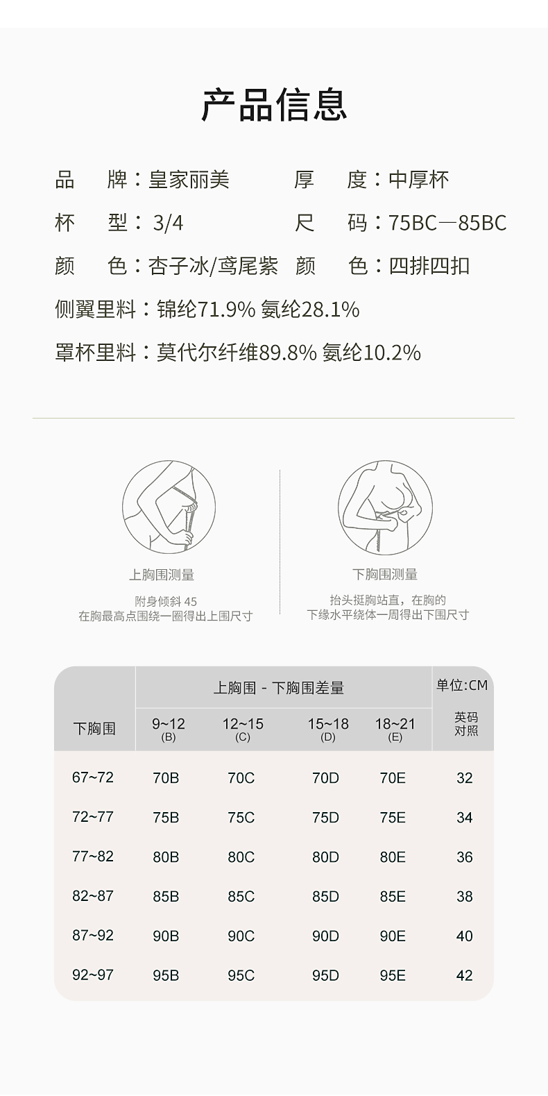 皇家丽美记忆钛圈加高侧比收副乳内衣上托防下垂调整型文胸WJ2505-2