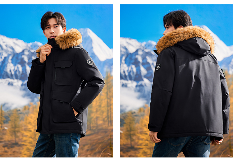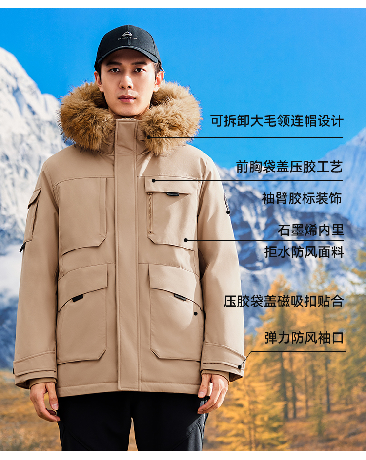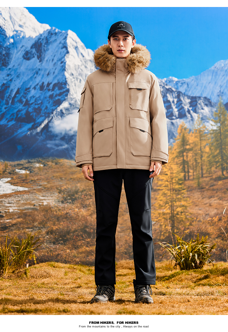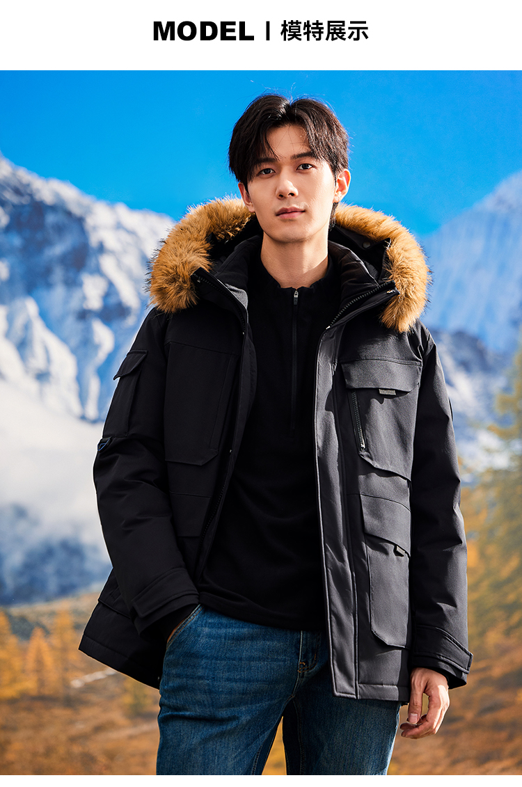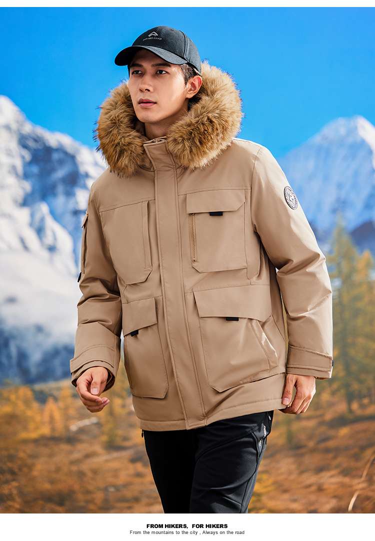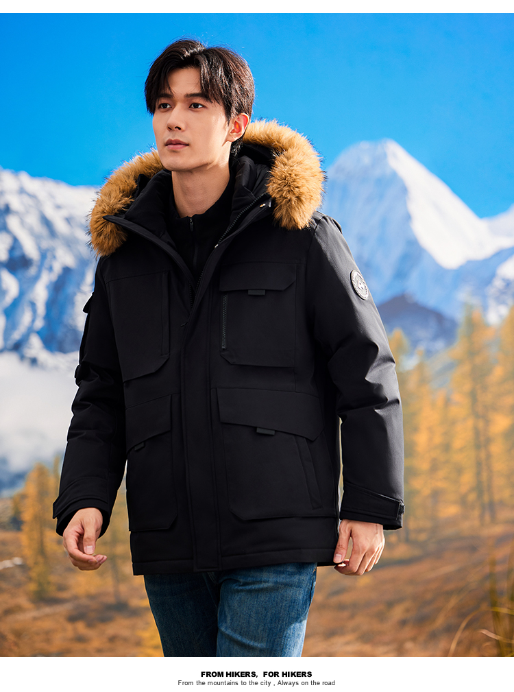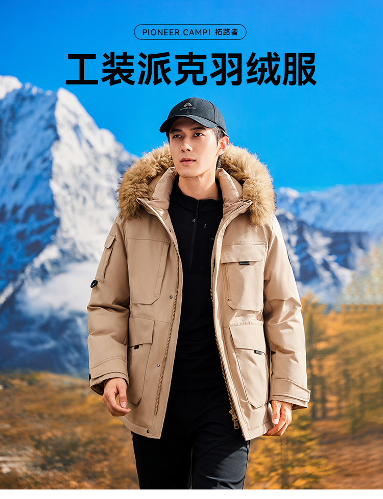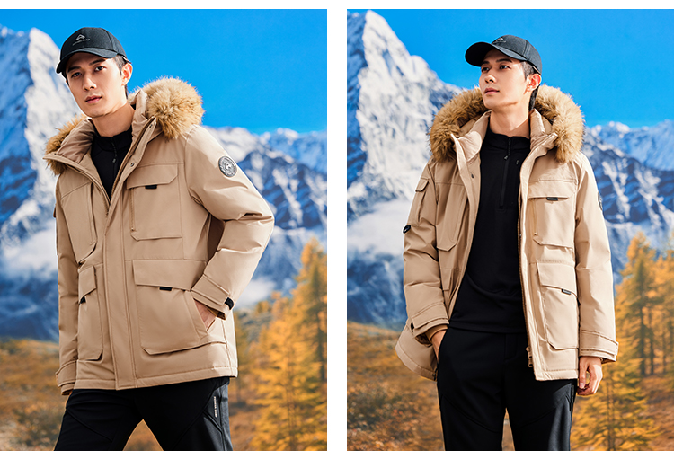 拓路者鸭绒中长款派克服羽绒服男款24年冬新毛领保暖户外保暖外套