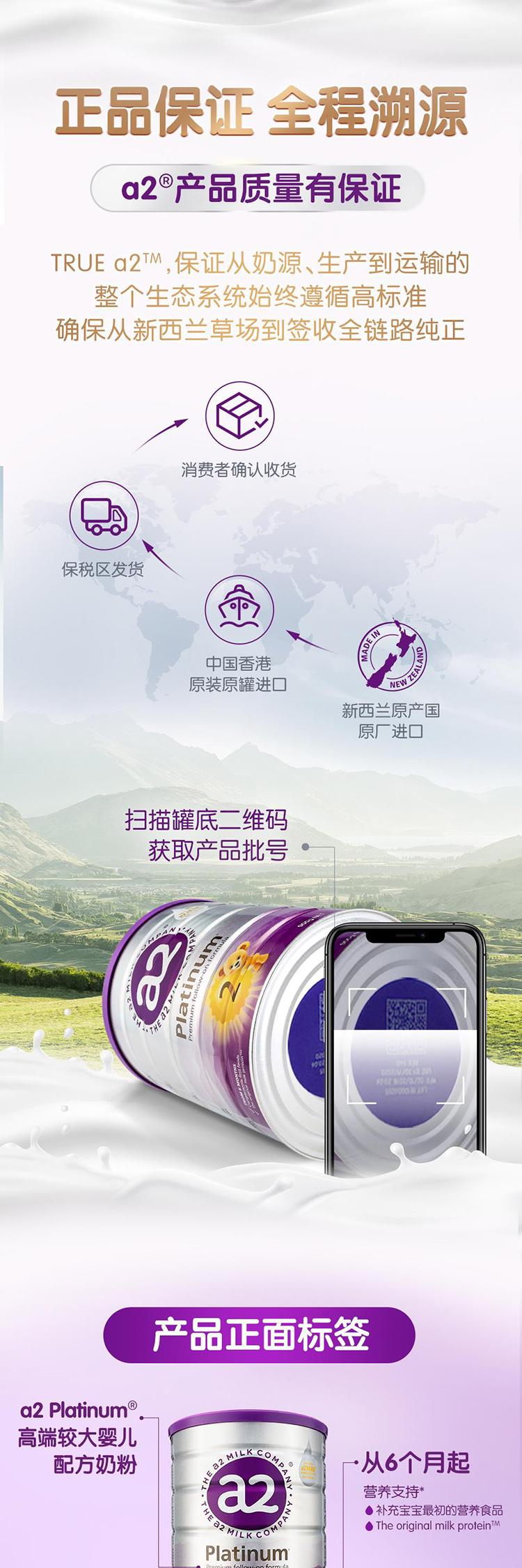 【保税仓发货】a2 白金婴儿配方较大婴儿奶粉二段 900克/罐6-12个月