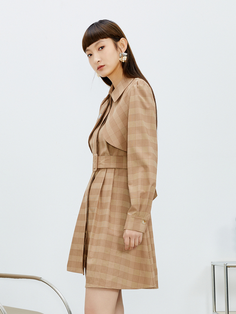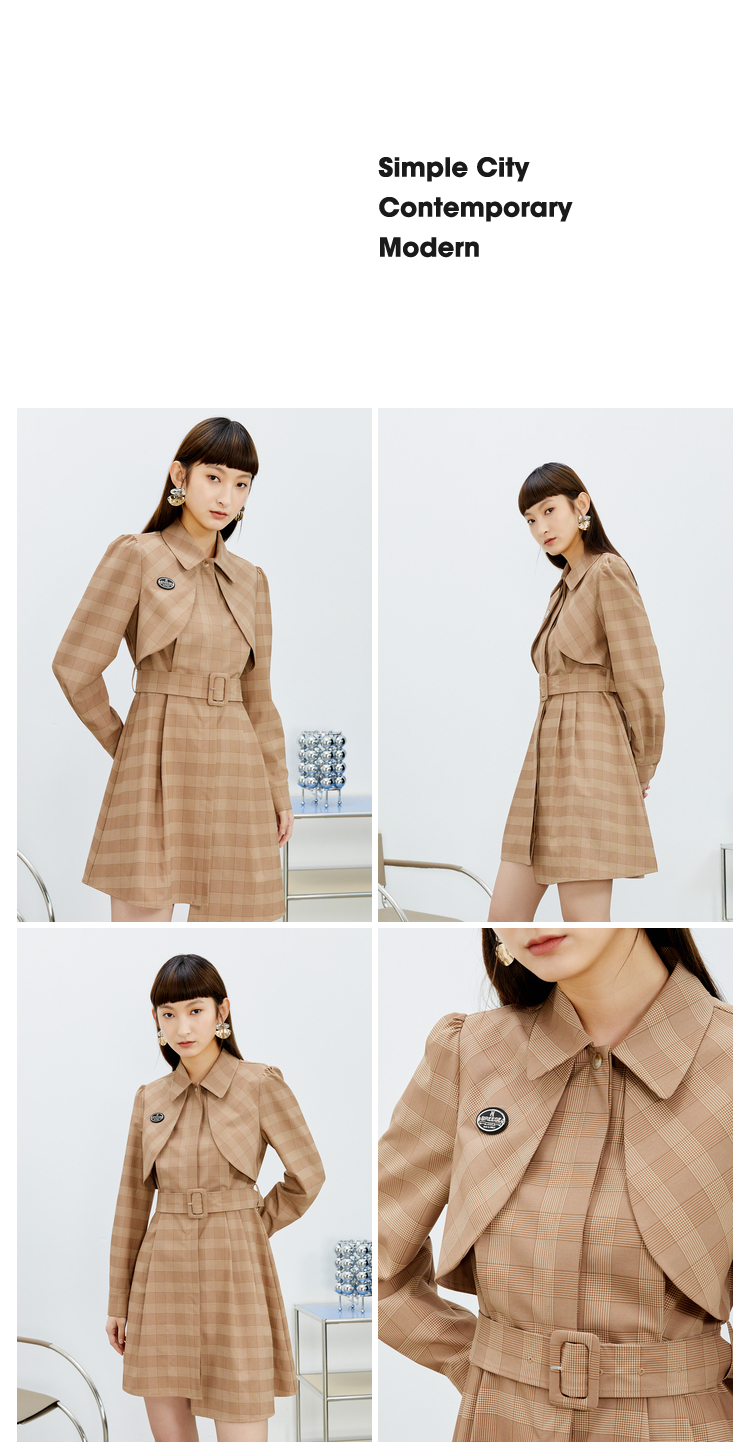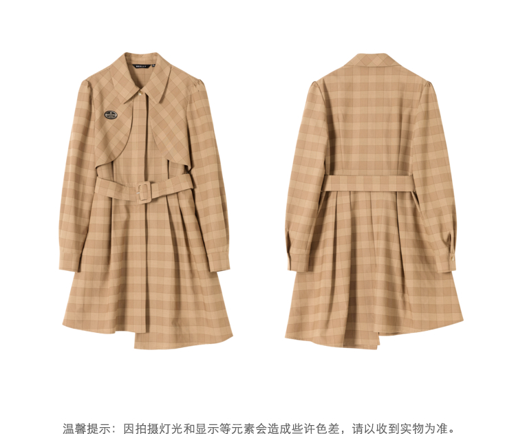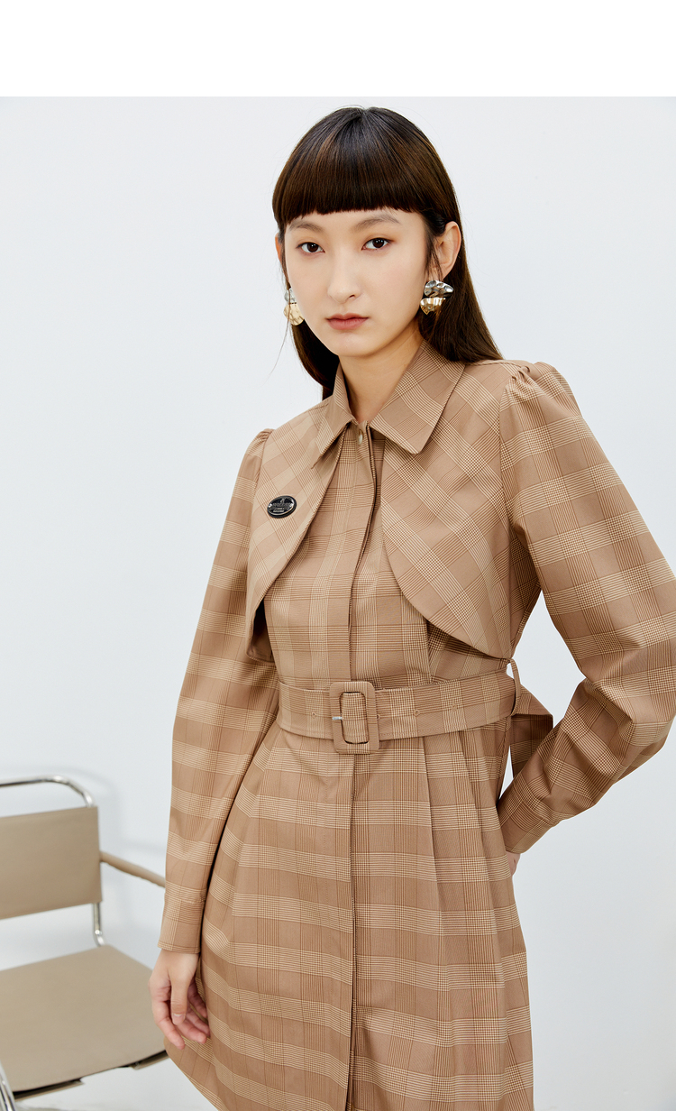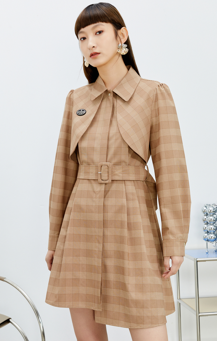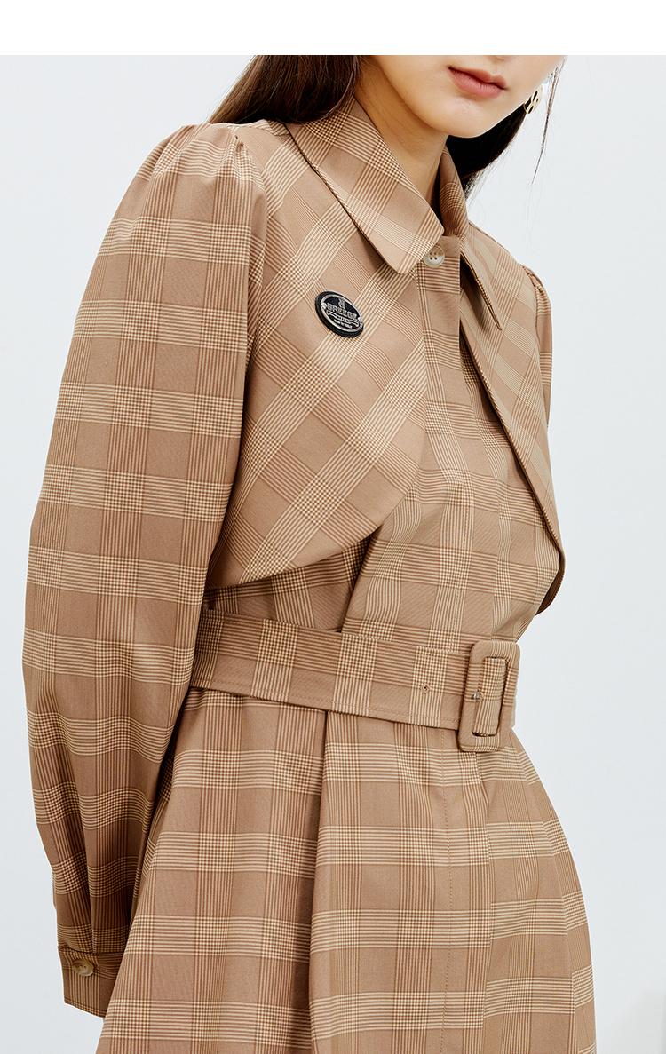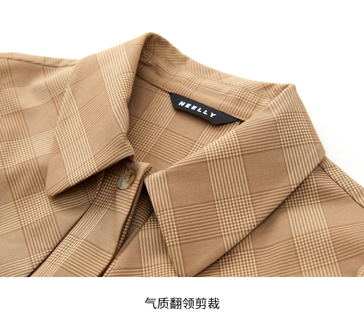 NEELLY纳俪气质格纹连衣裙女中长款收腰系带不规则下摆设计A字裙N22023Y01111