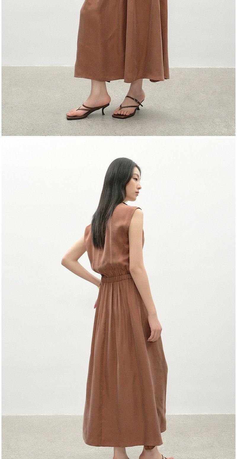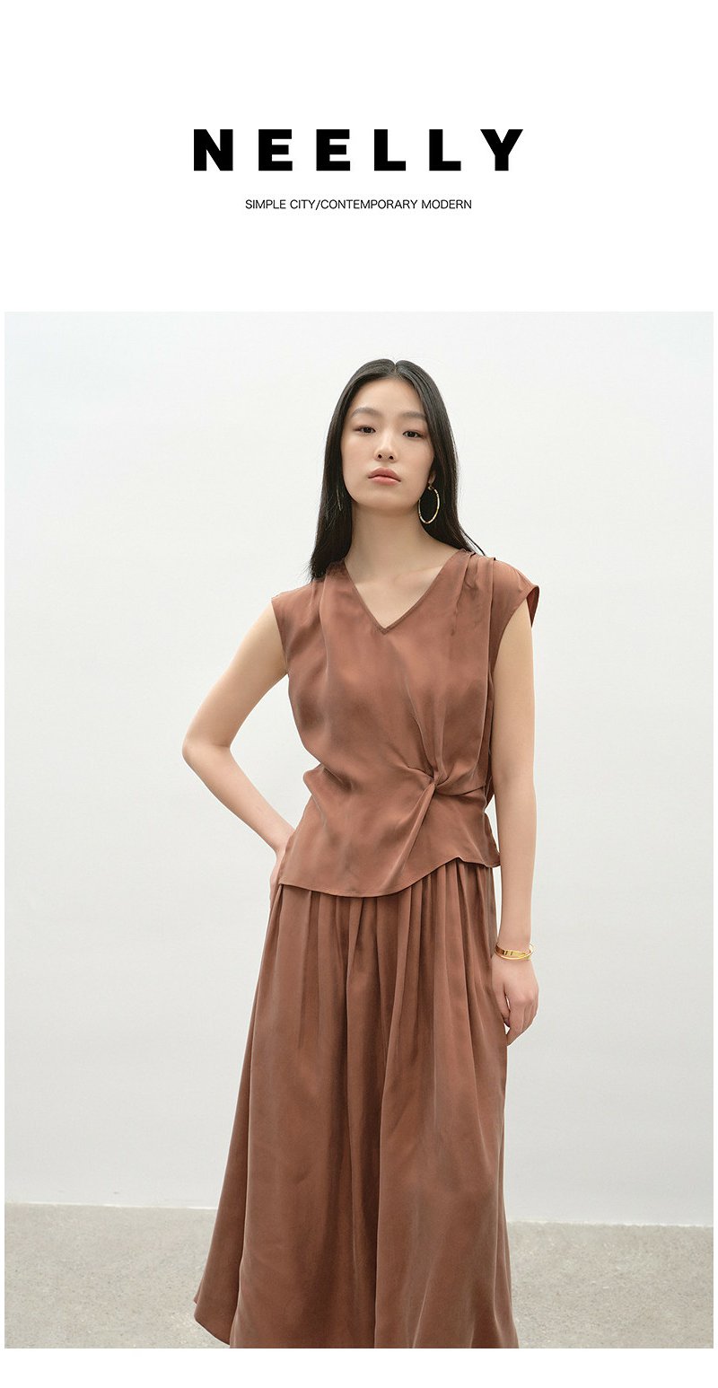 NEELLY纳俪商场同款夏季新款复古文艺风气质V领连衣裙女收腰长裙N26044Y04567