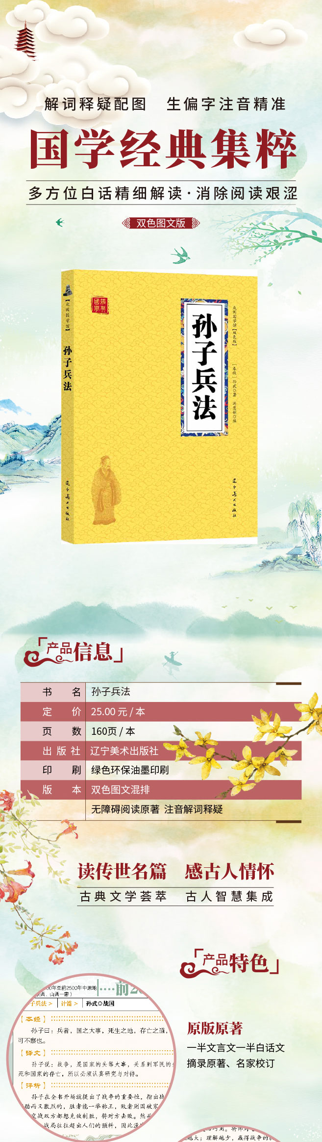 孙子兵法 众阅国学馆双色版本 初中生高中生国学小说书籍 历史人物智慧谋略故事名人传 中小学生课外阅读国学读物 中国传统文化历史典故大全 成人无障碍带注解国学大全