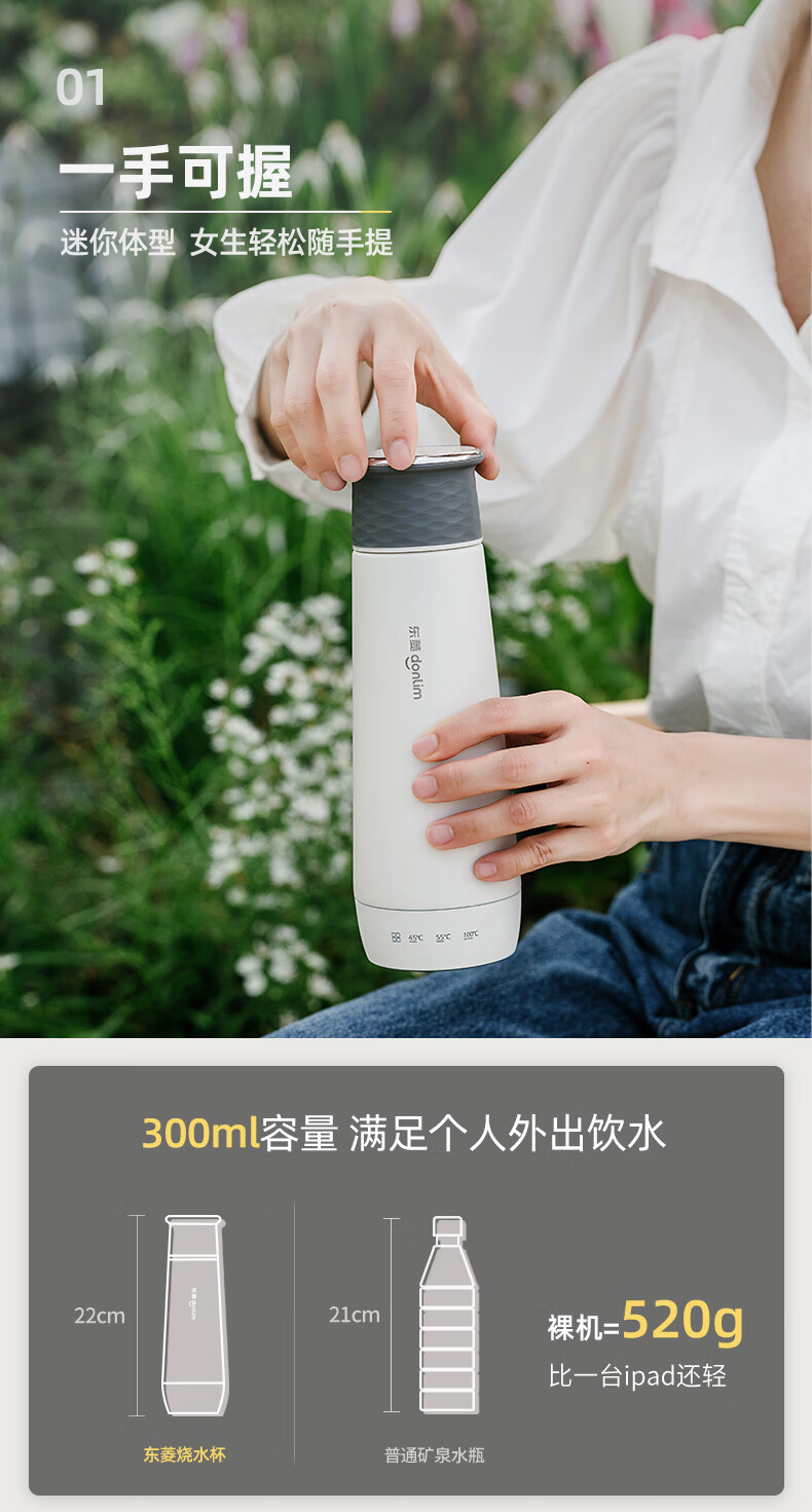 东菱 DL-B1 电水壶 便携式烧水壶 电热水杯家用 旅行烧水杯 小型冲奶防烫办公室养生保温杯(tz)
