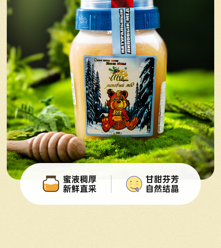 俄罗斯冬熊椴树蜜500g/033729 原蜜结晶甘甜芬芳