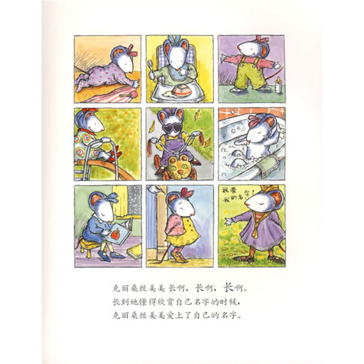 《信谊世界精选图画书:我的名字克丽桑丝美美菊花》这本书讲述了爸爸妈妈为新生的小宝宝取了一个名字叫克丽桑丝美美(Chrysanthemum),在爸爸妈妈心里,这是个完美的名字,就像他们完美的小宝贝。克丽桑丝美美一天天长大,她喜欢这个名字,也认为自己的名字是*完美的,直到她开始上学……克丽桑丝美美这个名字太长,又是个花的名字,所以老是被嘲笑;她好难过、好难过,甚至觉得自己的名字糟透了。还好经过父母安慰与音乐老师的大大肯定,克丽桑丝美美才又开心的接纳自己的与众不同。《我的名字克丽桑丝美美菊花(精)》以老鼠为主角,作者透过这些拟人化的老鼠去描绘小孩子在家庭、学校的生活情境,对于捕捉小孩子的内在情绪,深刻而动人,而对于孩子成长过程中,父母、老师所扮演的角色,更提供深切的思考与反省。