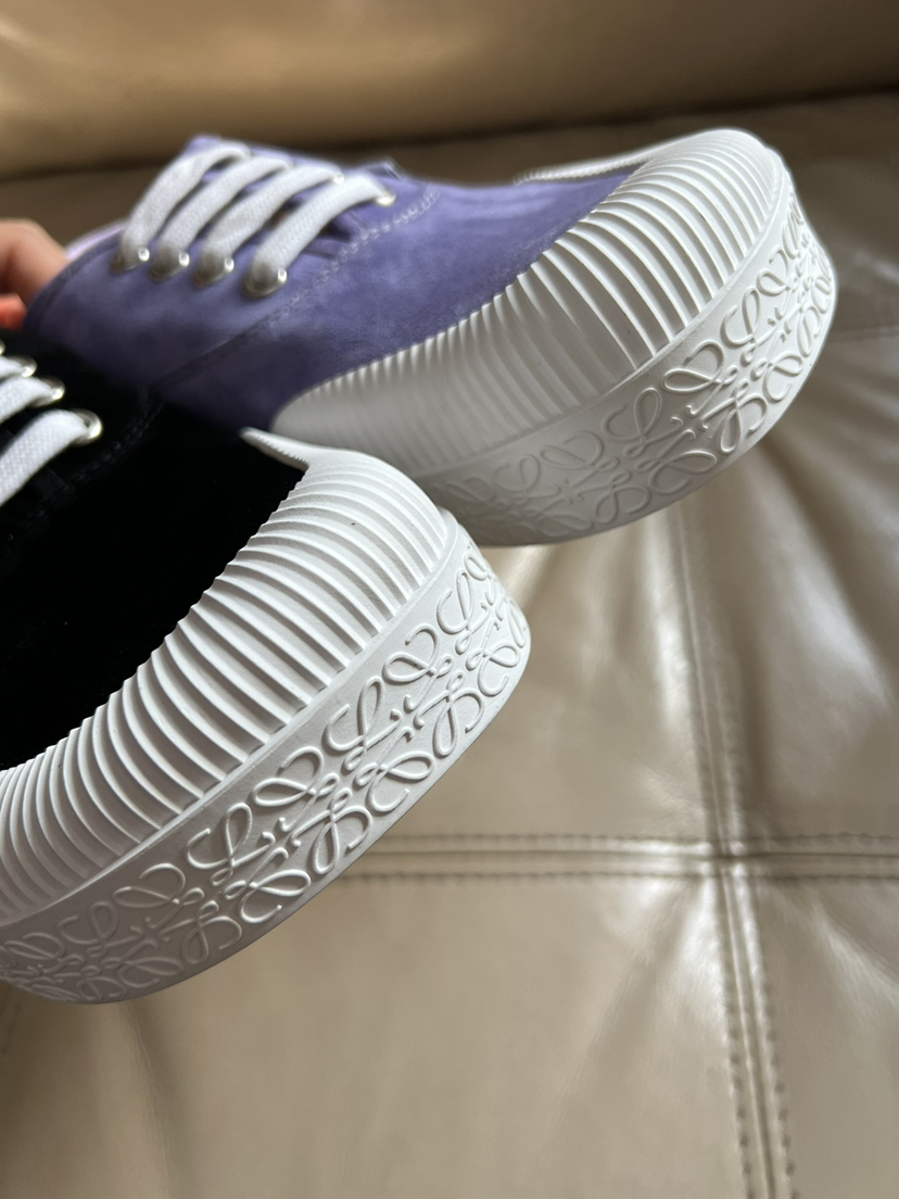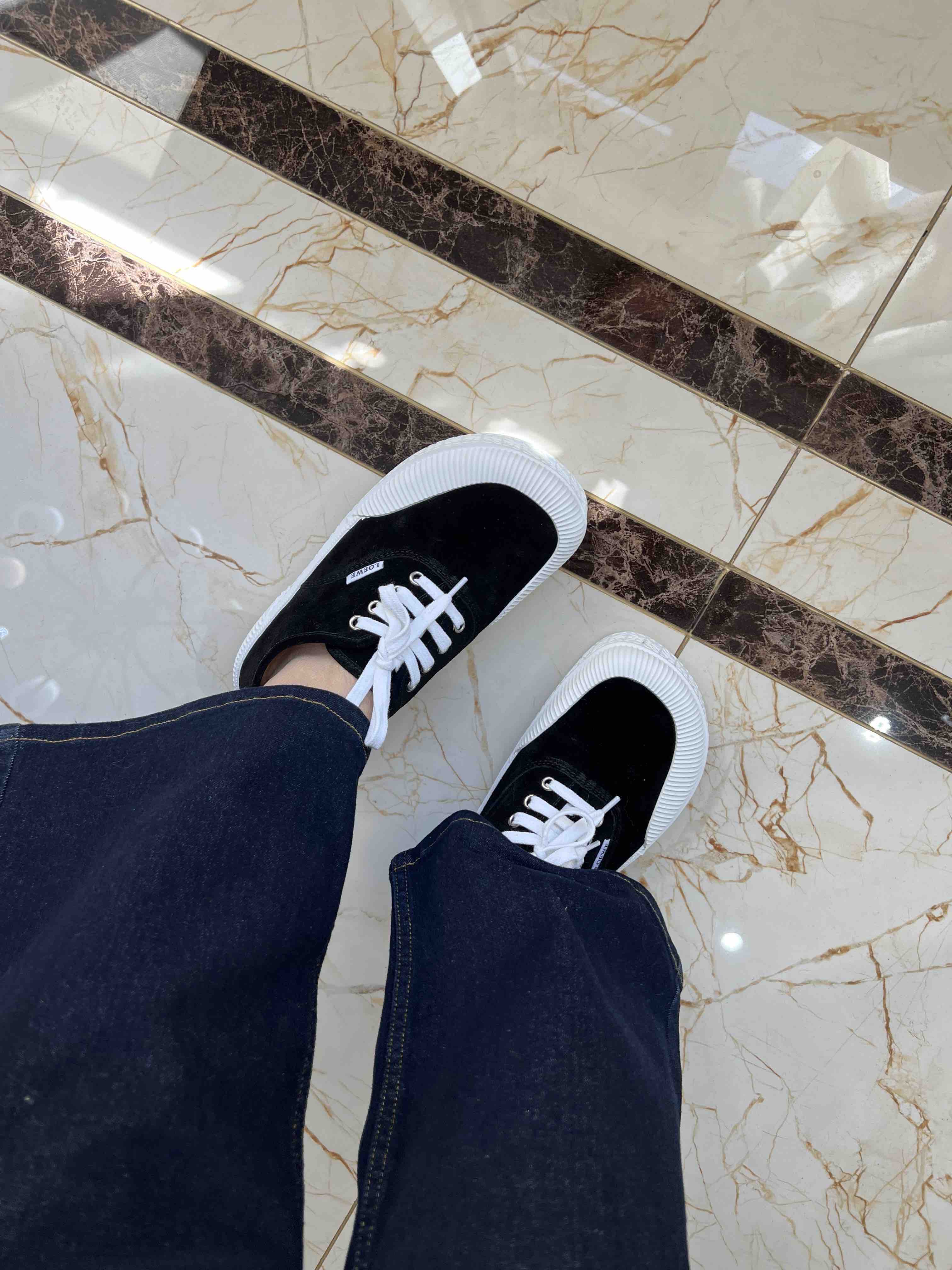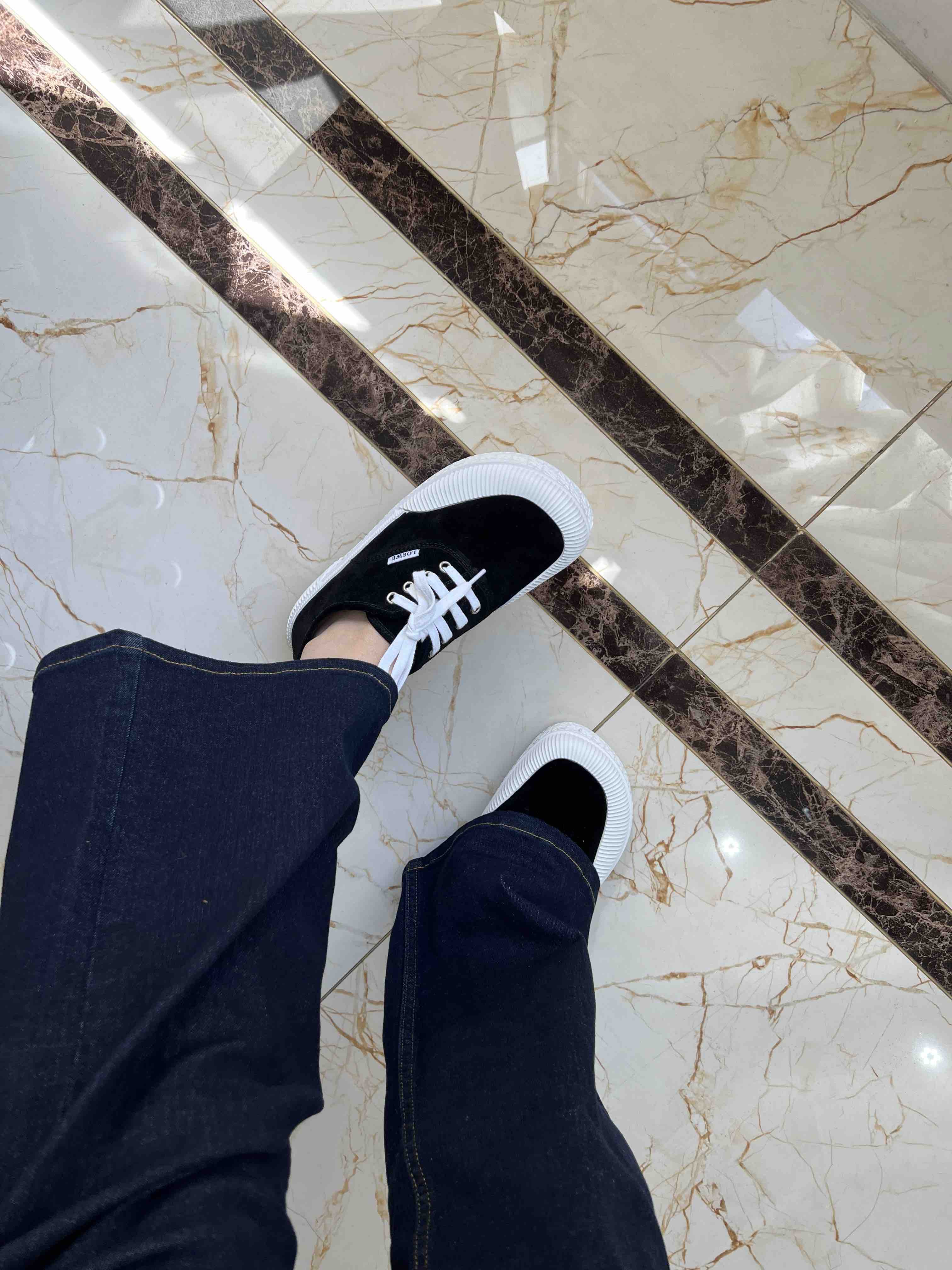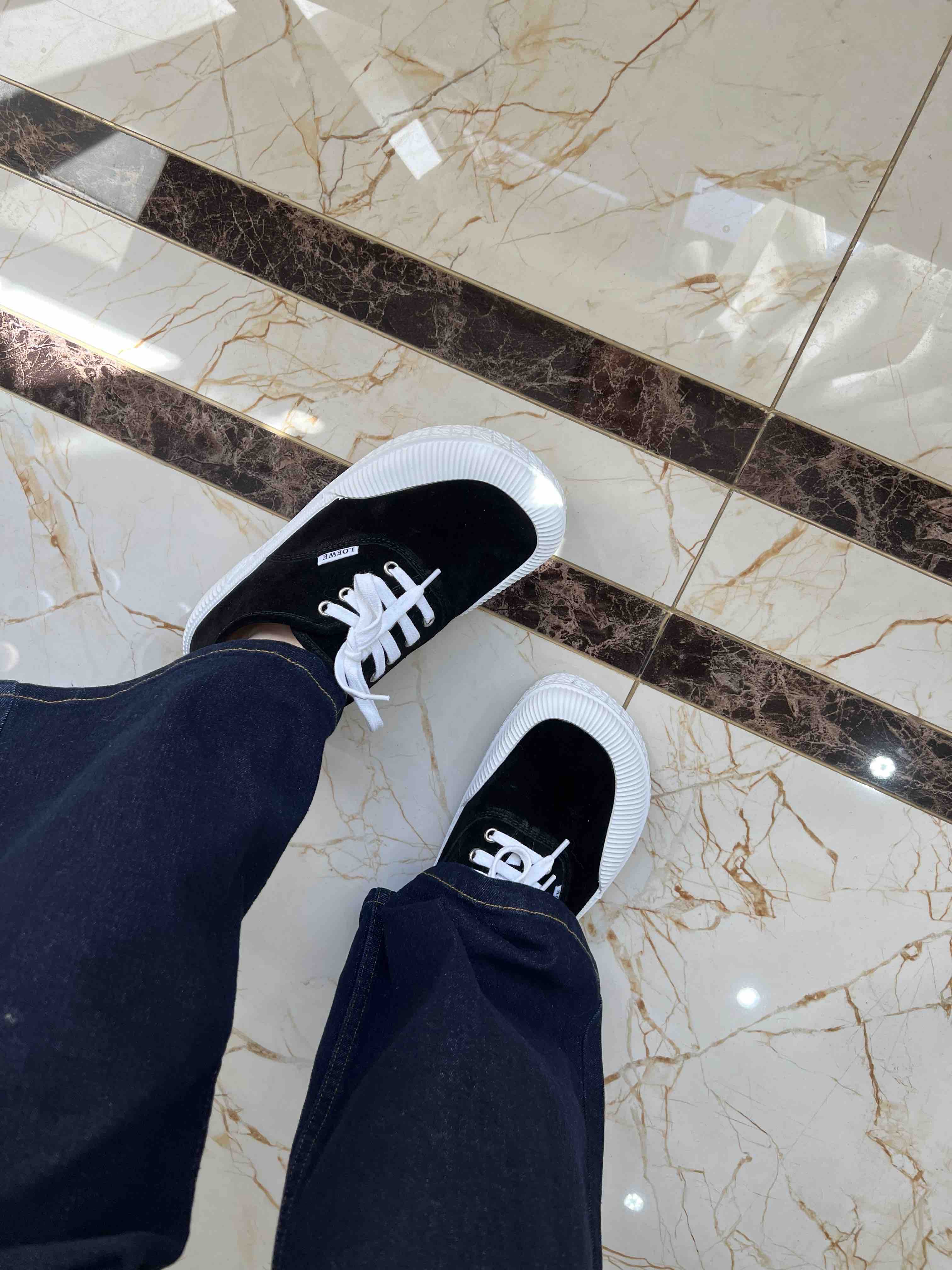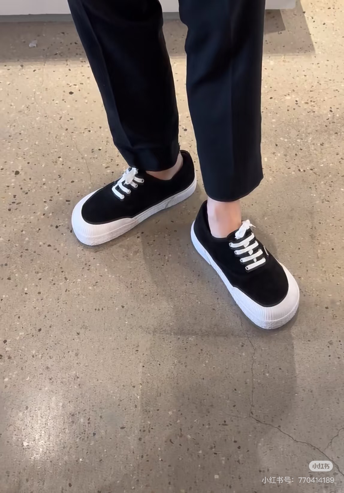 一体硫化工艺,咱们熟悉的什么vans之类的呀,都是胶粘鞋哈。实则经过高温硫化罐,布面是不容易变形,若想牛反绒不变形,对原本牛反绒的材质和工艺都是狠考究的。跟高呢2.5cm,轻便跟脚好走,鞋头还能防踢
