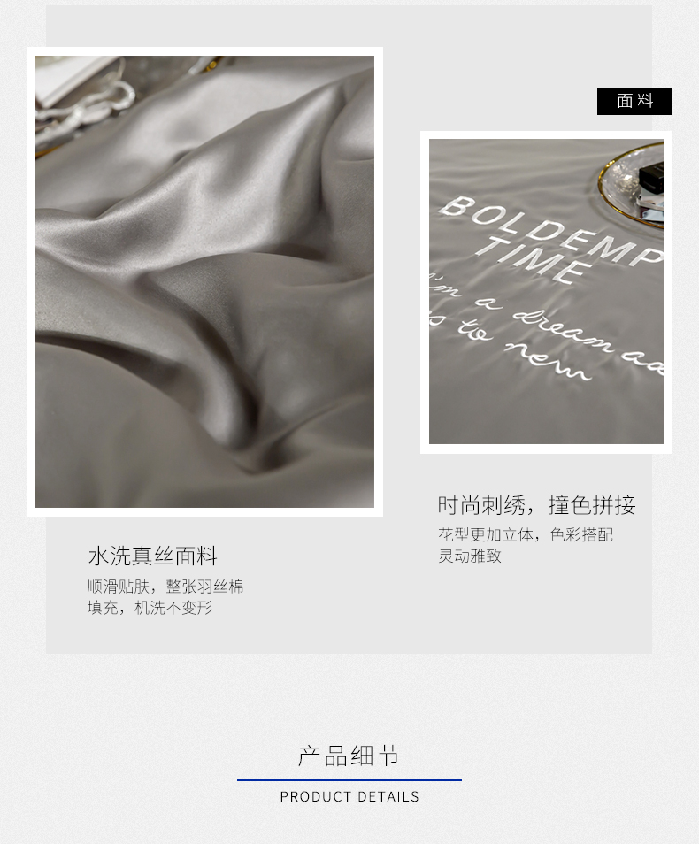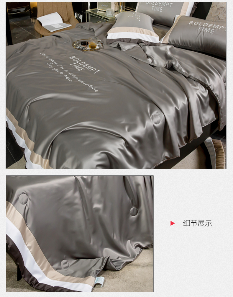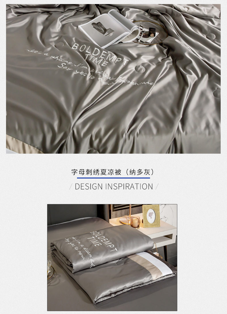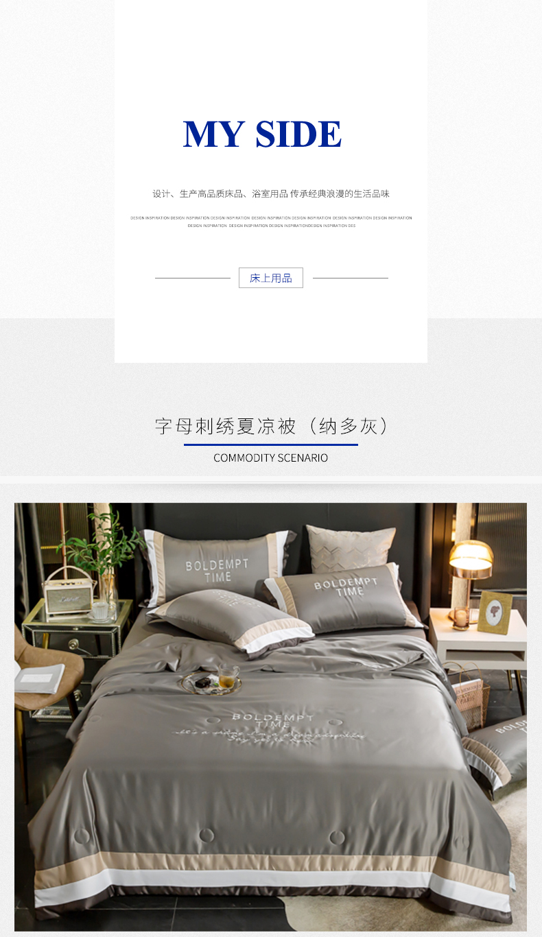 2020夏季新品 刺绣水洗真丝 拼接撞色吸湿透气夏凉被 活性印染可机洗 字母刺绣夏凉被(纳多灰) MY SIDE