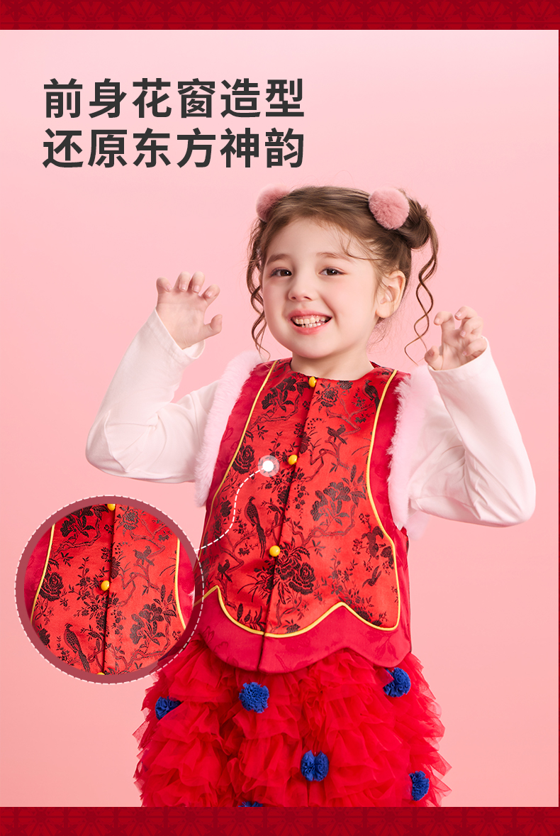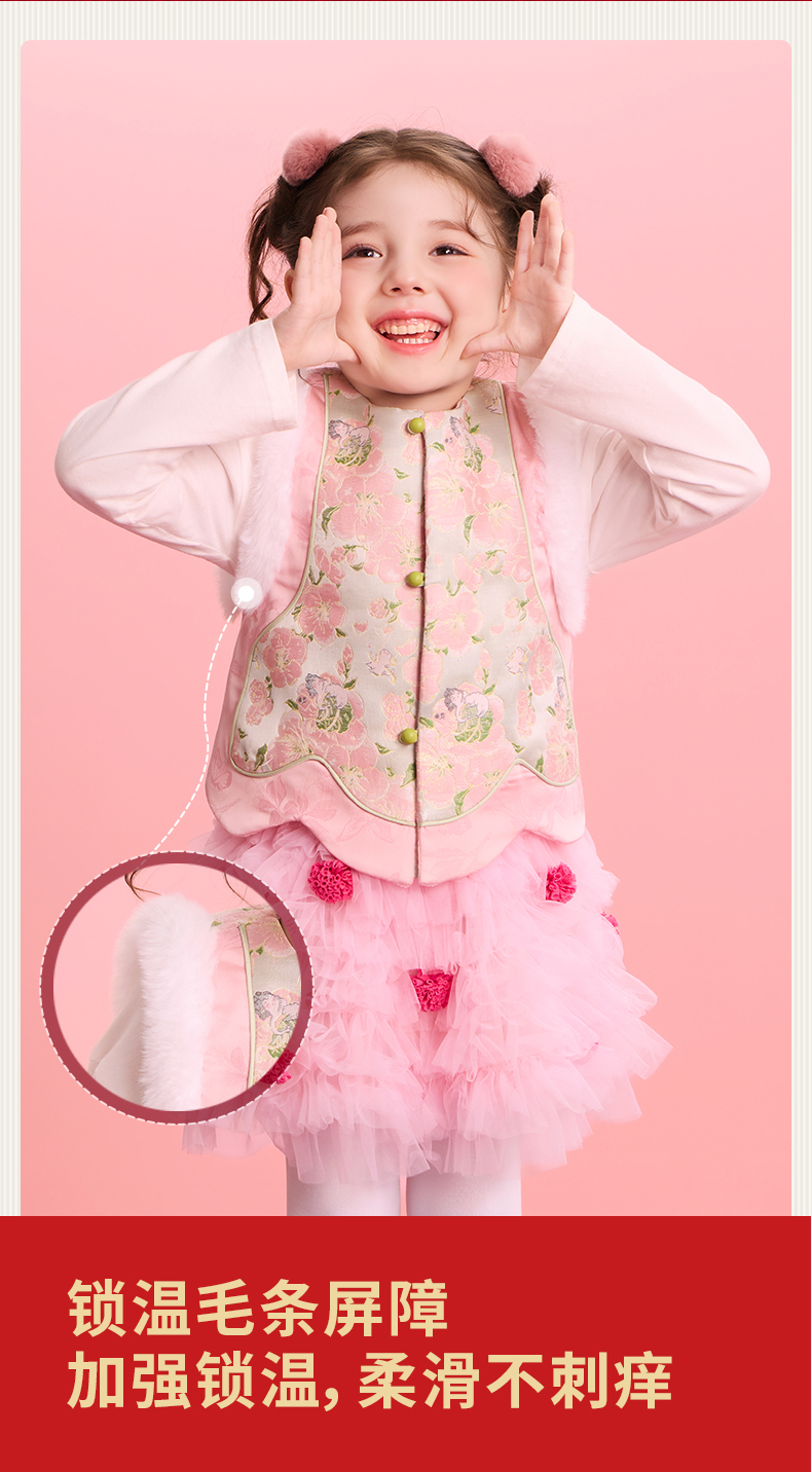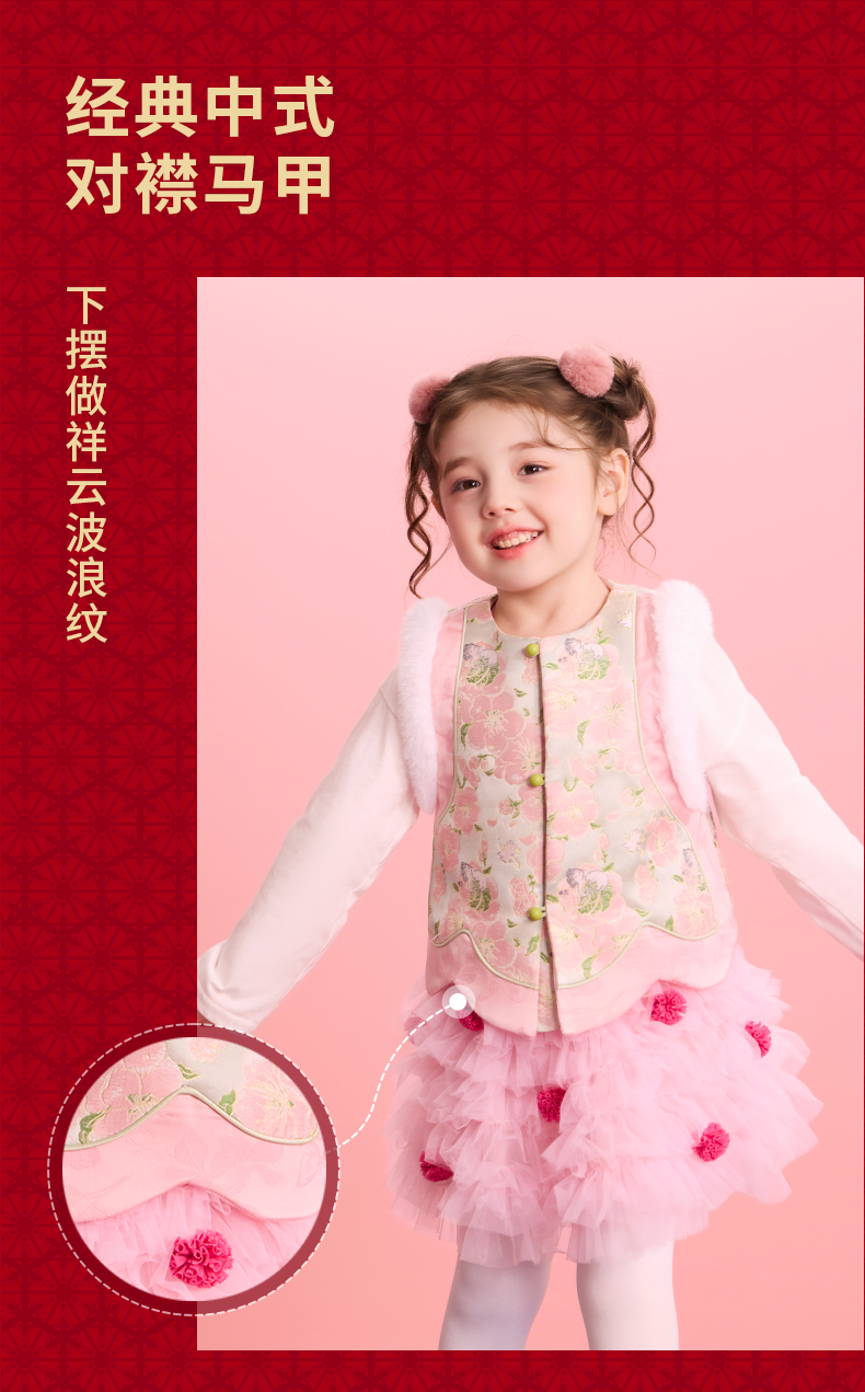 年衣童装儿童中式马甲冬季新品女童唐装上衣加绒华年小景中式马甲