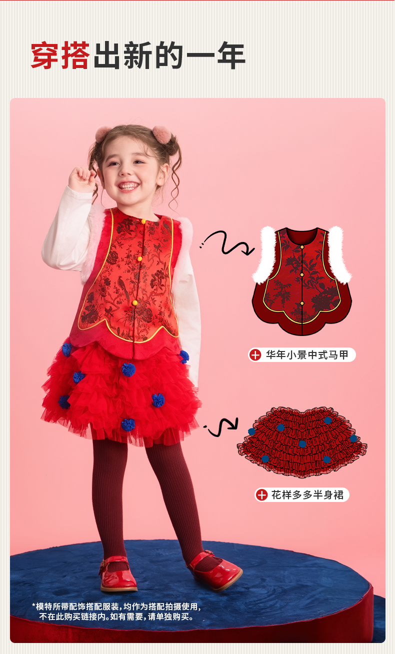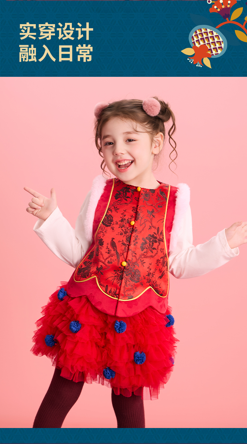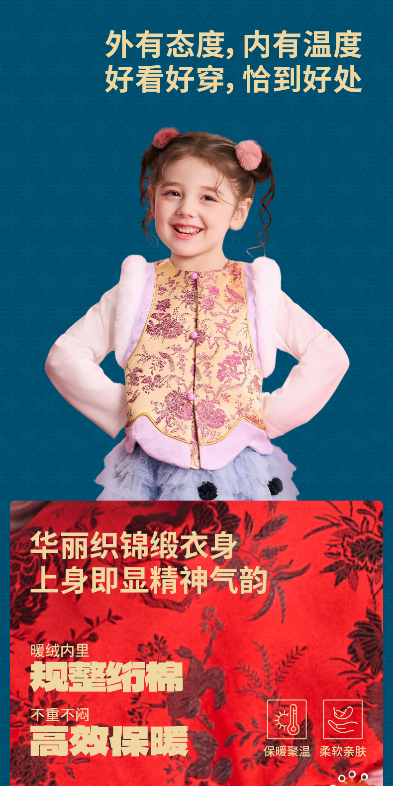 年衣童装儿童中式马甲冬季新品女童唐装上衣加绒华年小景中式马甲