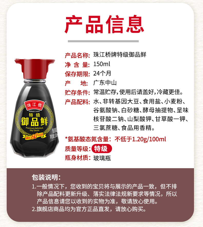 珠江桥牌 特级御品鲜酱油 150mlX4瓶