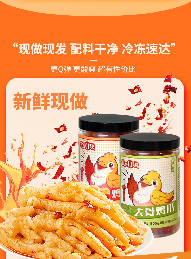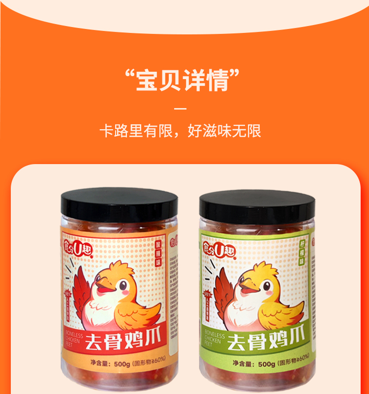 食分U趣去骨鸡爪 追剧·夜宵全家爱 酸辣入味 500g* 2罐装