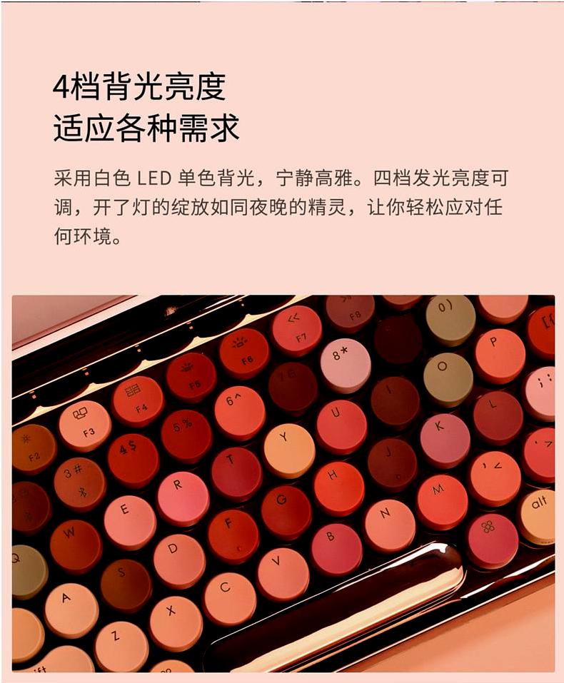 LOFREE/洛斐 DOT圆点复古 蓝牙机械键盘 绽放 口红 玫瑰金限定版