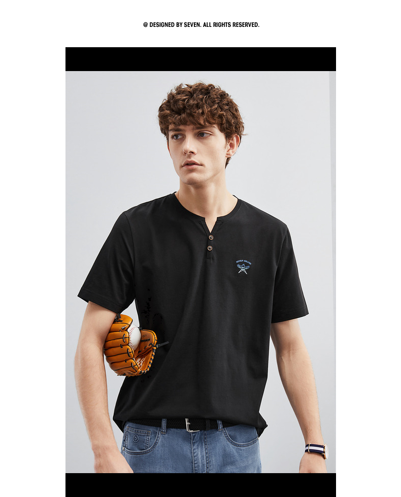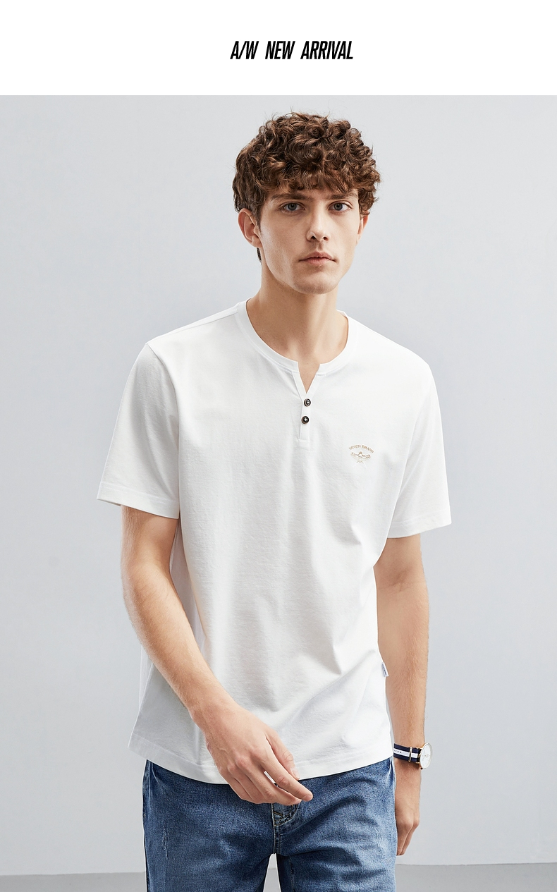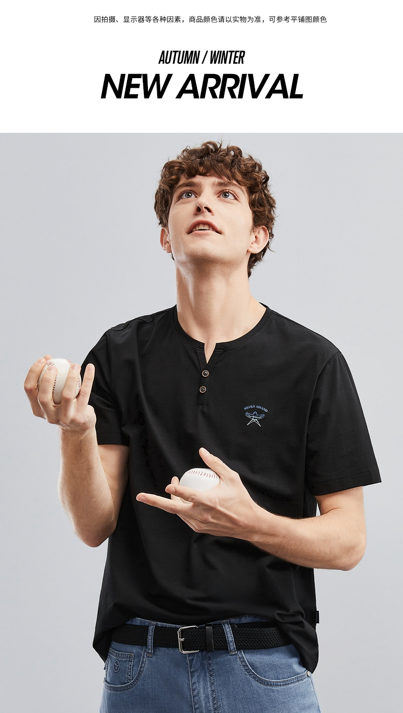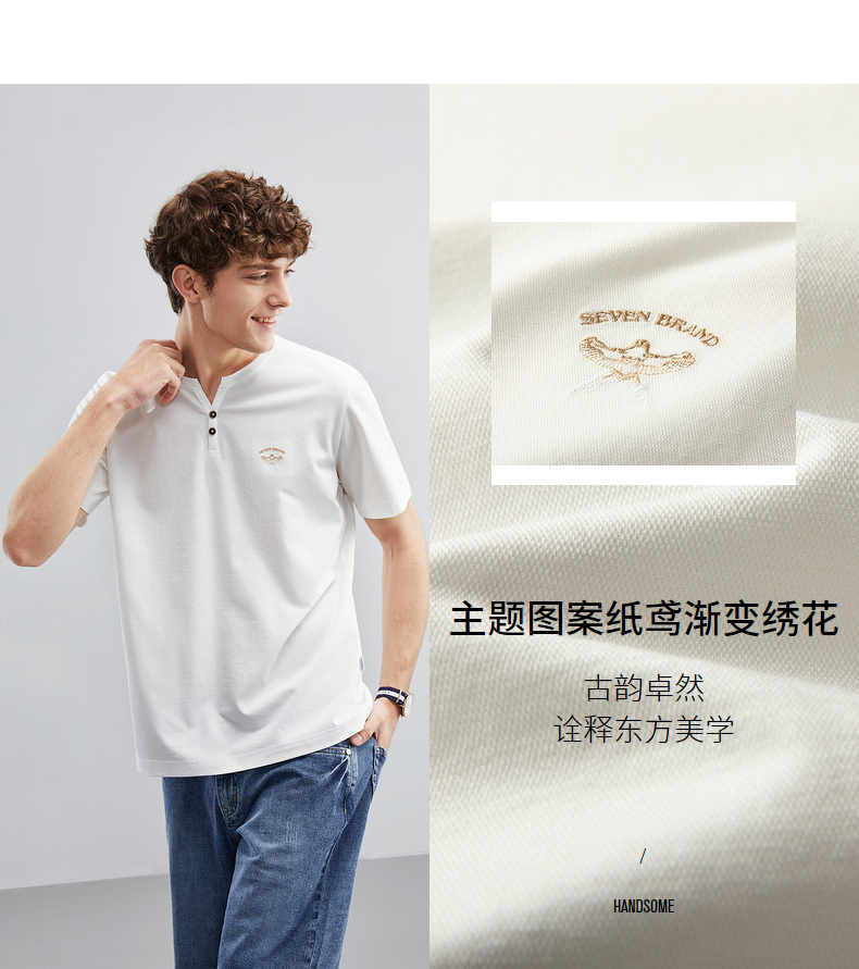 【特价】柒牌短袖t恤男夏季新品时尚青年休闲百搭纸鸢风筝半开襟套头上衣 124T71860