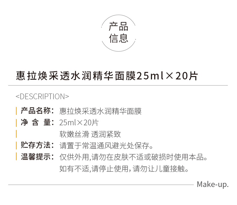 惠拉焕采透水润精华面膜25ml×20片(241059)