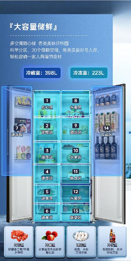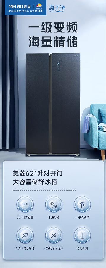 广电优选 美菱BCD-621WPBX 621升双开门电冰箱一级能效