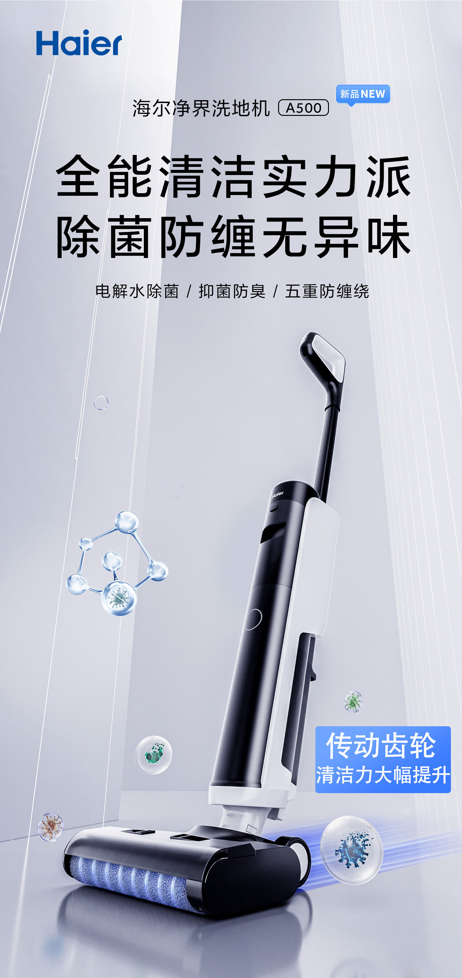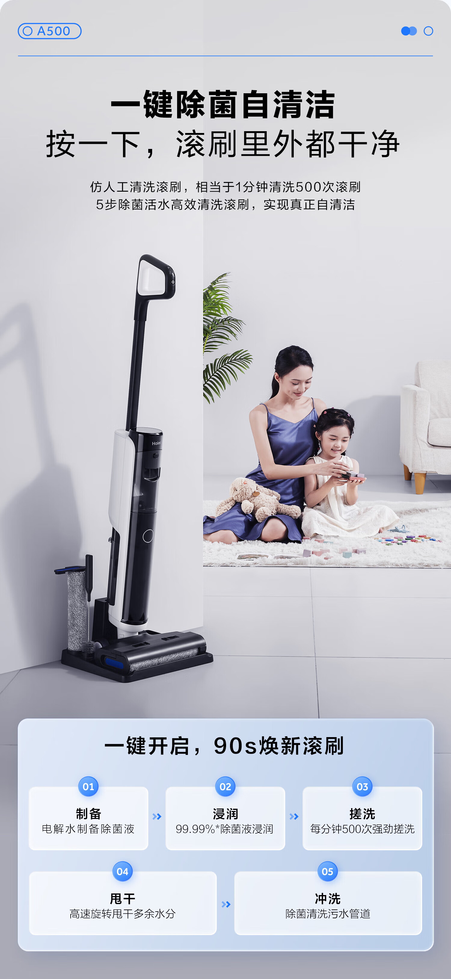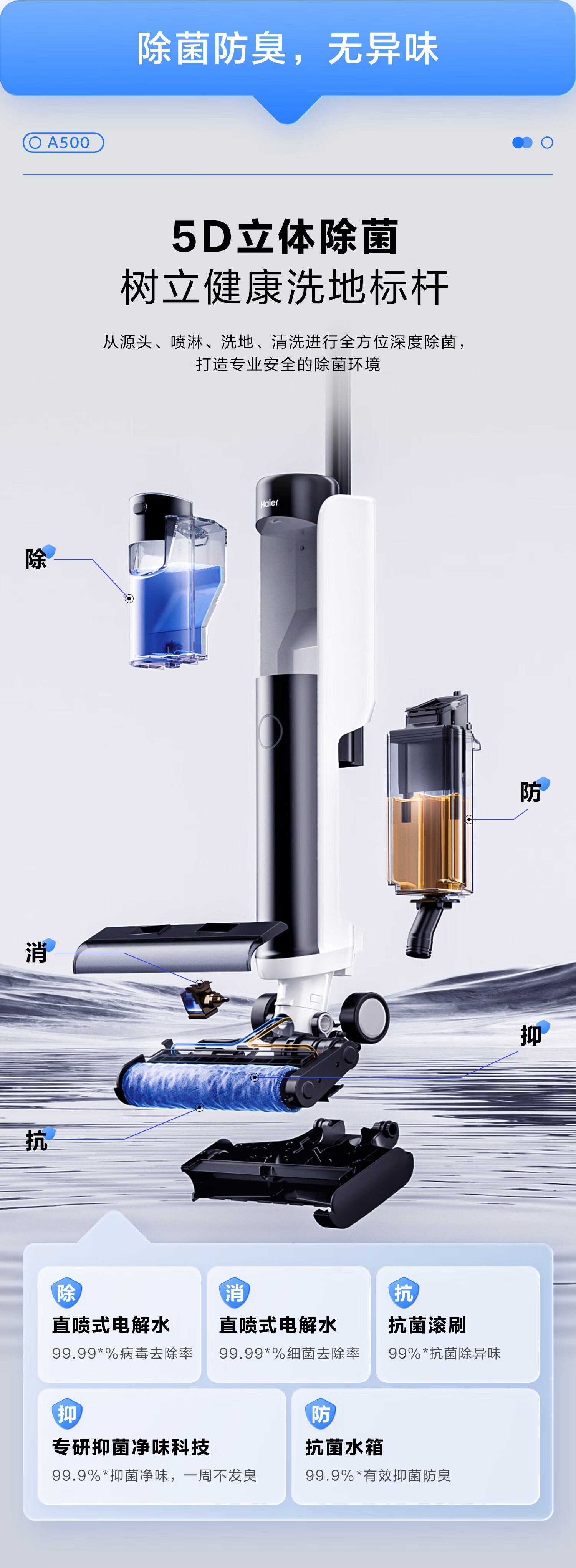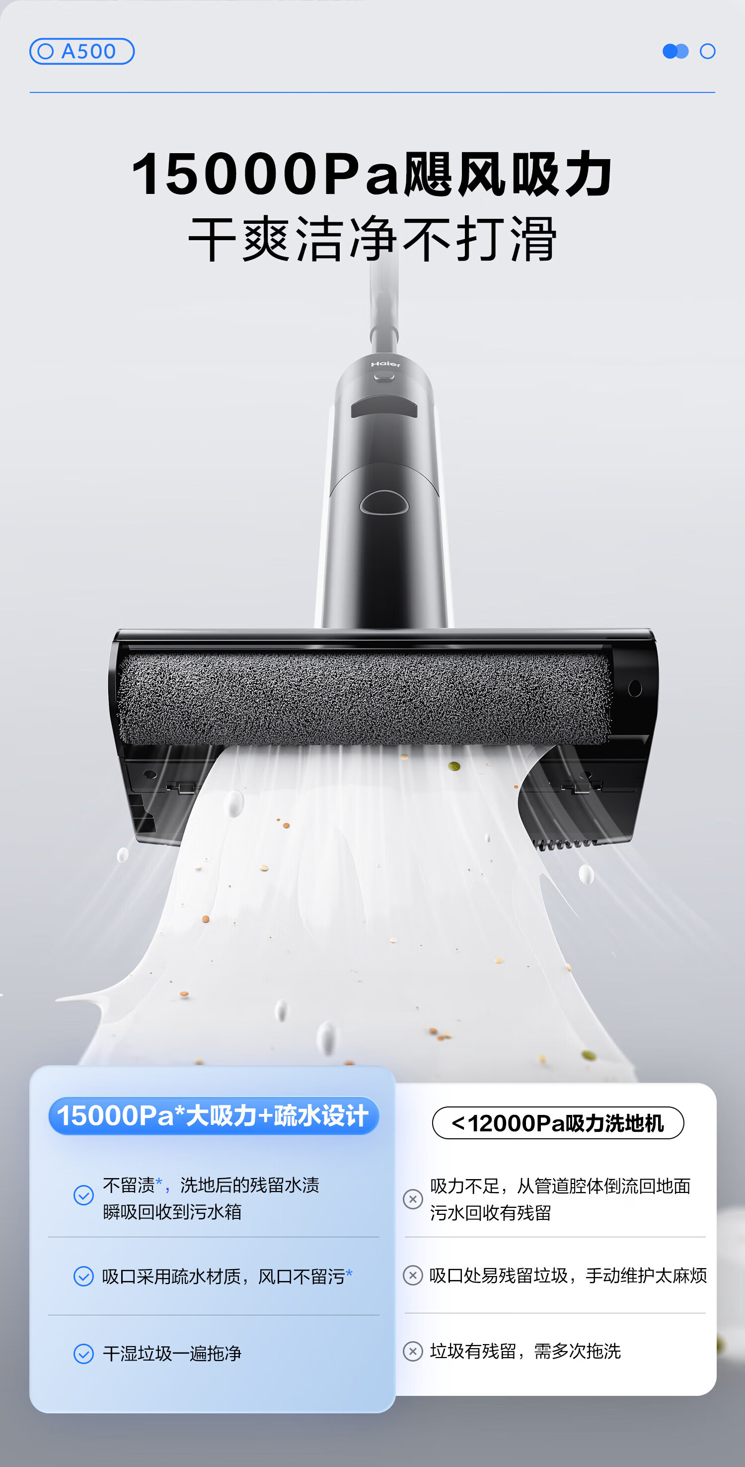 海尔家用洗地机 全链除菌 六重毛发防缠 自动清洗全自动拖地机 无线智能吸洗拖一体扫地机器人吸尘器 【24年升级】A500全链除菌+传动齿轮