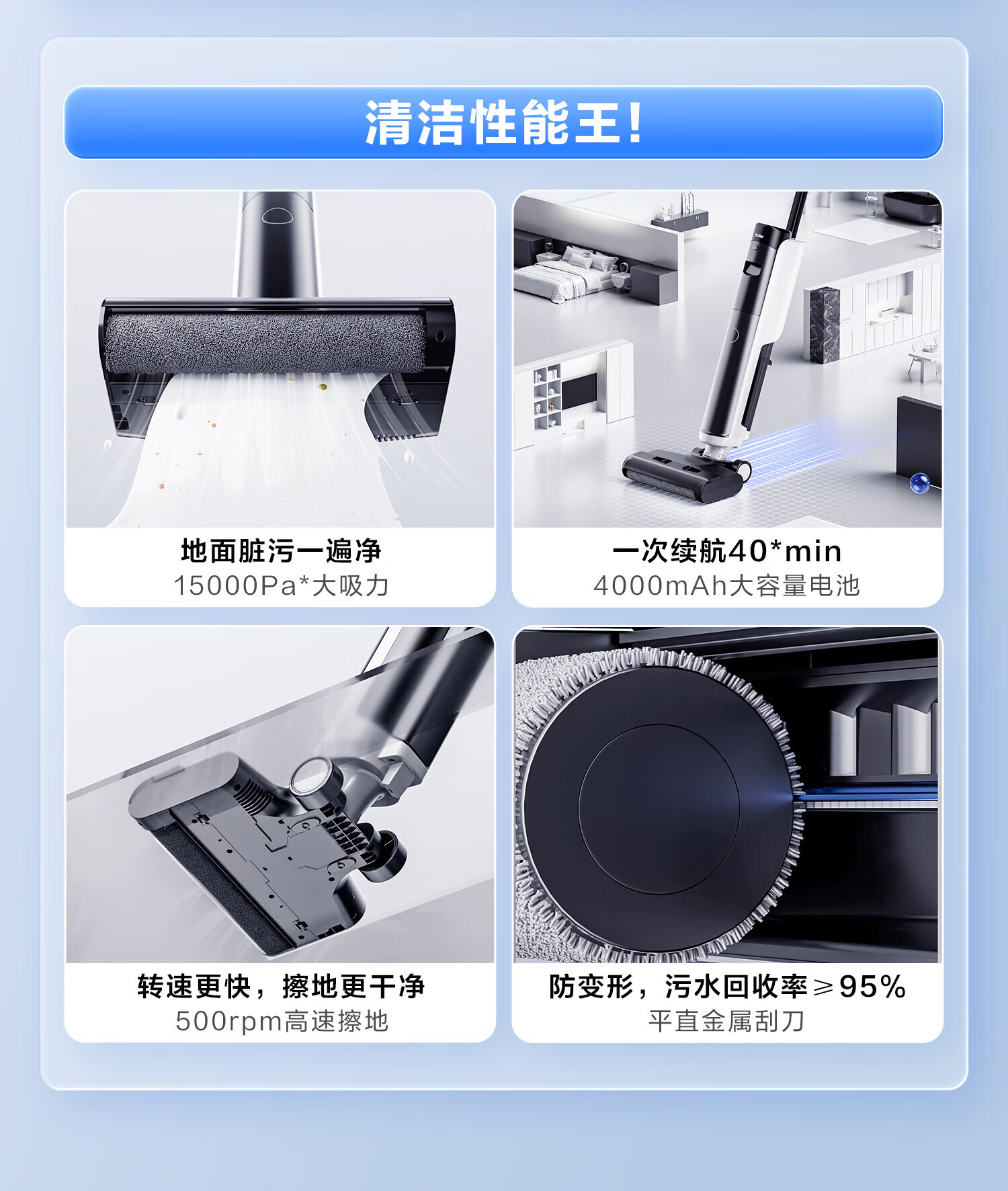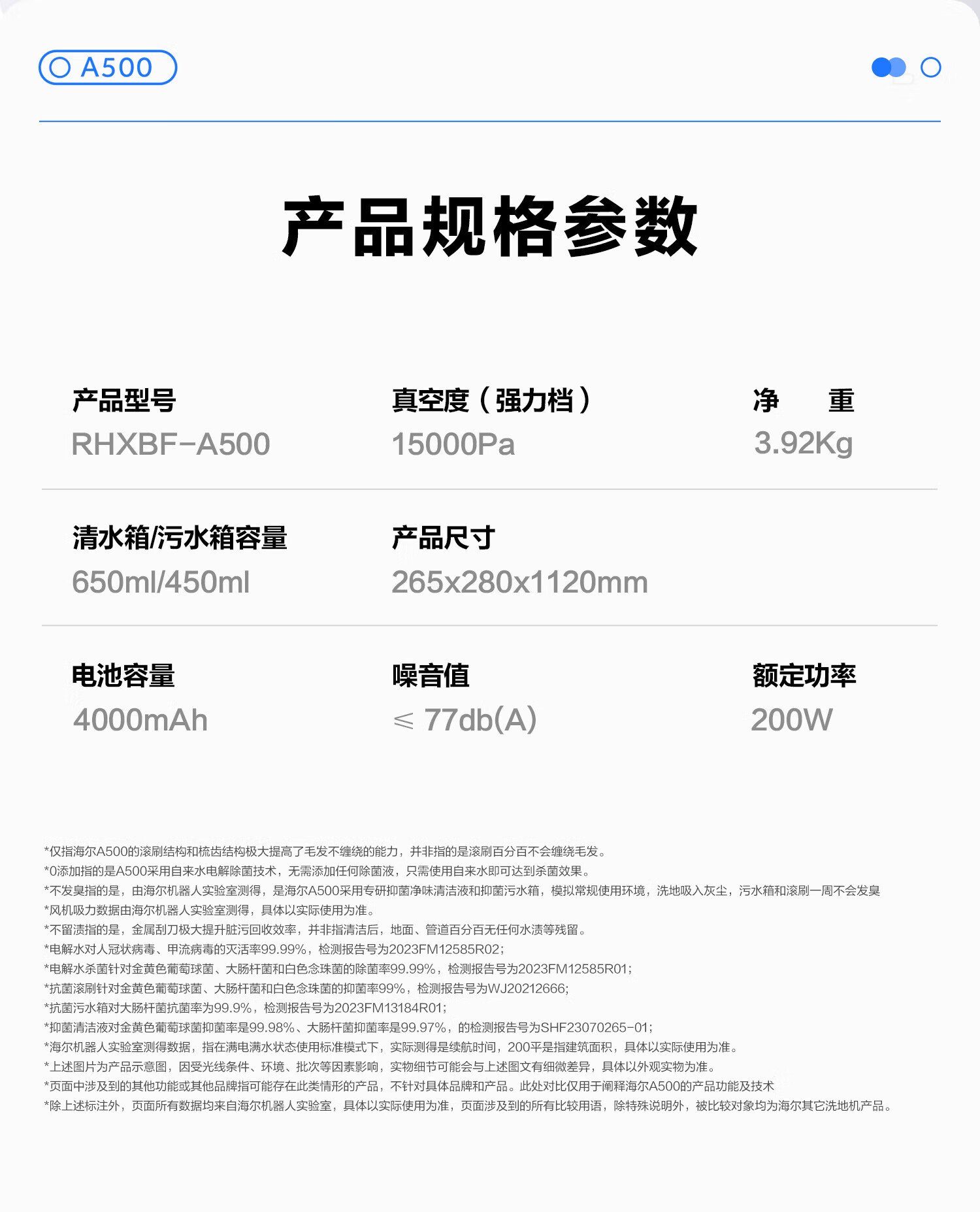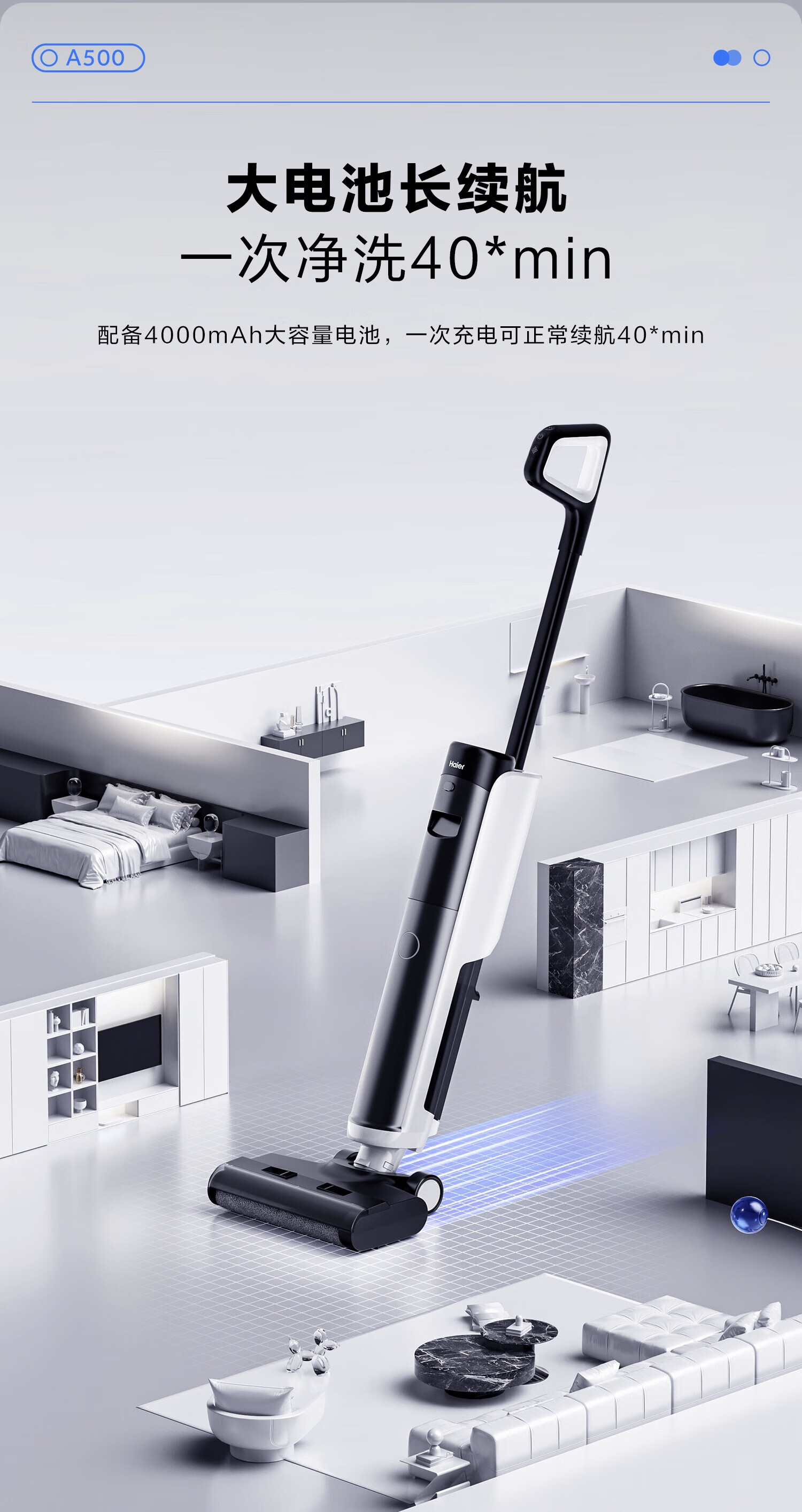 海尔家用洗地机 全链除菌 六重毛发防缠 自动清洗全自动拖地机 无线智能吸洗拖一体扫地机器人吸尘器 【24年升级】A500全链除菌+传动齿轮