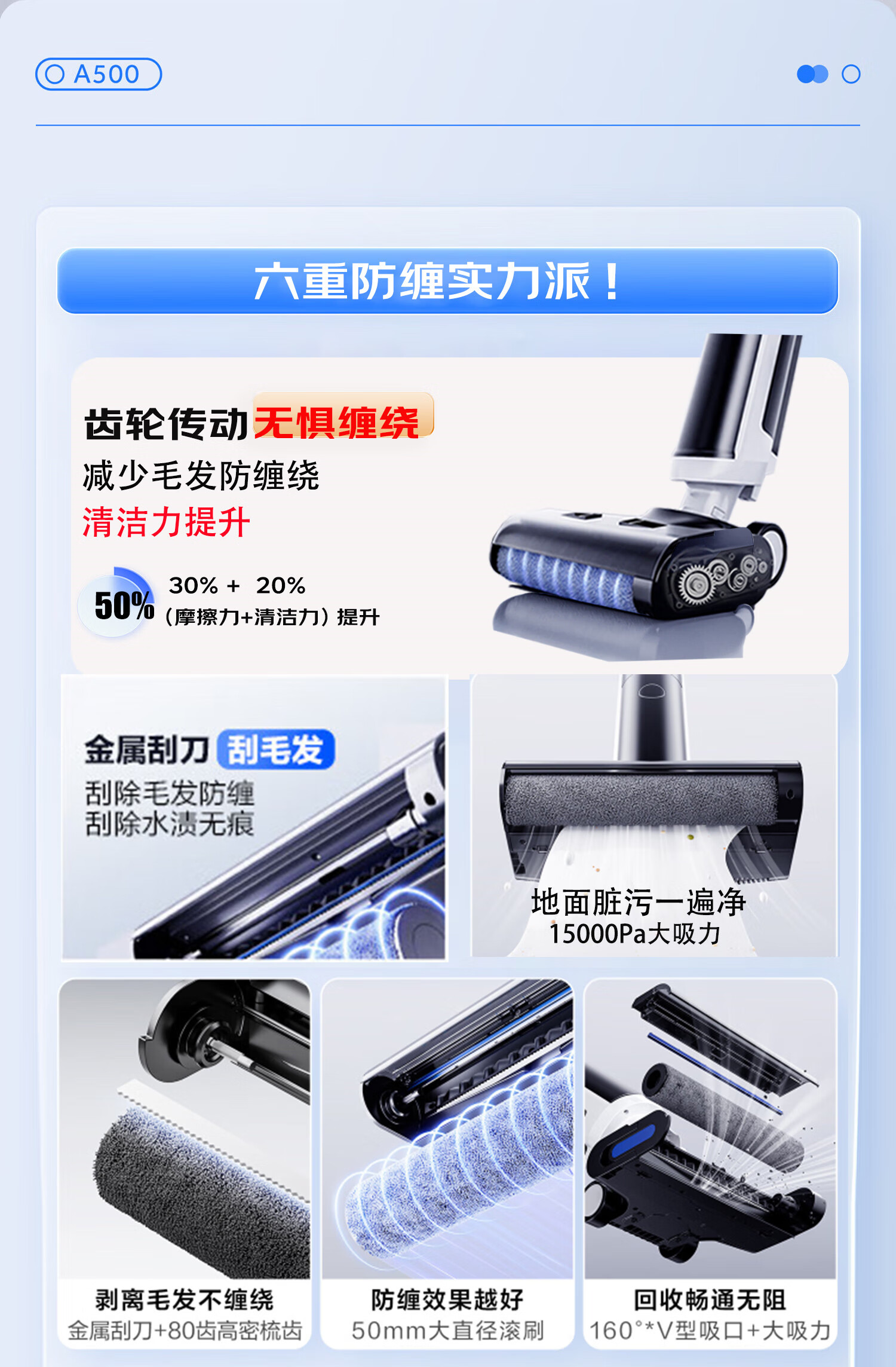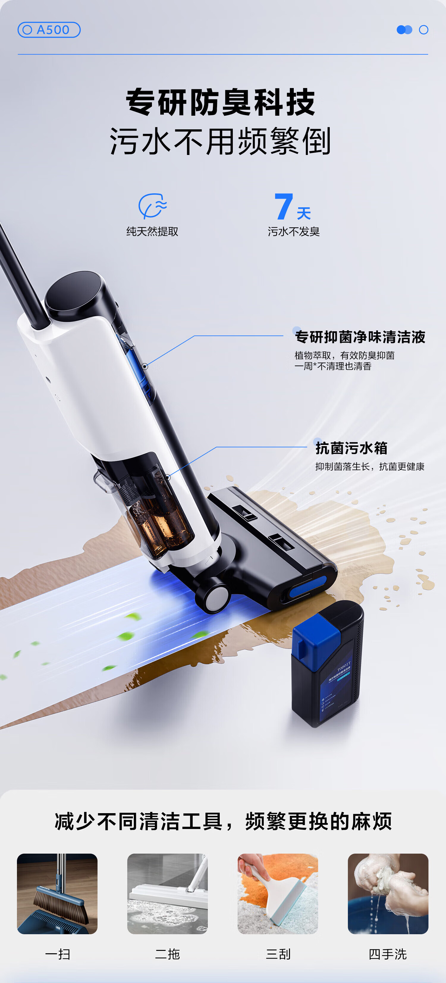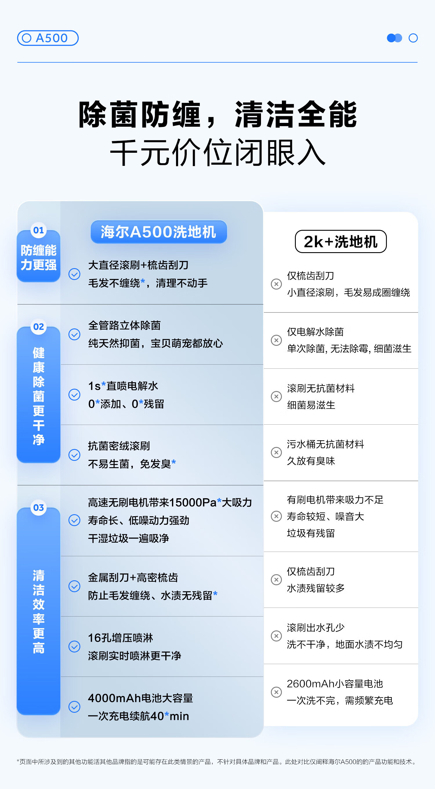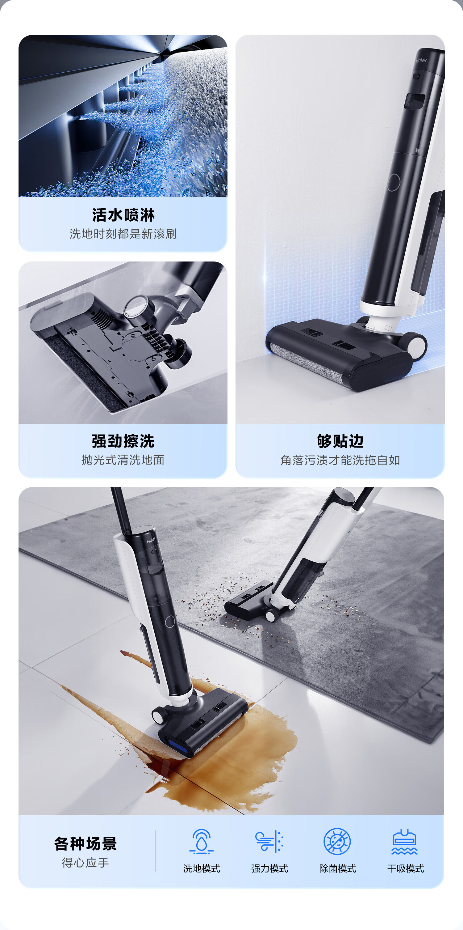海尔家用洗地机 全链除菌 六重毛发防缠 自动清洗全自动拖地机 无线智能吸洗拖一体扫地机器人吸尘器 【24年升级】A500全链除菌+传动齿轮