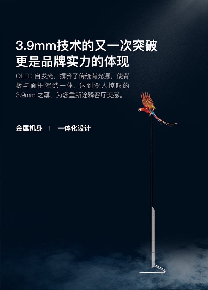 长虹 55D9P 55英寸电视 3.9mm超薄人工智能4K超清HDR智能OLED有机自发光电视机(银色)