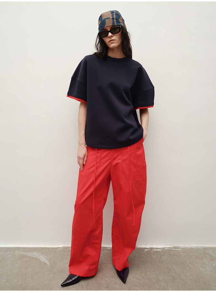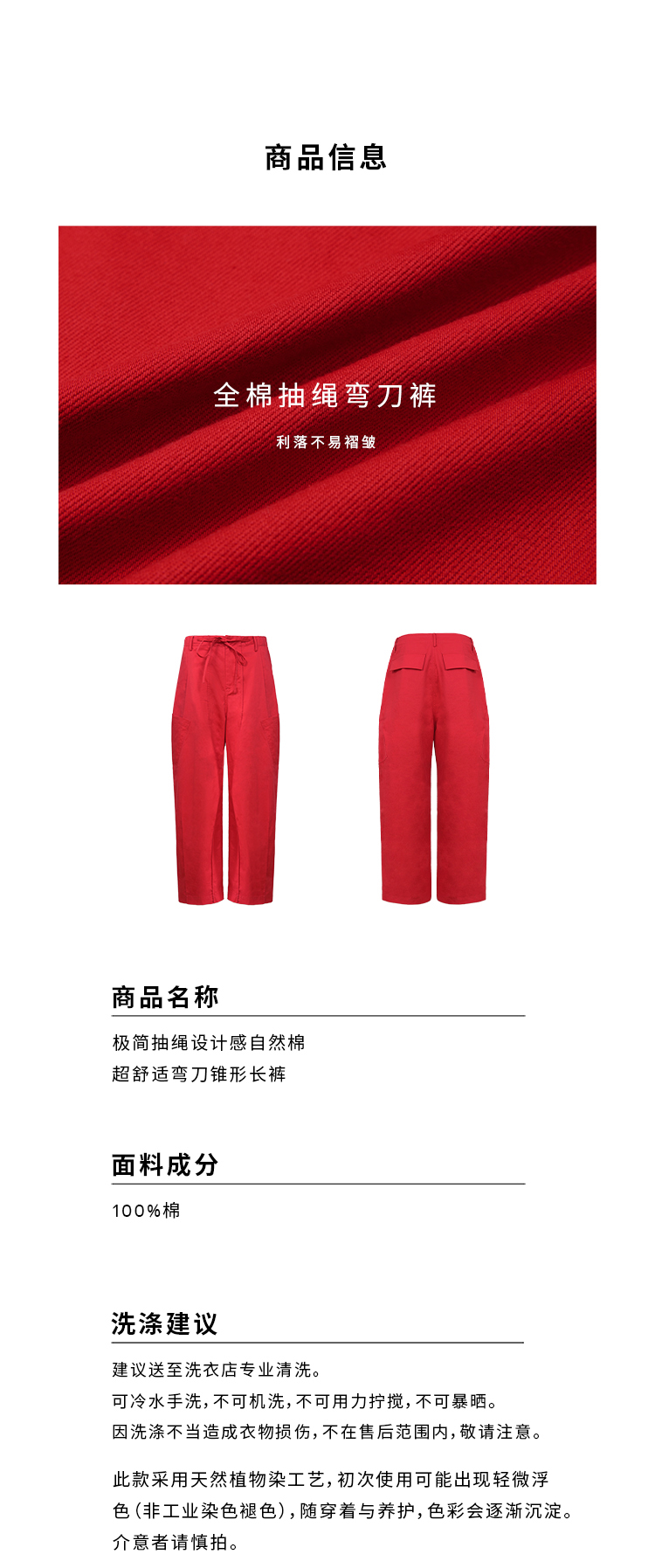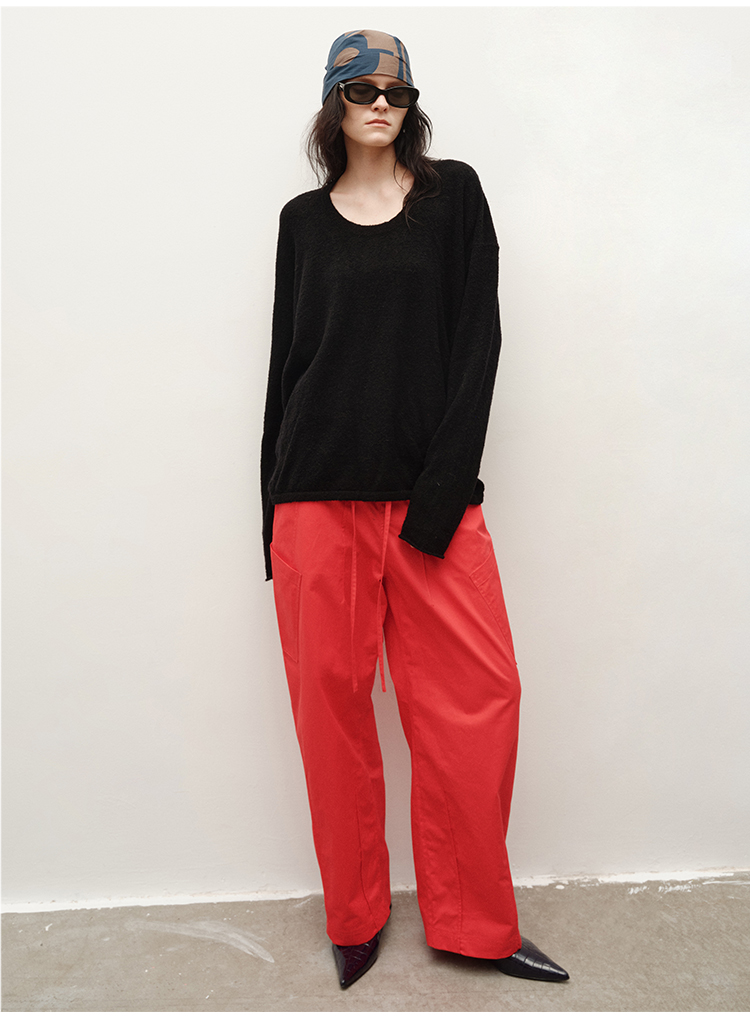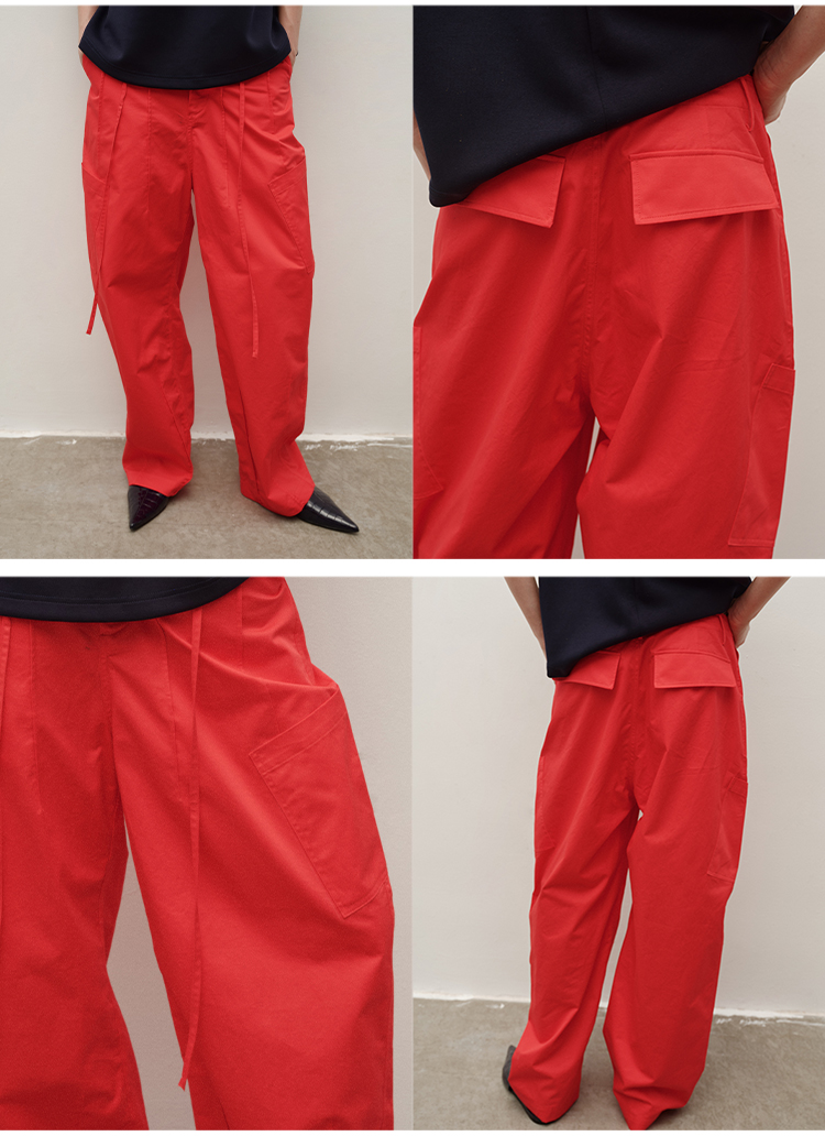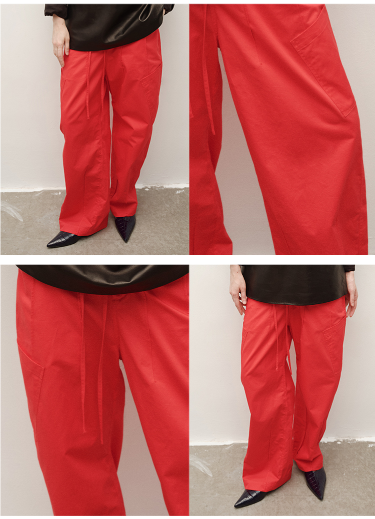 HIDEMI 极简抽绳设计感自然棉超舒适弯刀锥形长裤