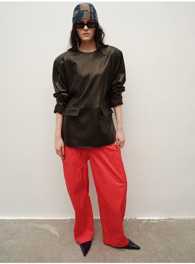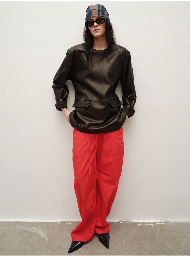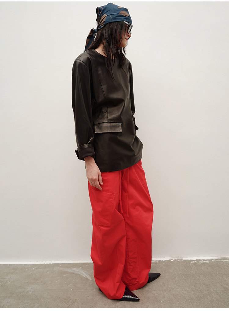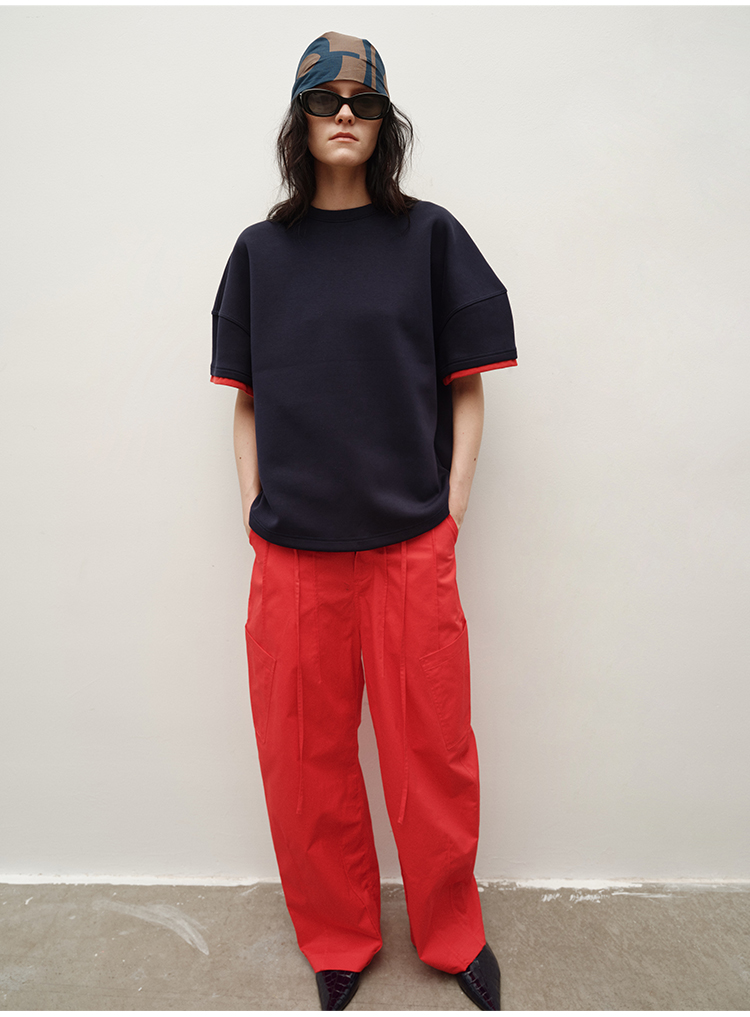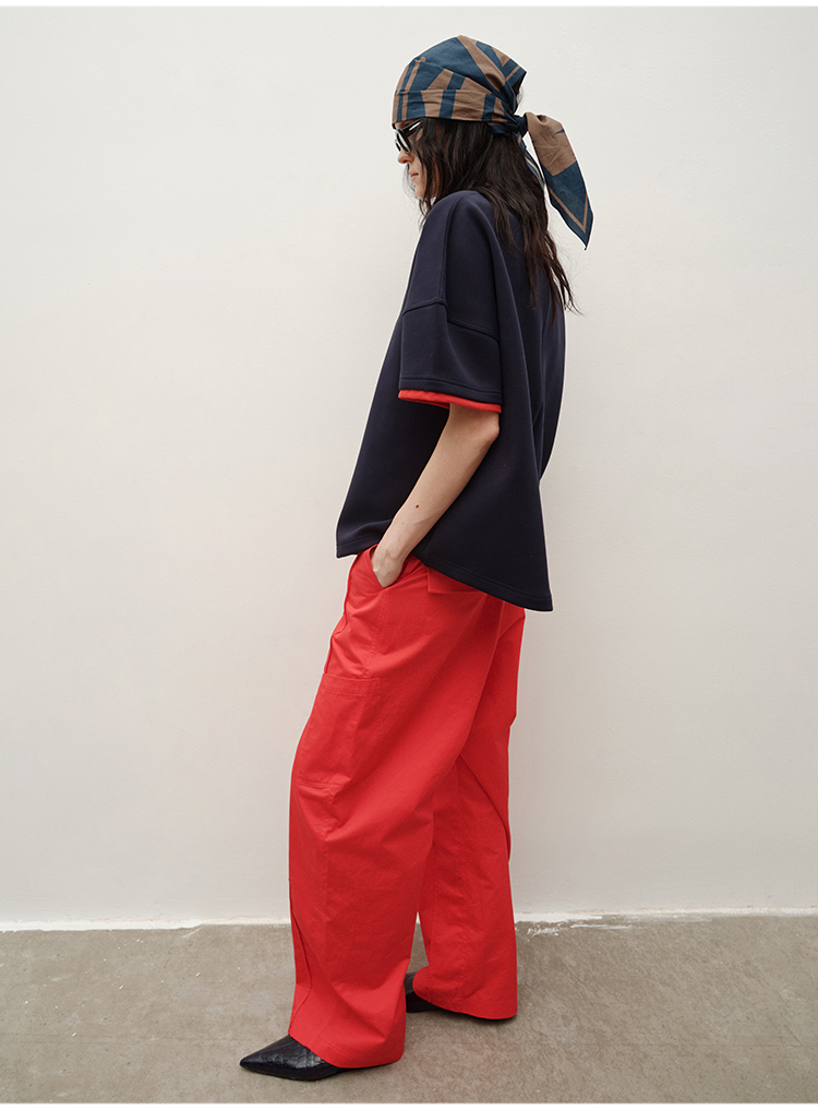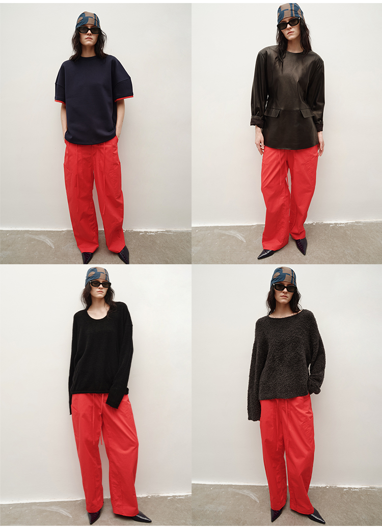 HIDEMI 极简抽绳设计感自然棉超舒适弯刀锥形长裤