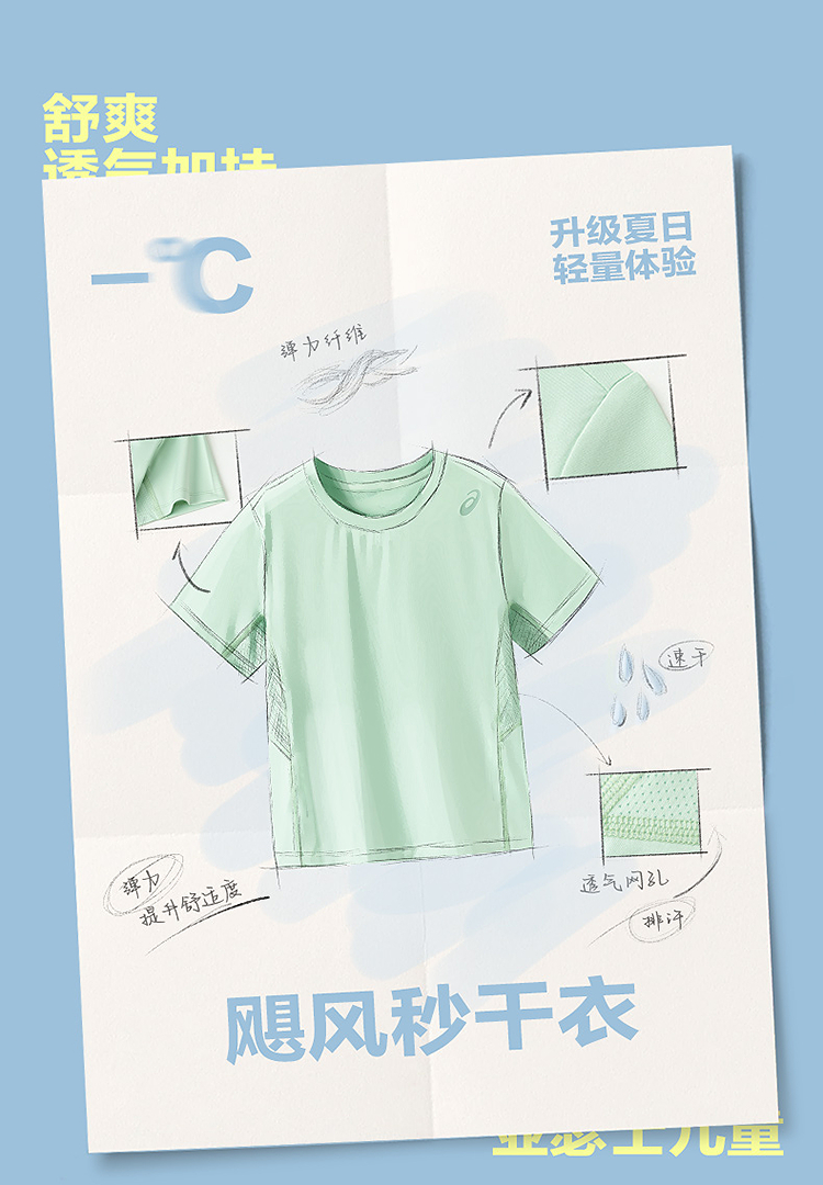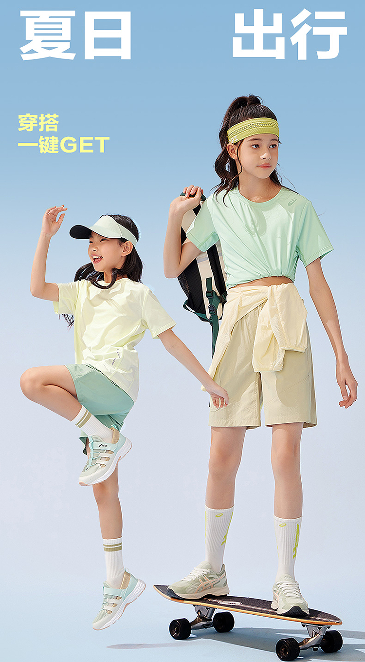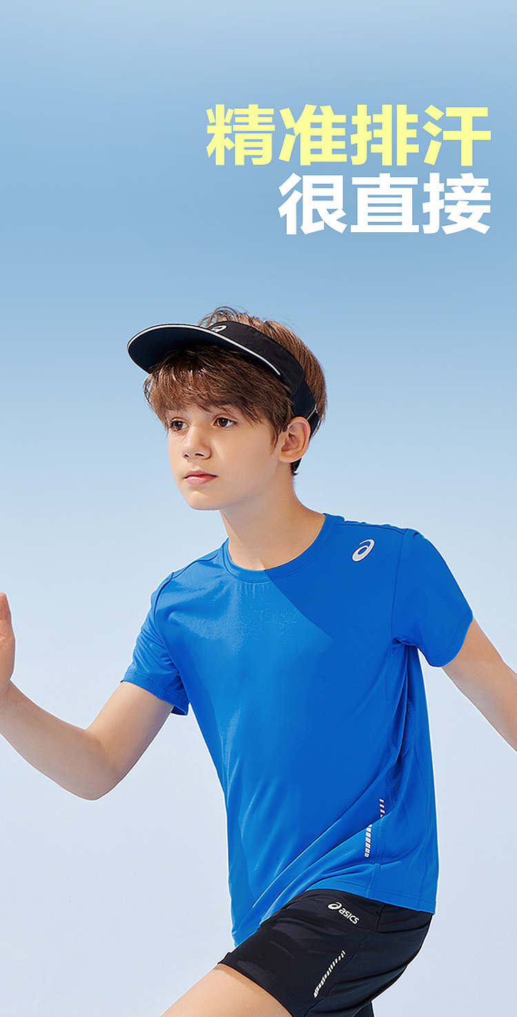 ASICS/亚瑟士童装25年夏季新款男女童运动吸湿短袖T恤飓风秒干衣