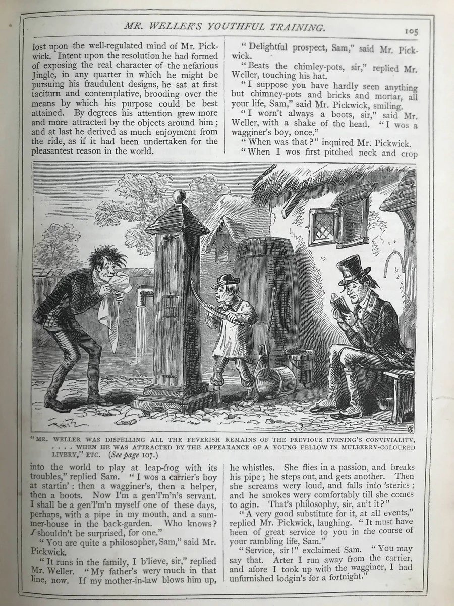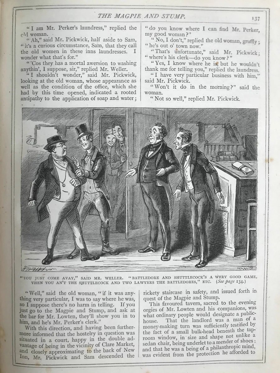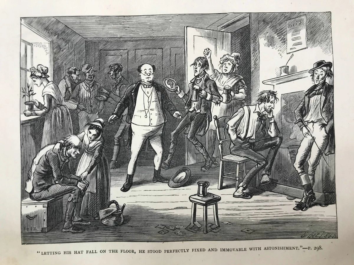 约19世纪后期 狄更斯《匹克威客俱乐部》 Phiz菲兹57幅插图 真皮精装16开