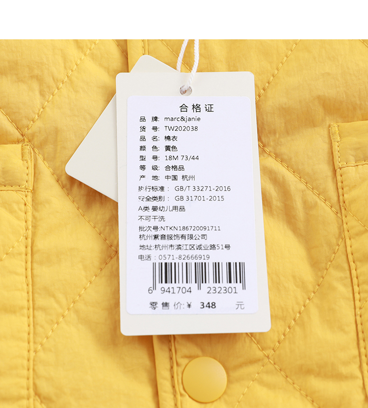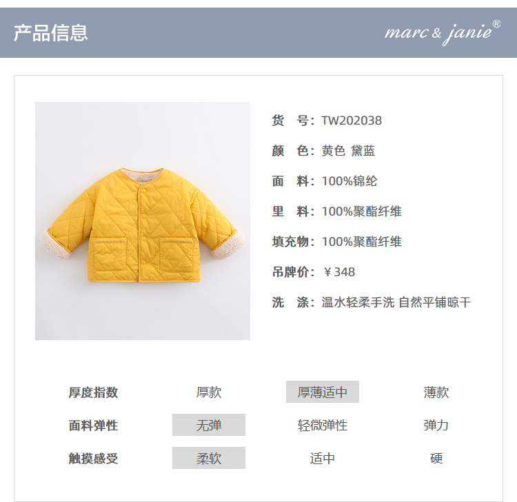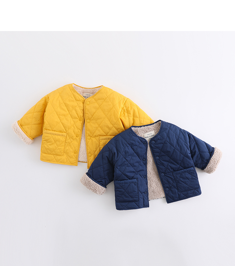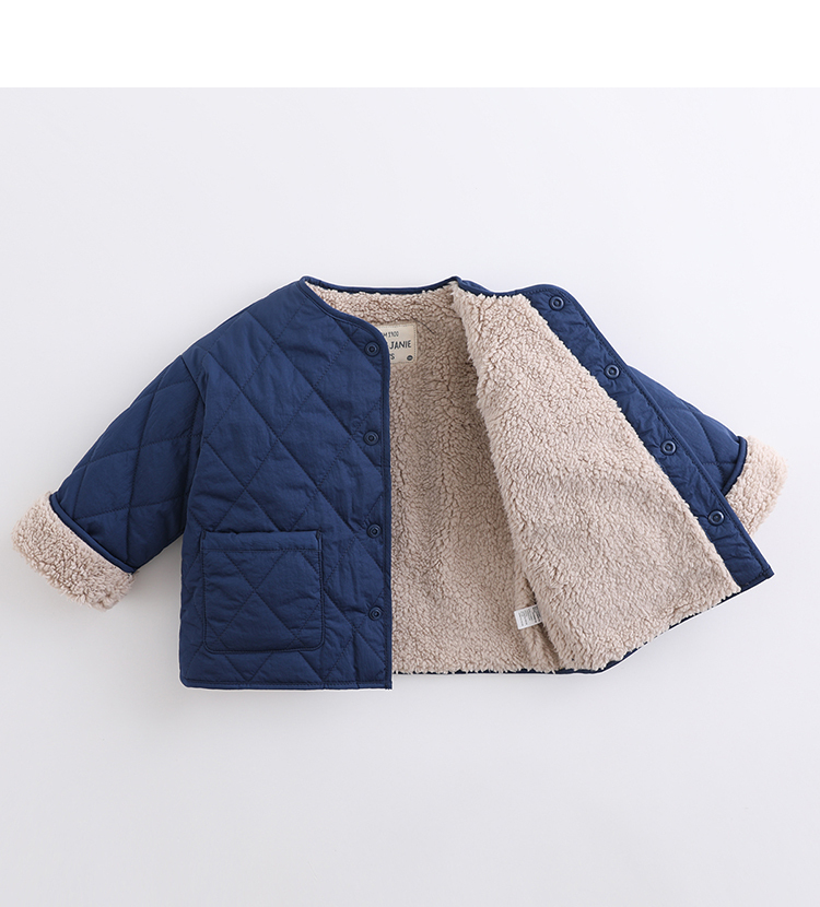 马克珍妮2020新款宝宝冬装 男童菱格加绒棉衣 儿童棉服外套202038