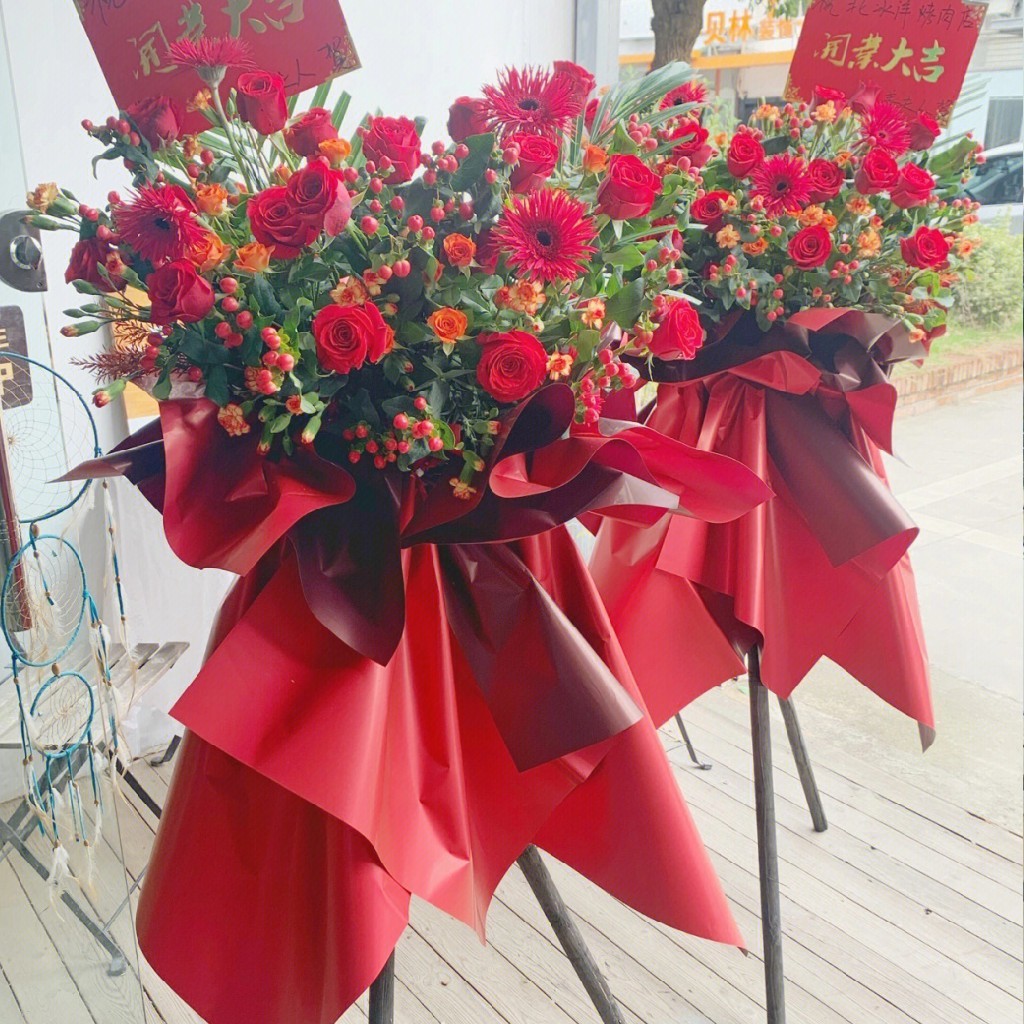 《朱曦》-红色系开业花篮一对