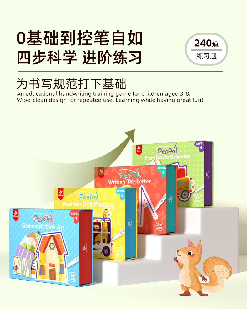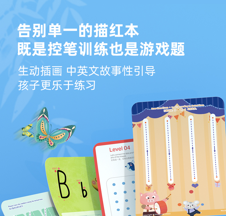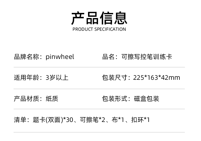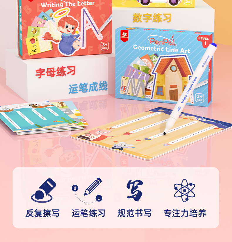 Pinwheel控笔训练幼儿园儿童可擦笔控练习专注力点阵字帖练习(3岁以上)