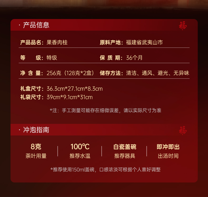 华祥苑 星时光 果香肉桂 特级 武夷岩茶 双福至 茶叶 礼盒