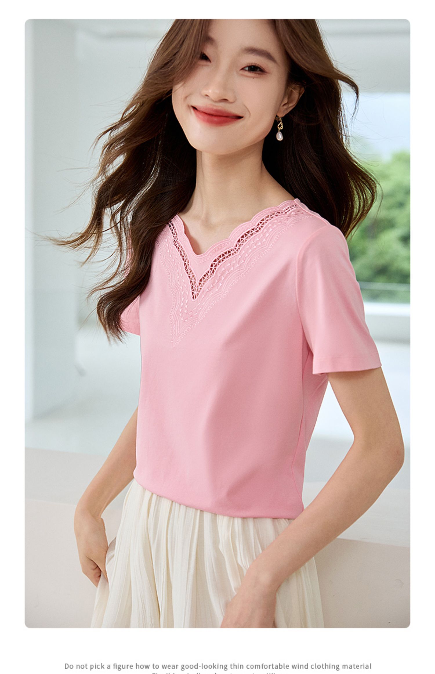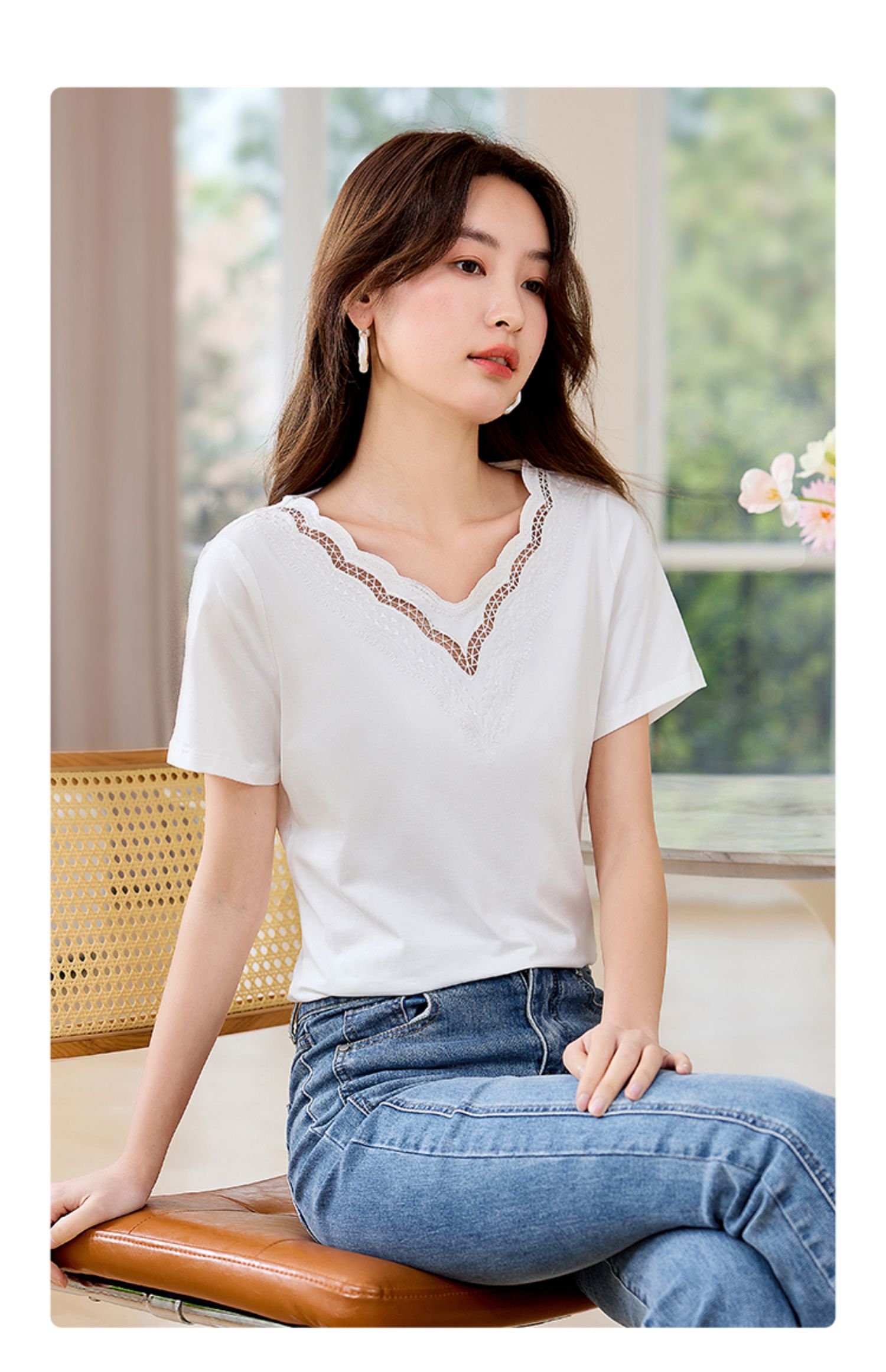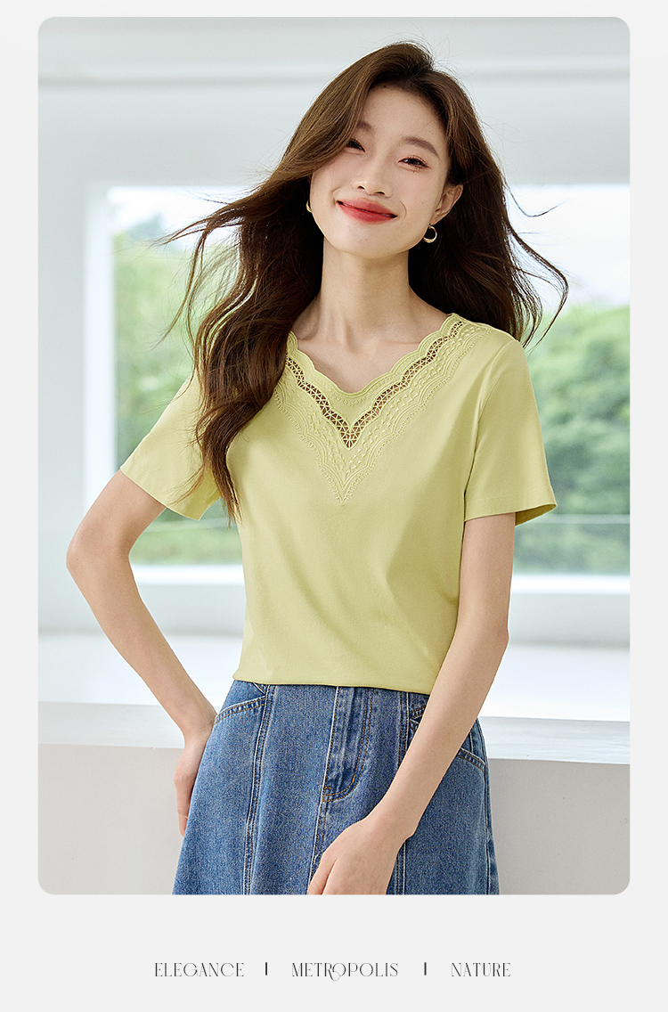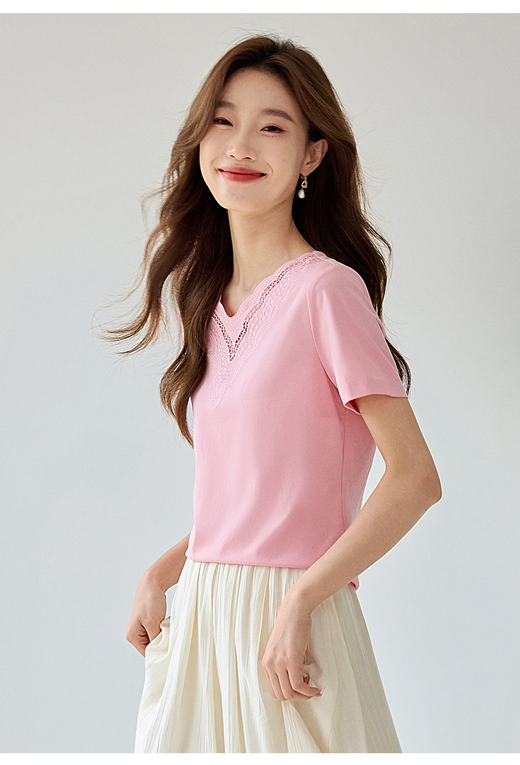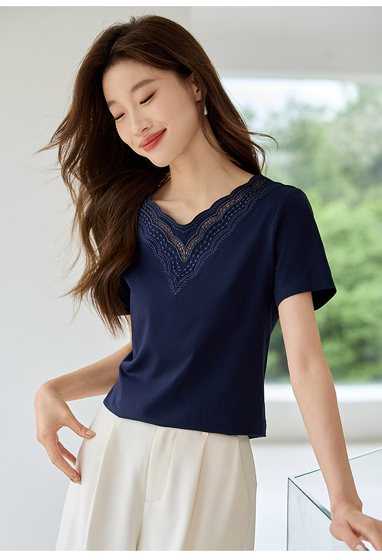 【专属特价】熙世界正肩t恤短袖2025夏季新款宽松显瘦刺绣V领百搭甜美上衣
